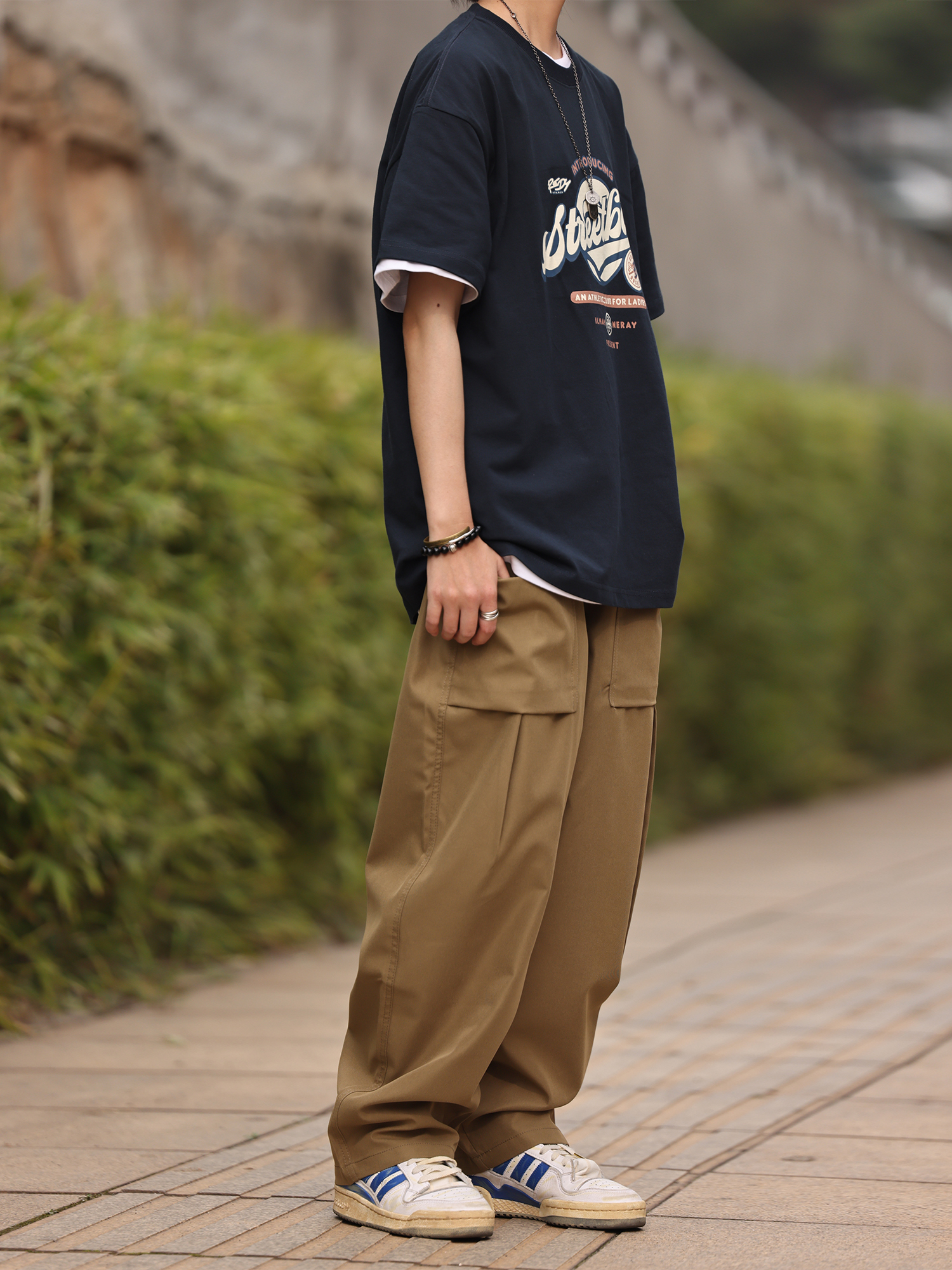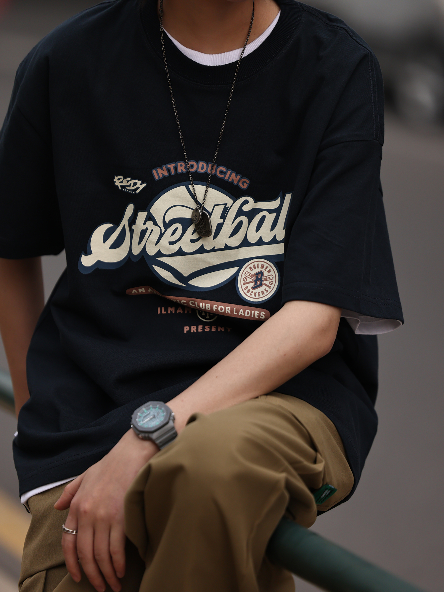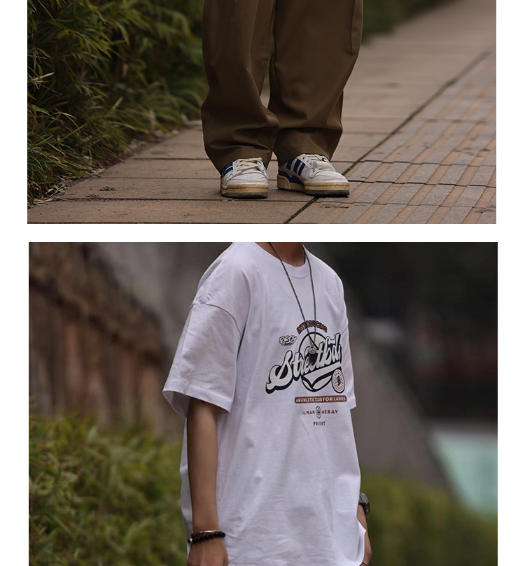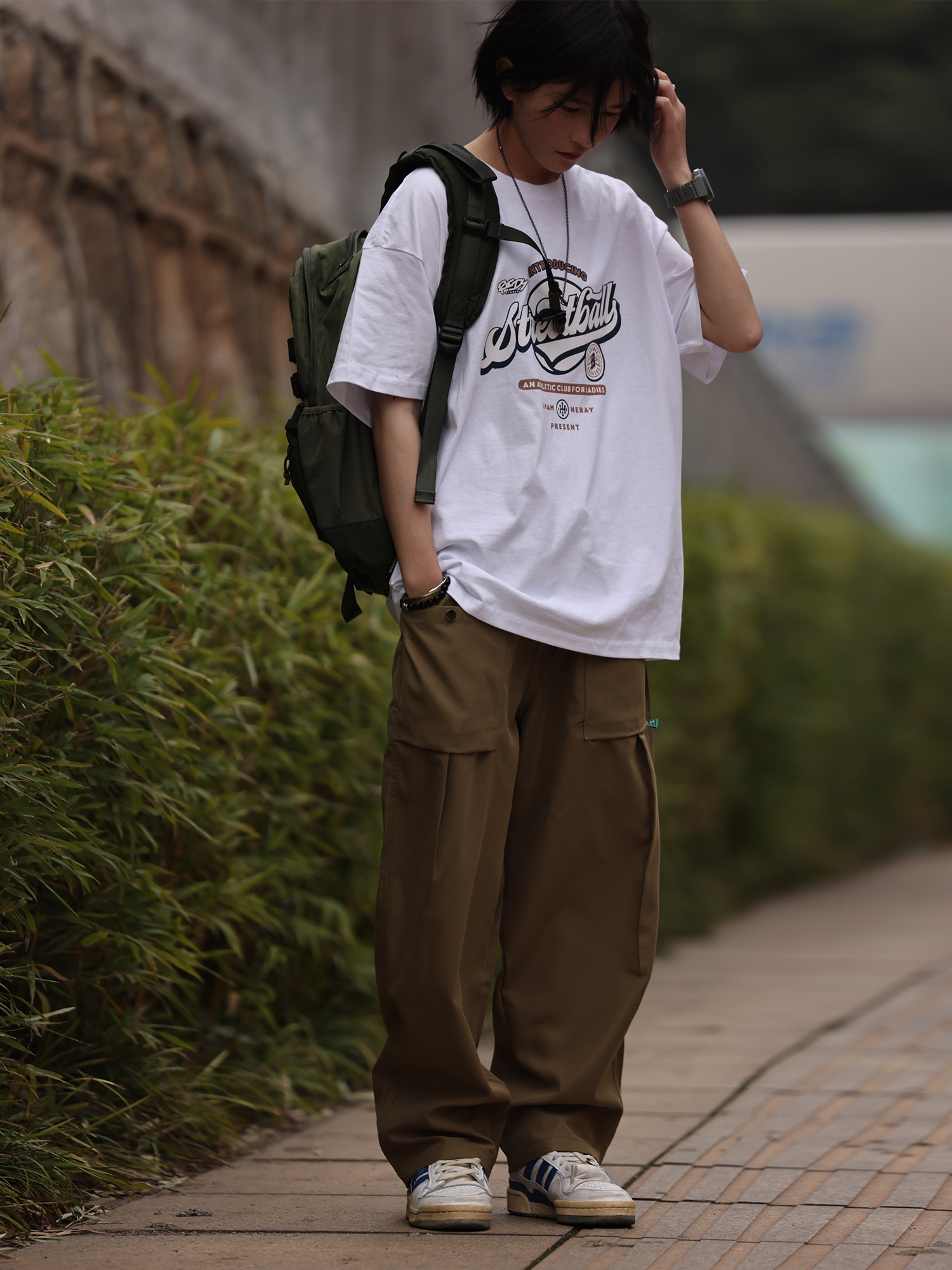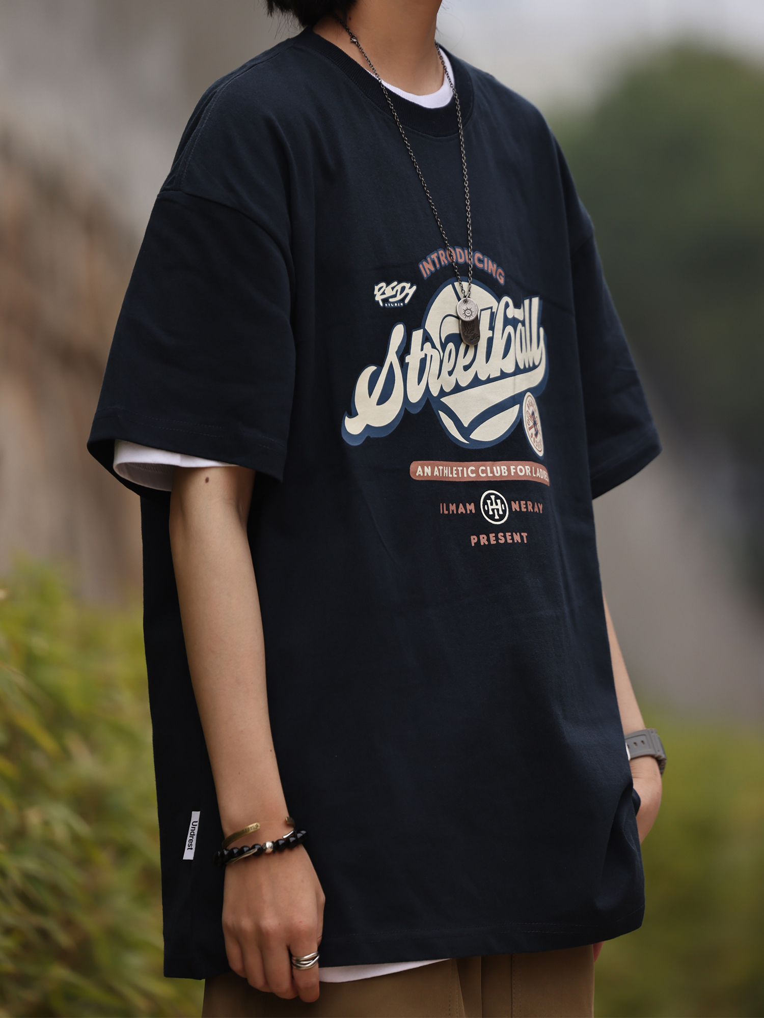 Nobodyknows美式復古學院風純棉休閒百搭字母印花短袖寬鬆潮牌T恤