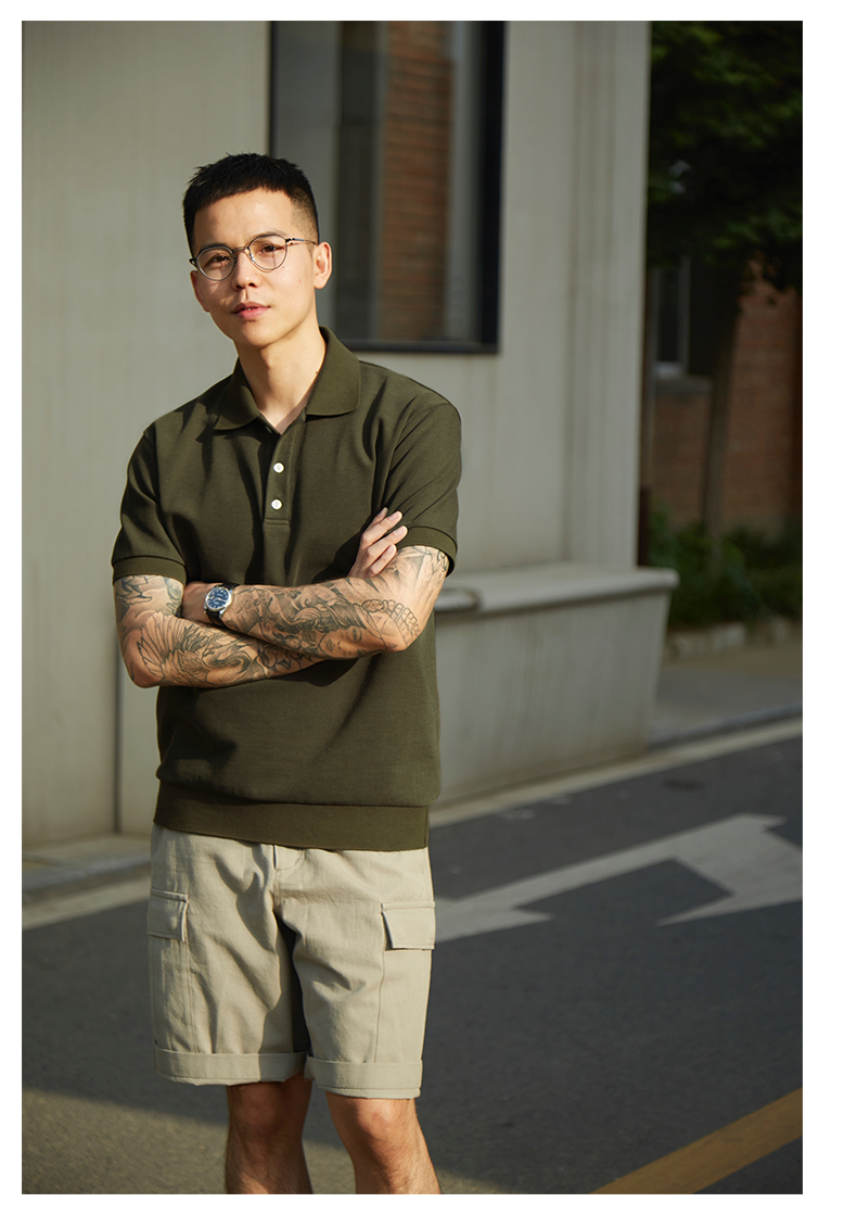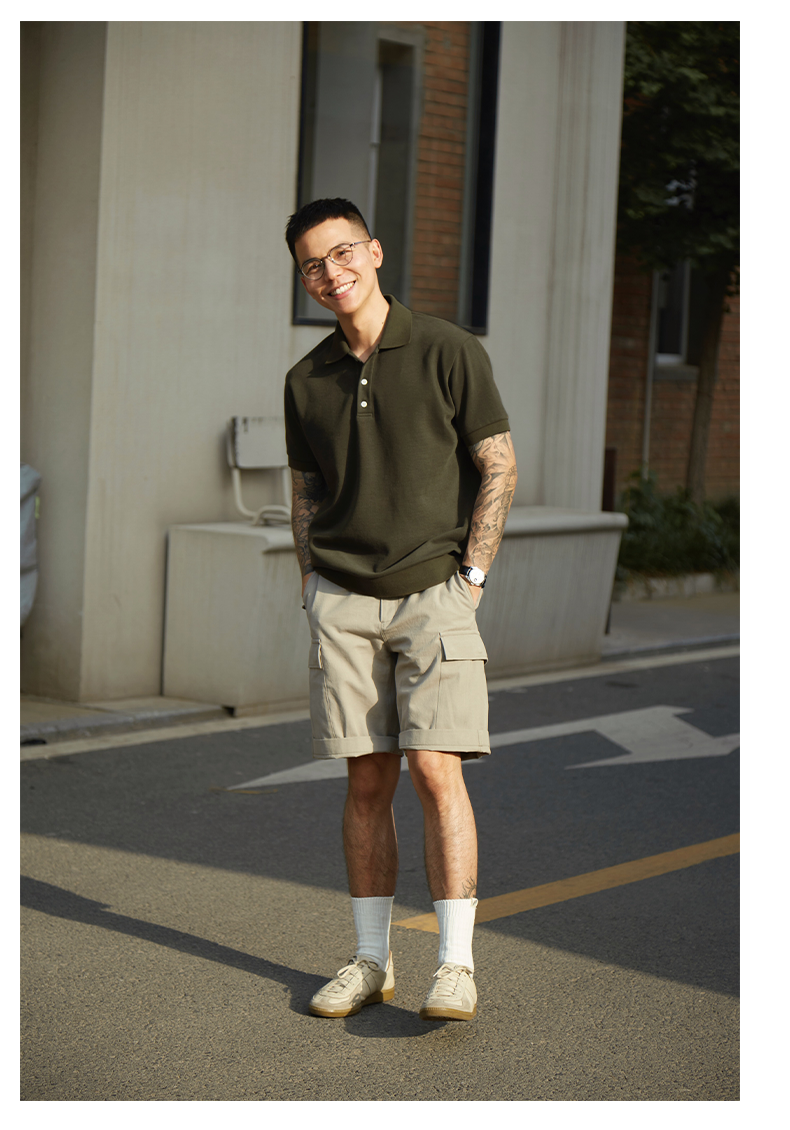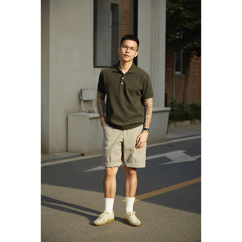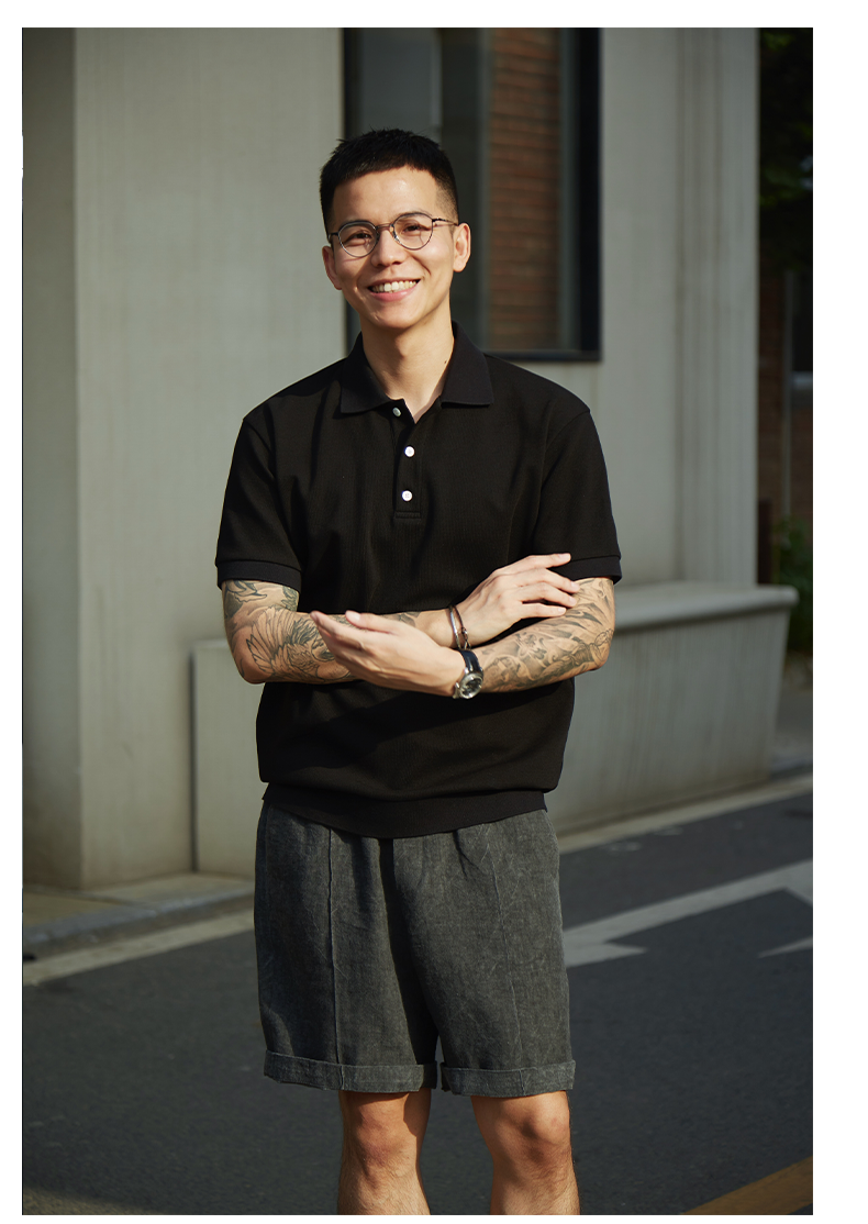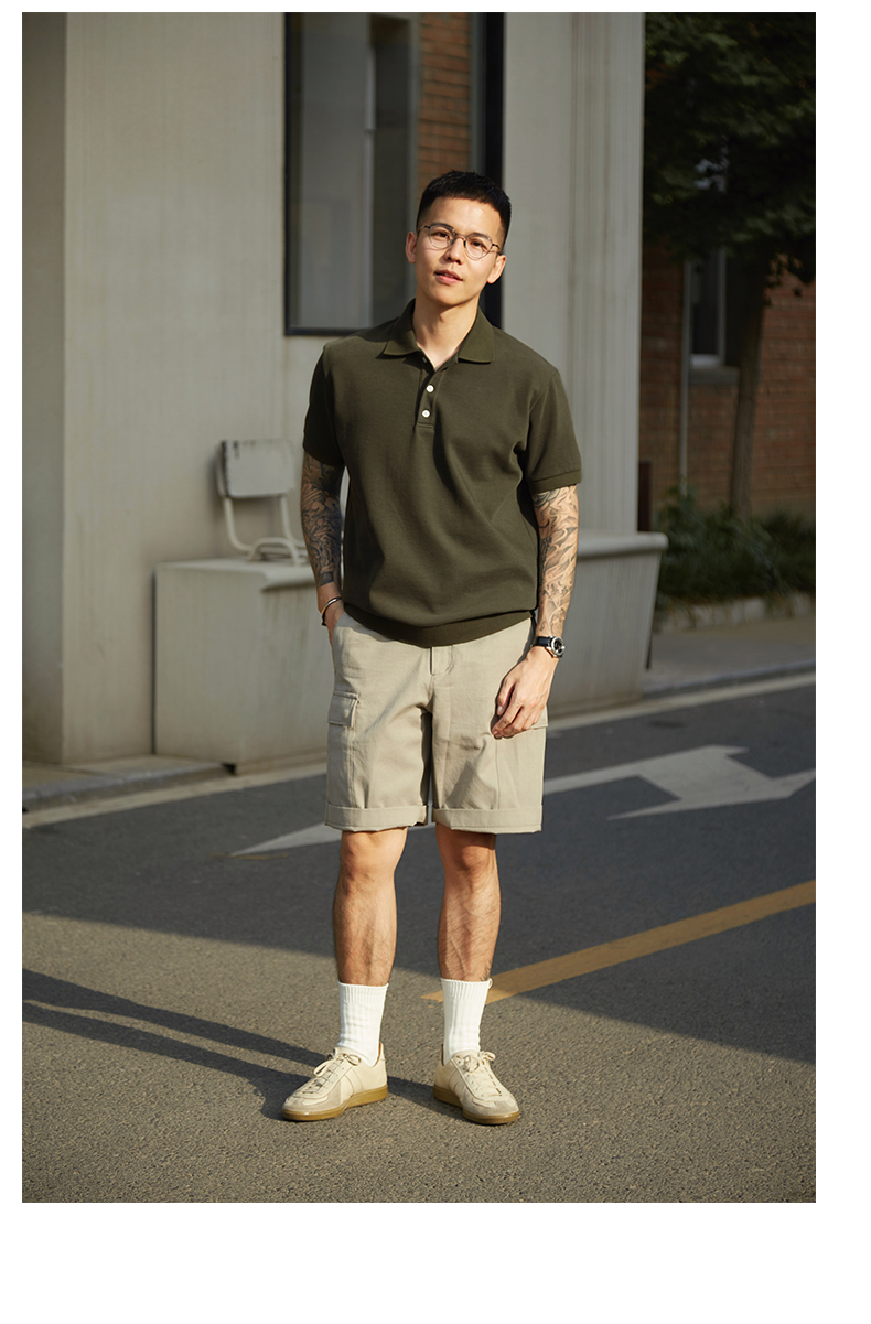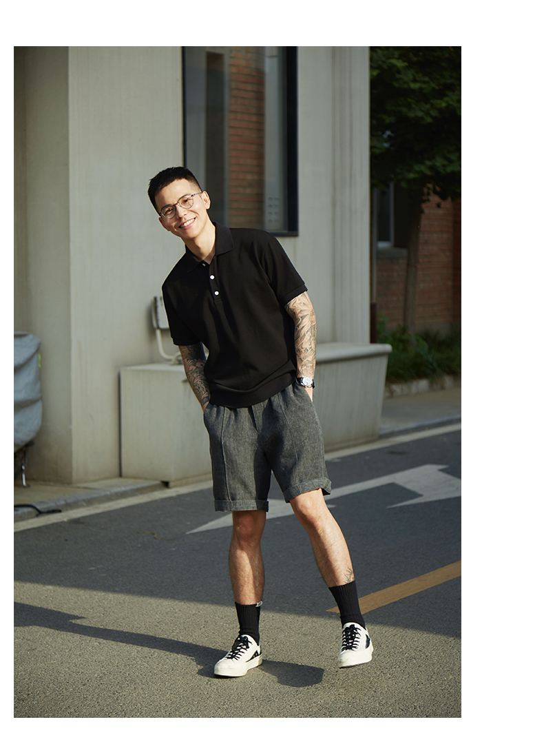 4色polo衫|TrigCo華夫格混紡珠地棉短袖休閒純色翻領寬鬆廓形顯瘦