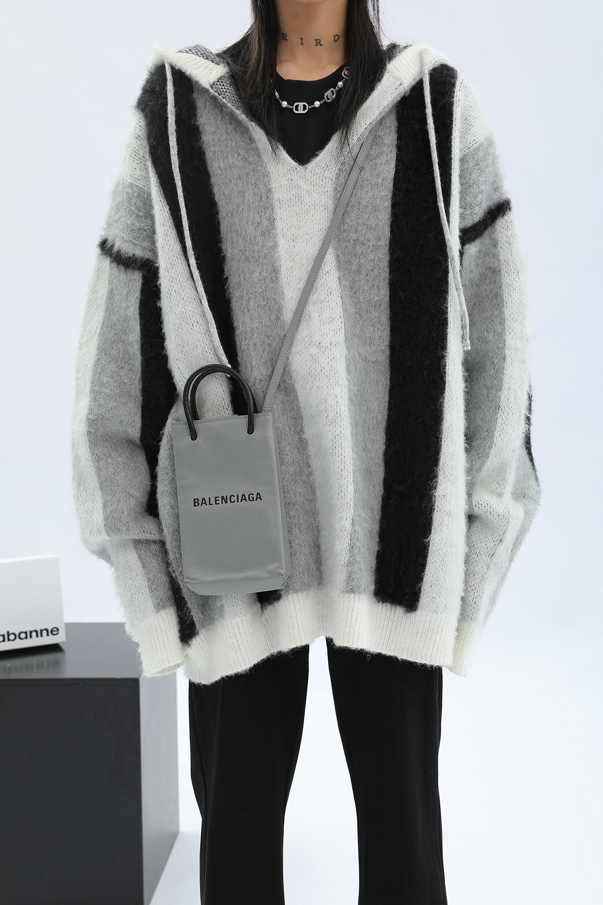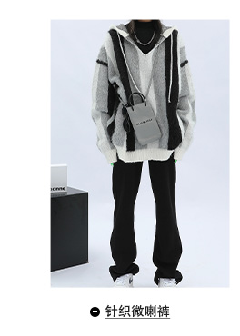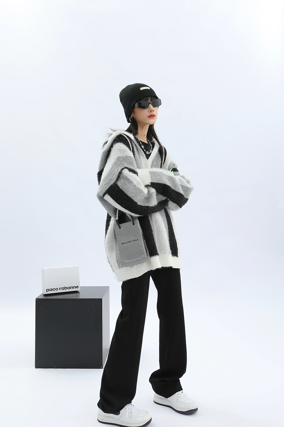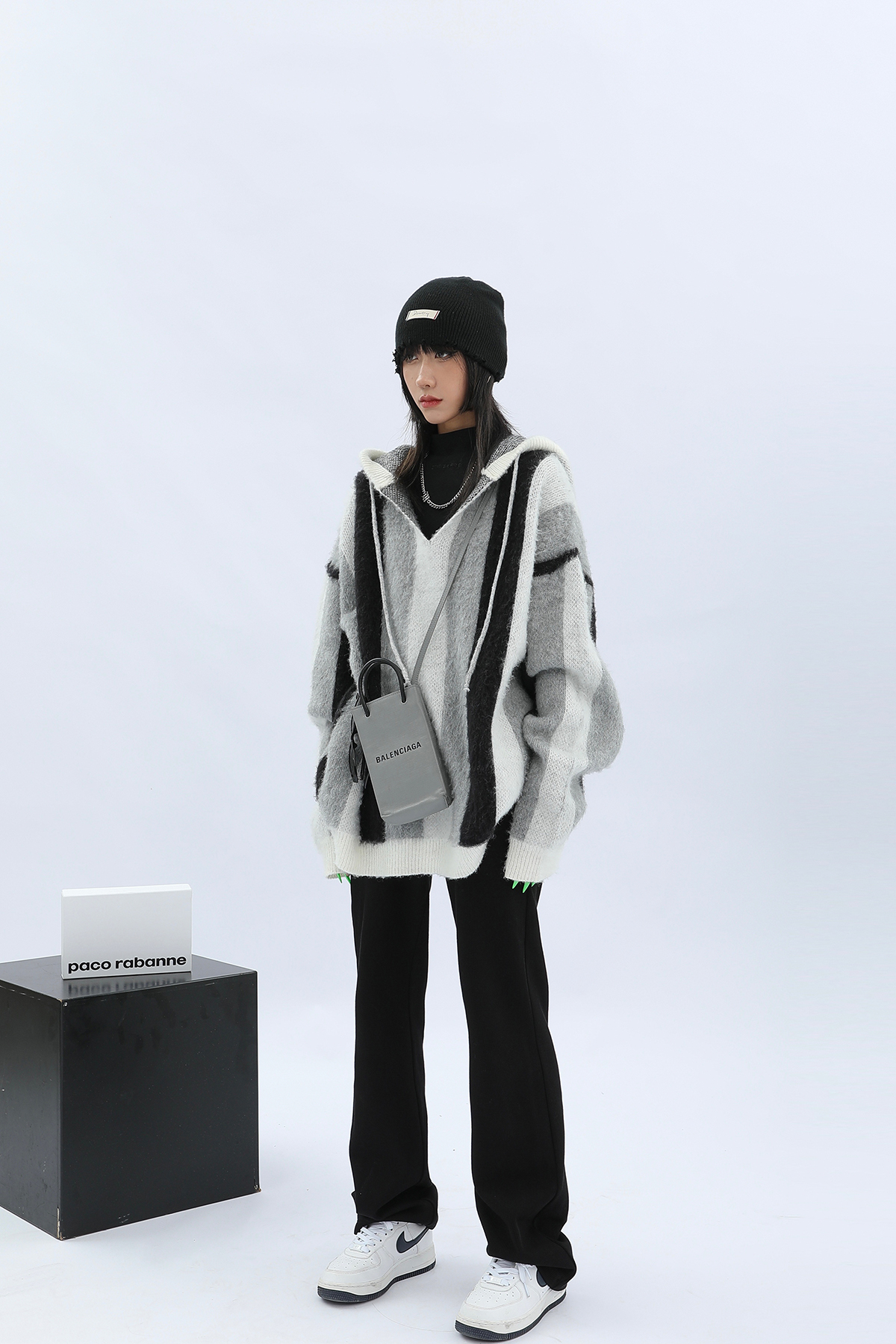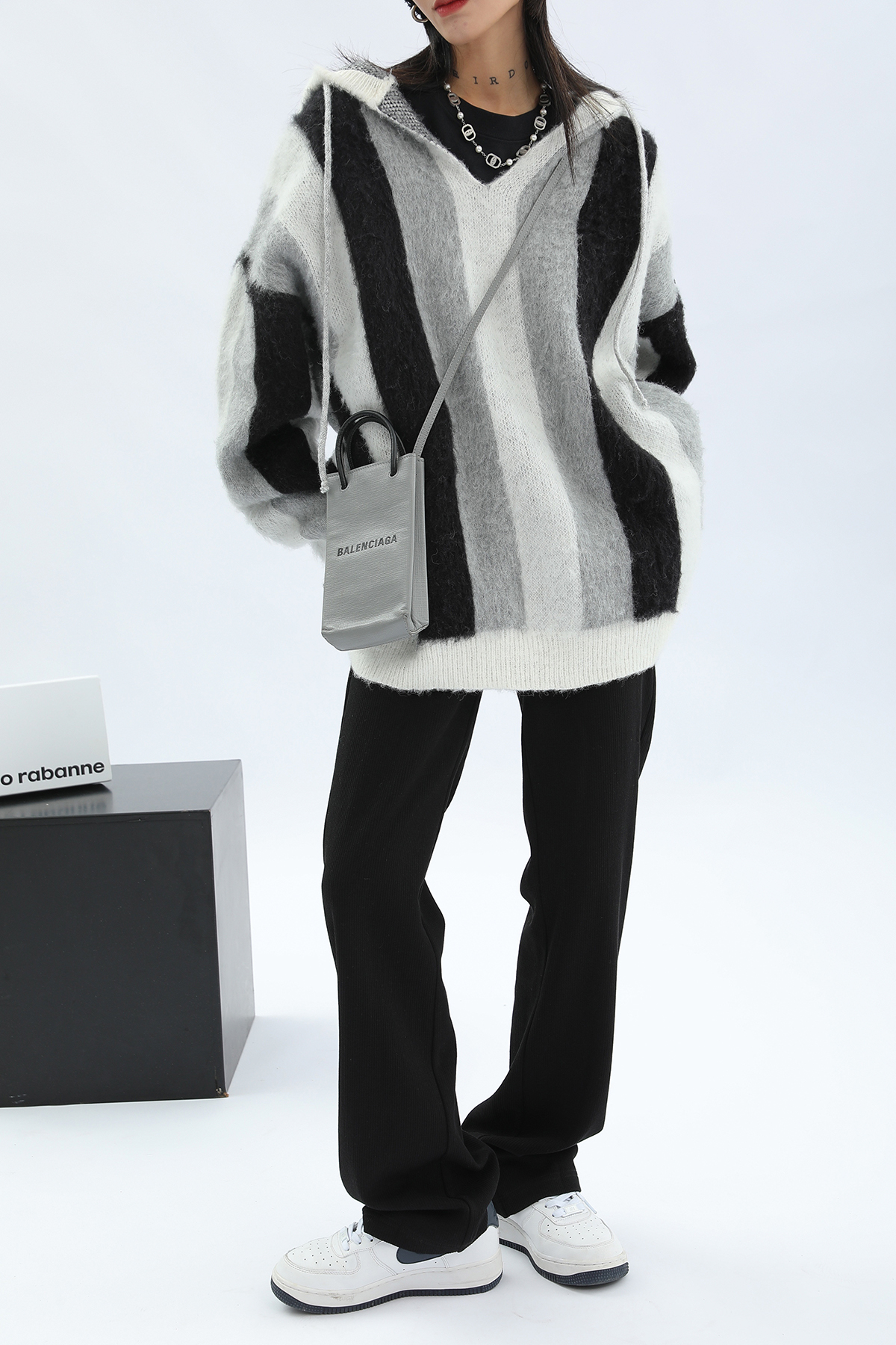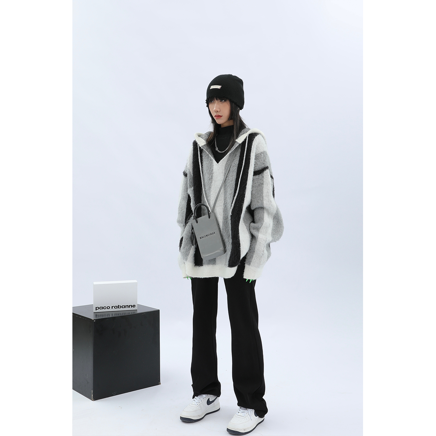 Acestudios 馬海毛連帽毛衣外套女2022春秋設計感條紋外穿針織衫
