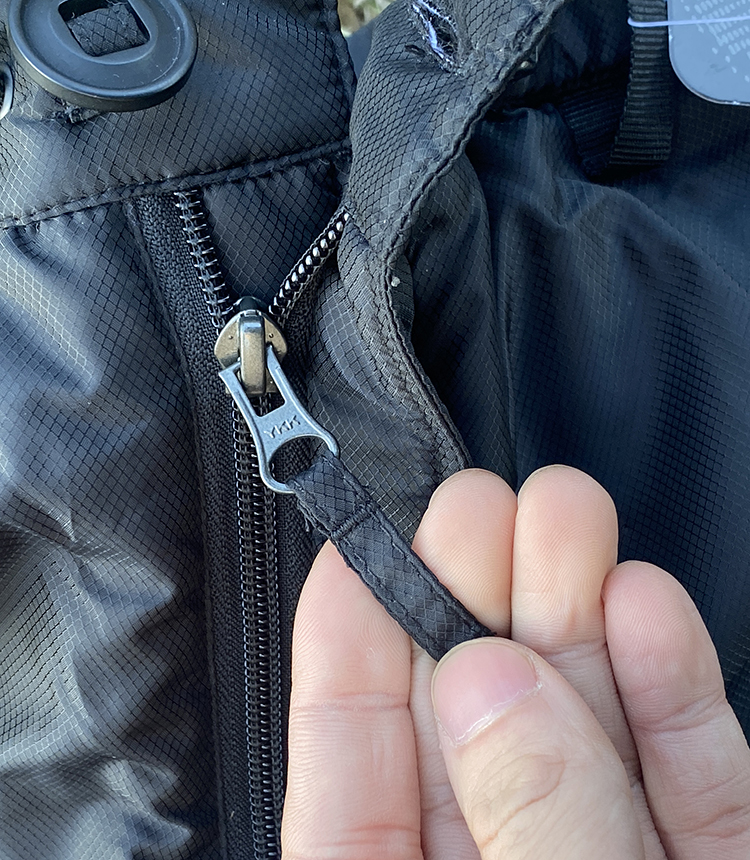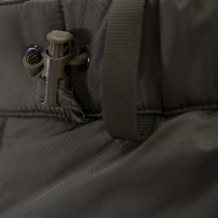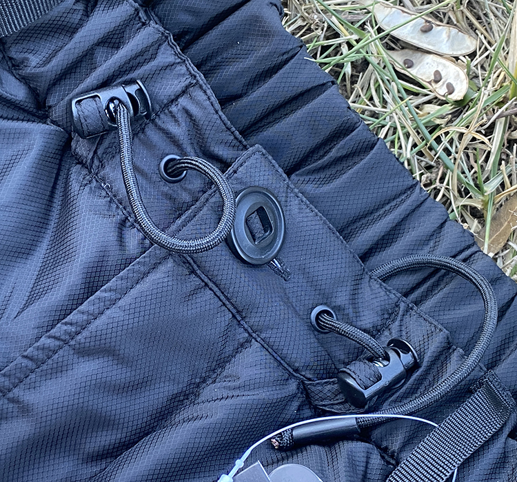 配备两个带防风盖的双向侧拉链 弹性腰部内部抽绳和纽扣开合 方便快速穿脱