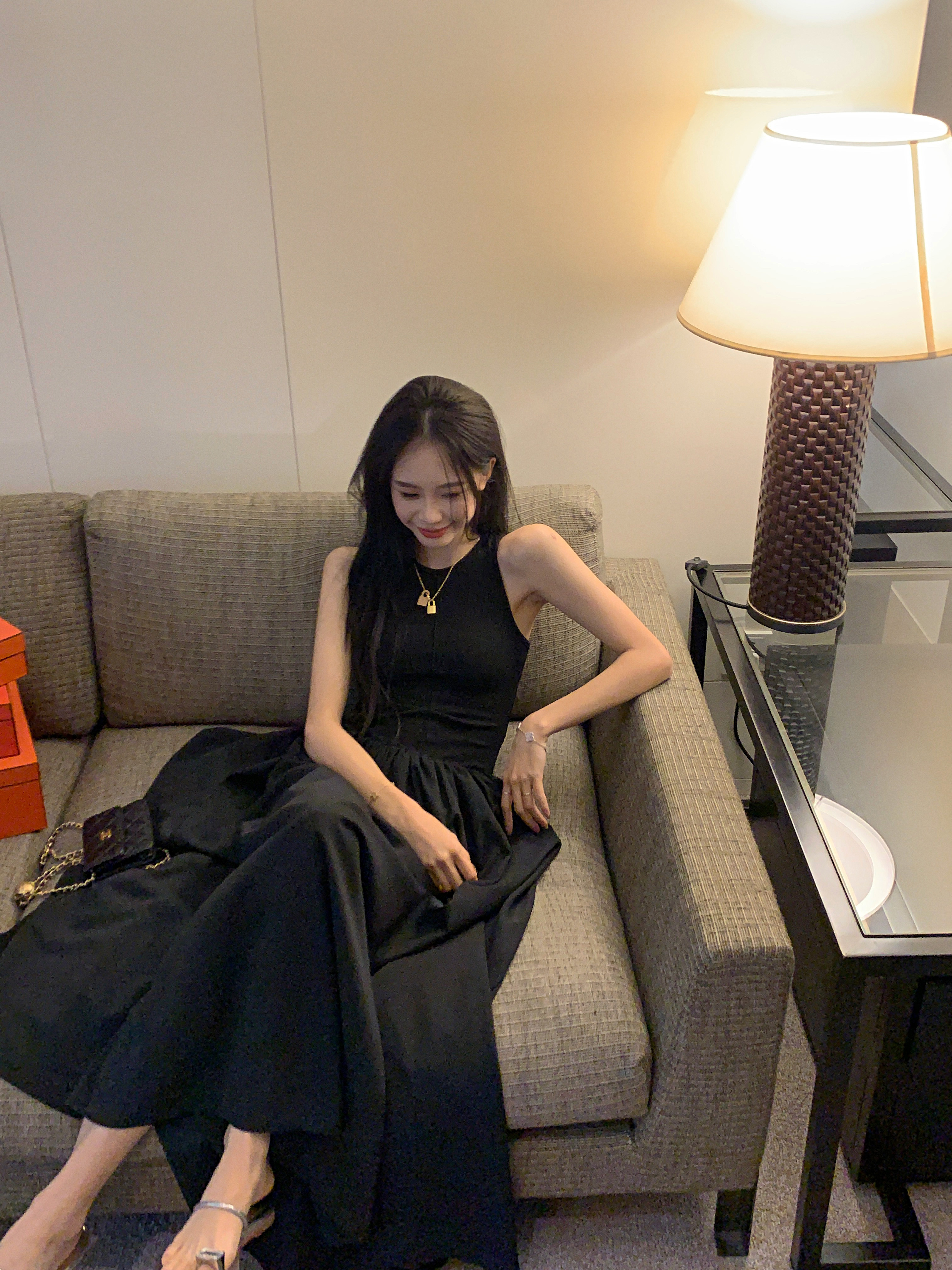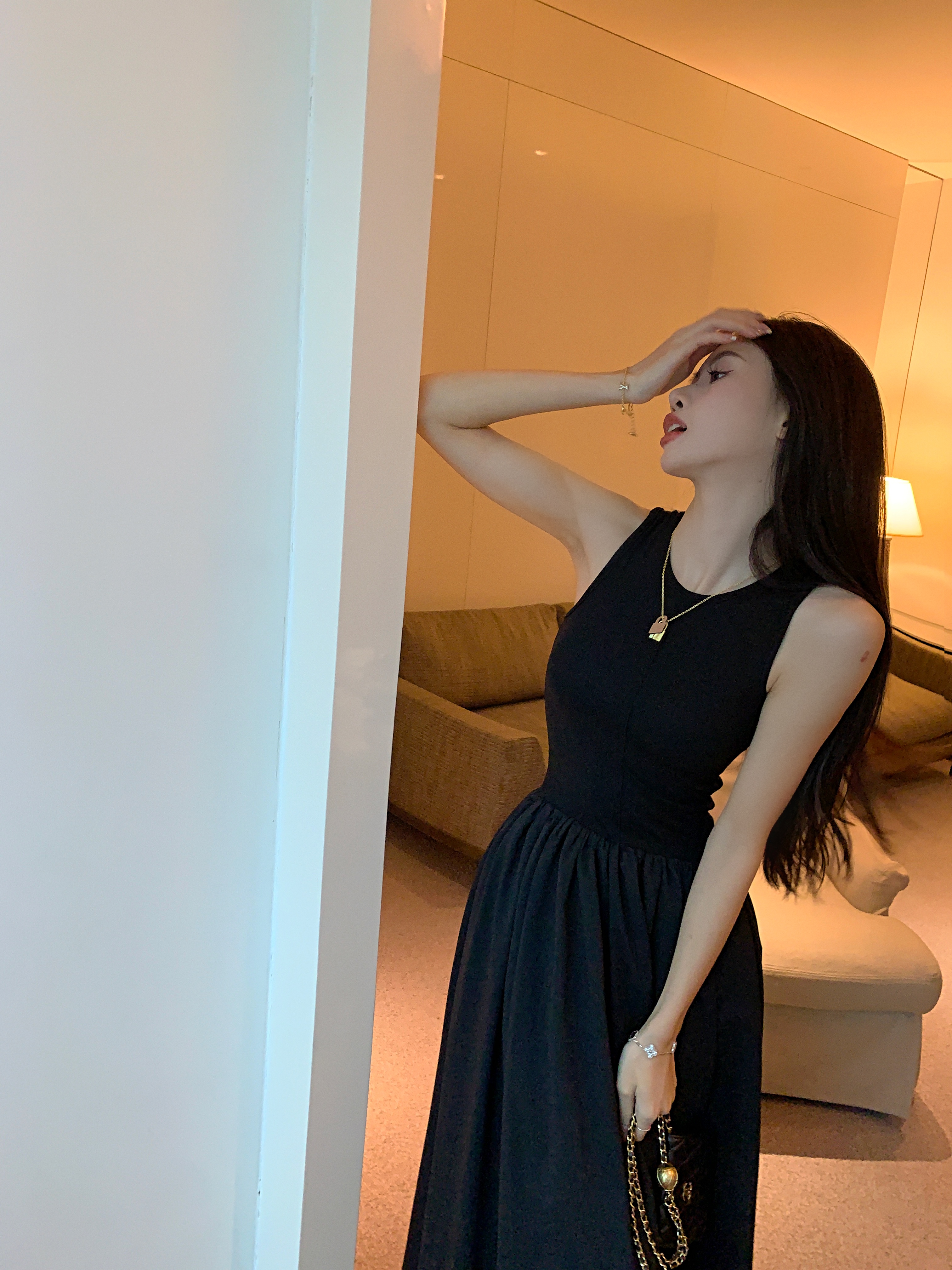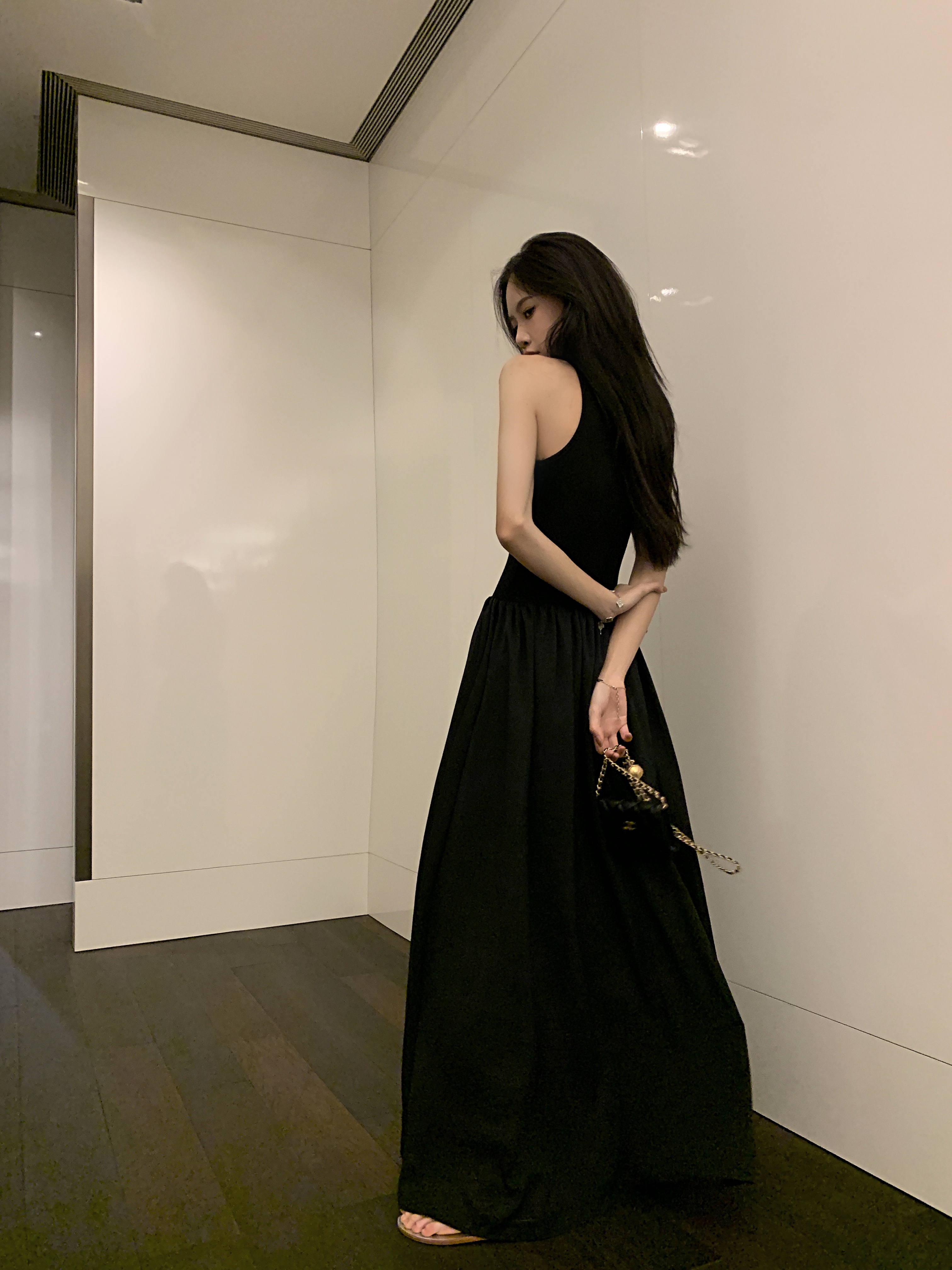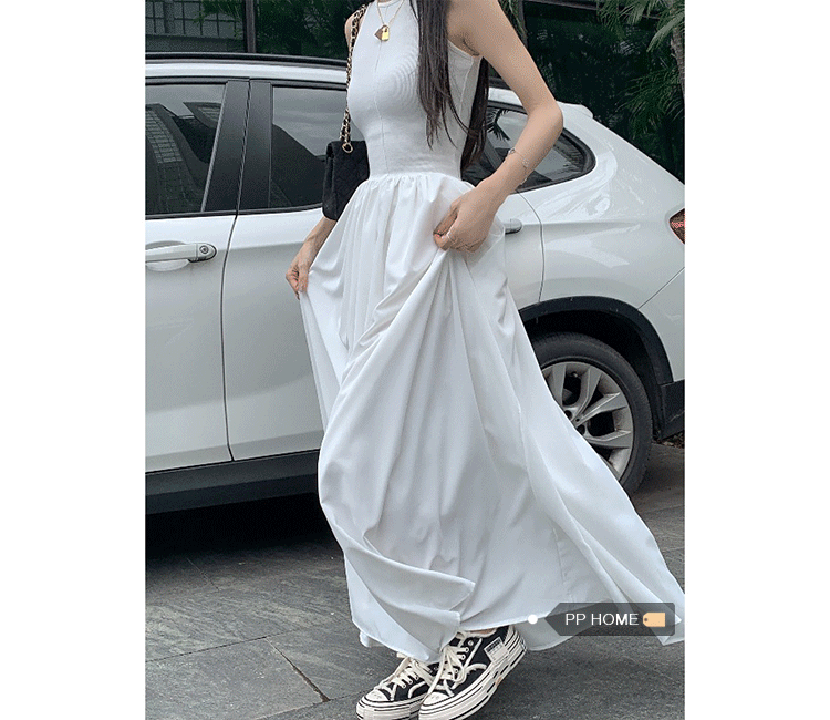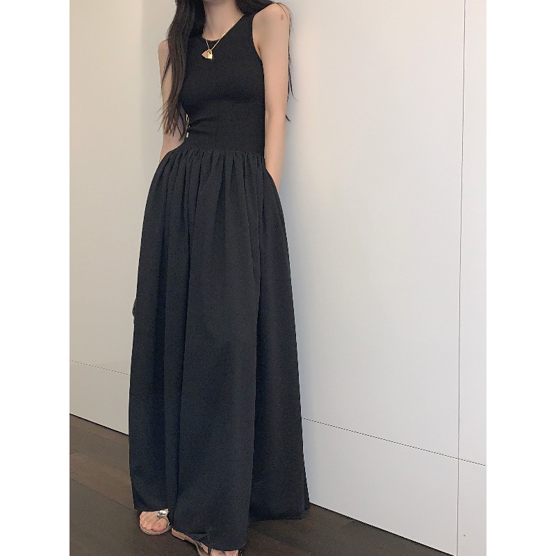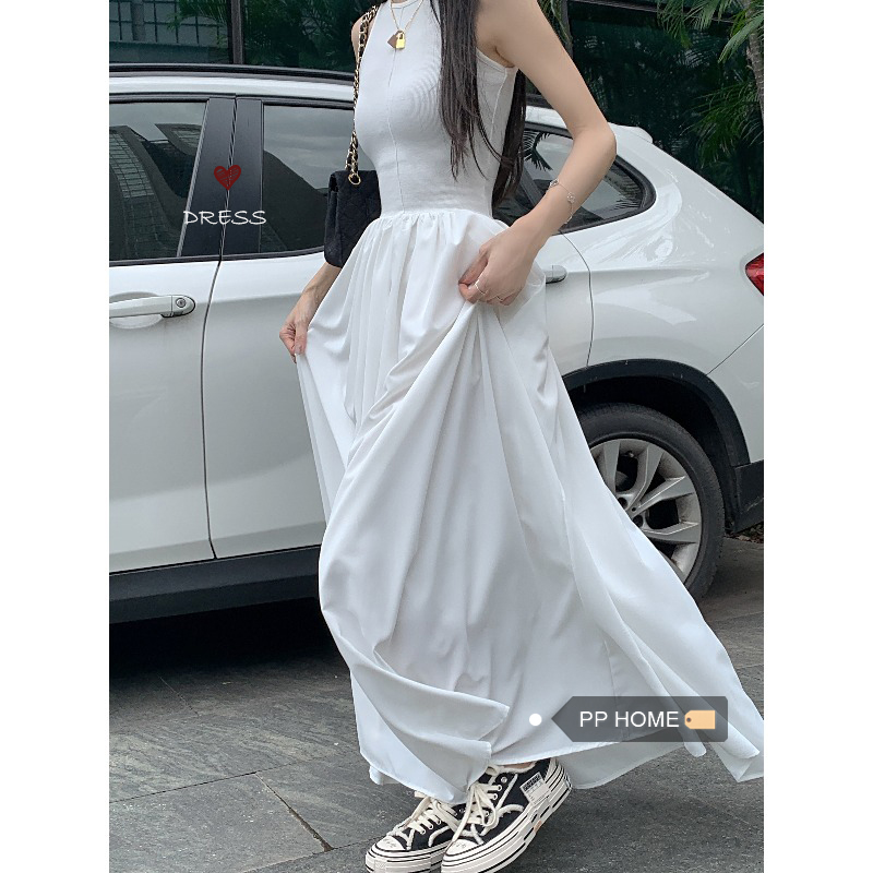 PPHOME~復古別致背心長裙法式冷淡風高級感收腰顯瘦百搭連衣裙女