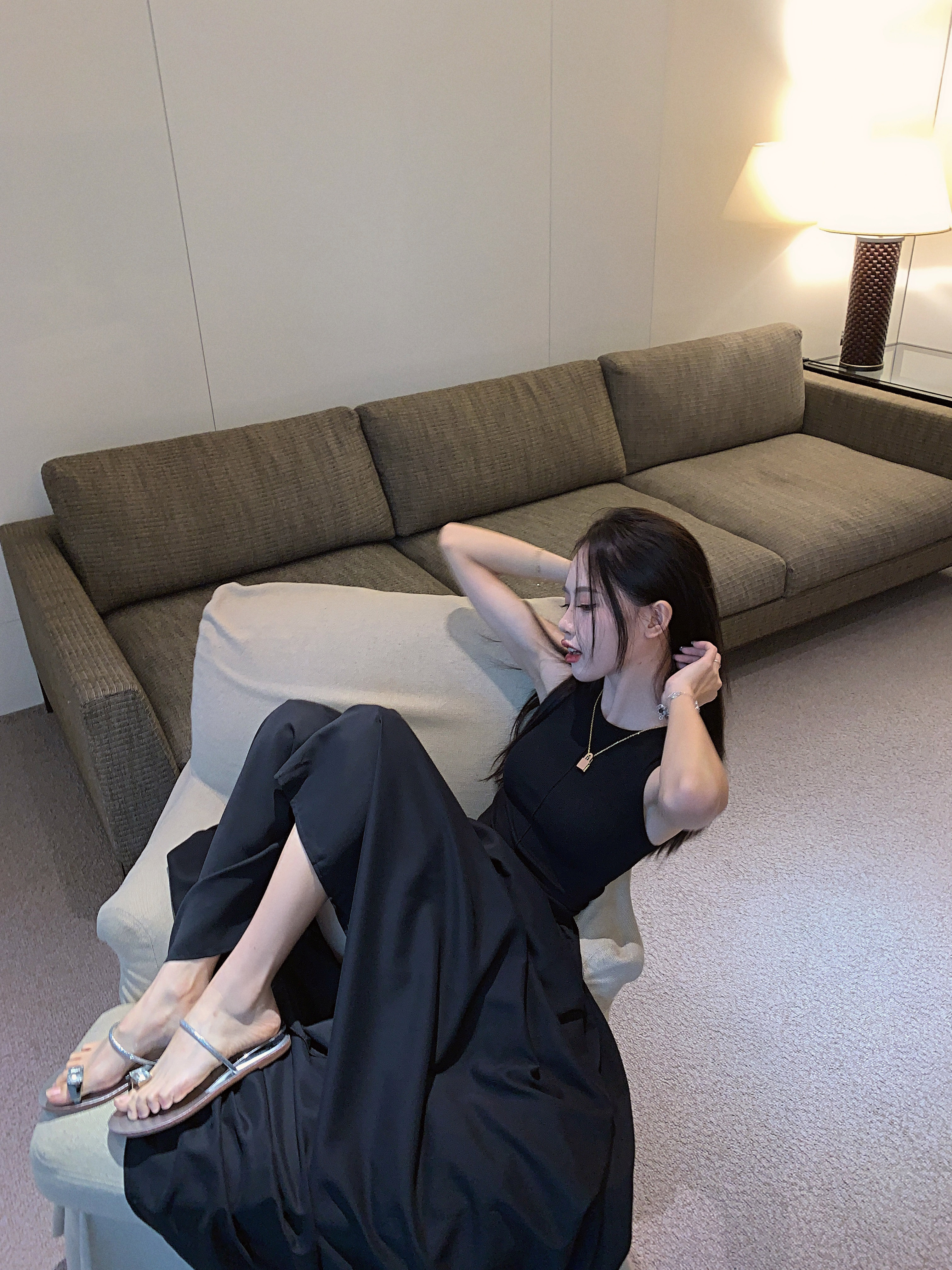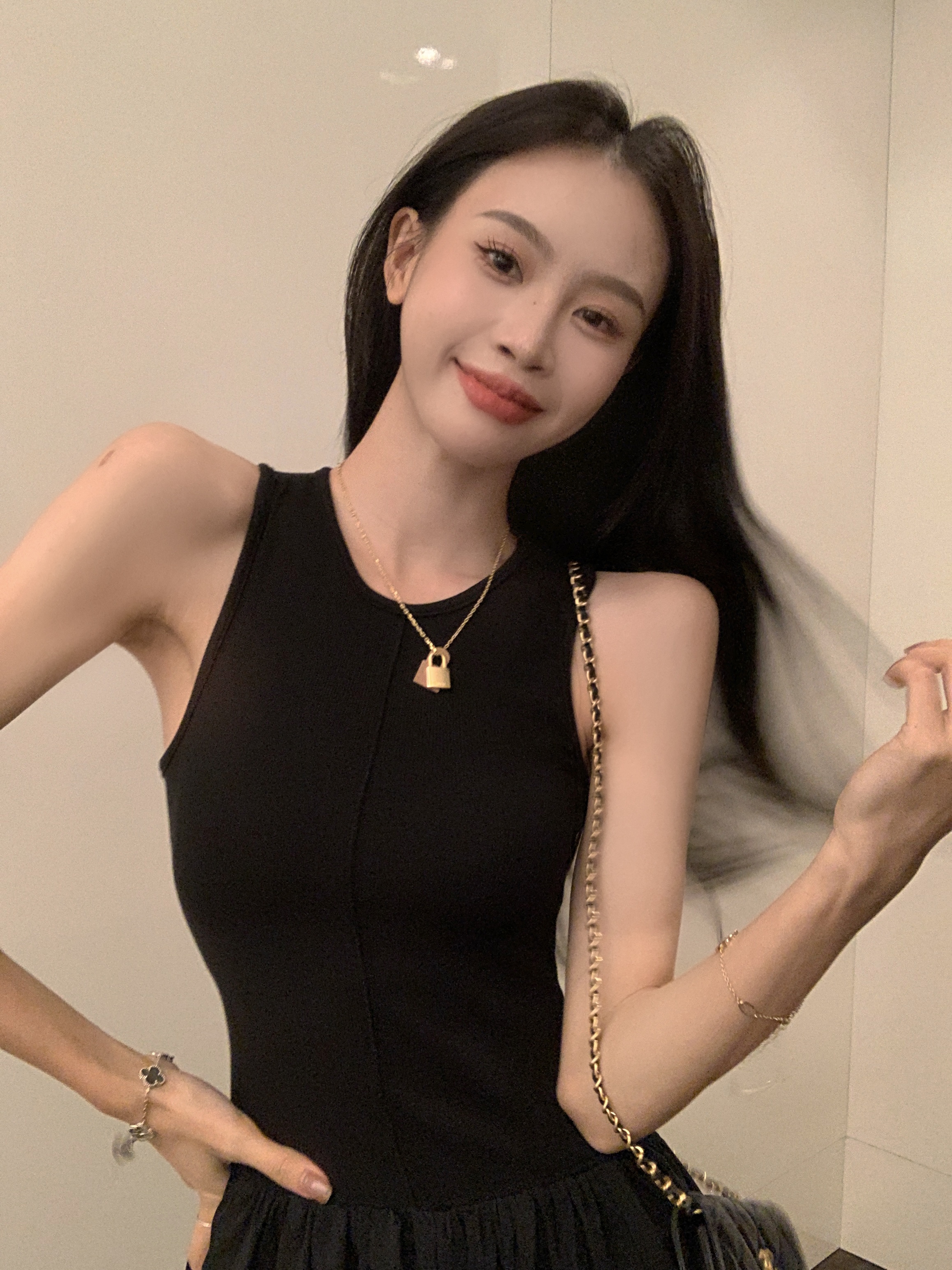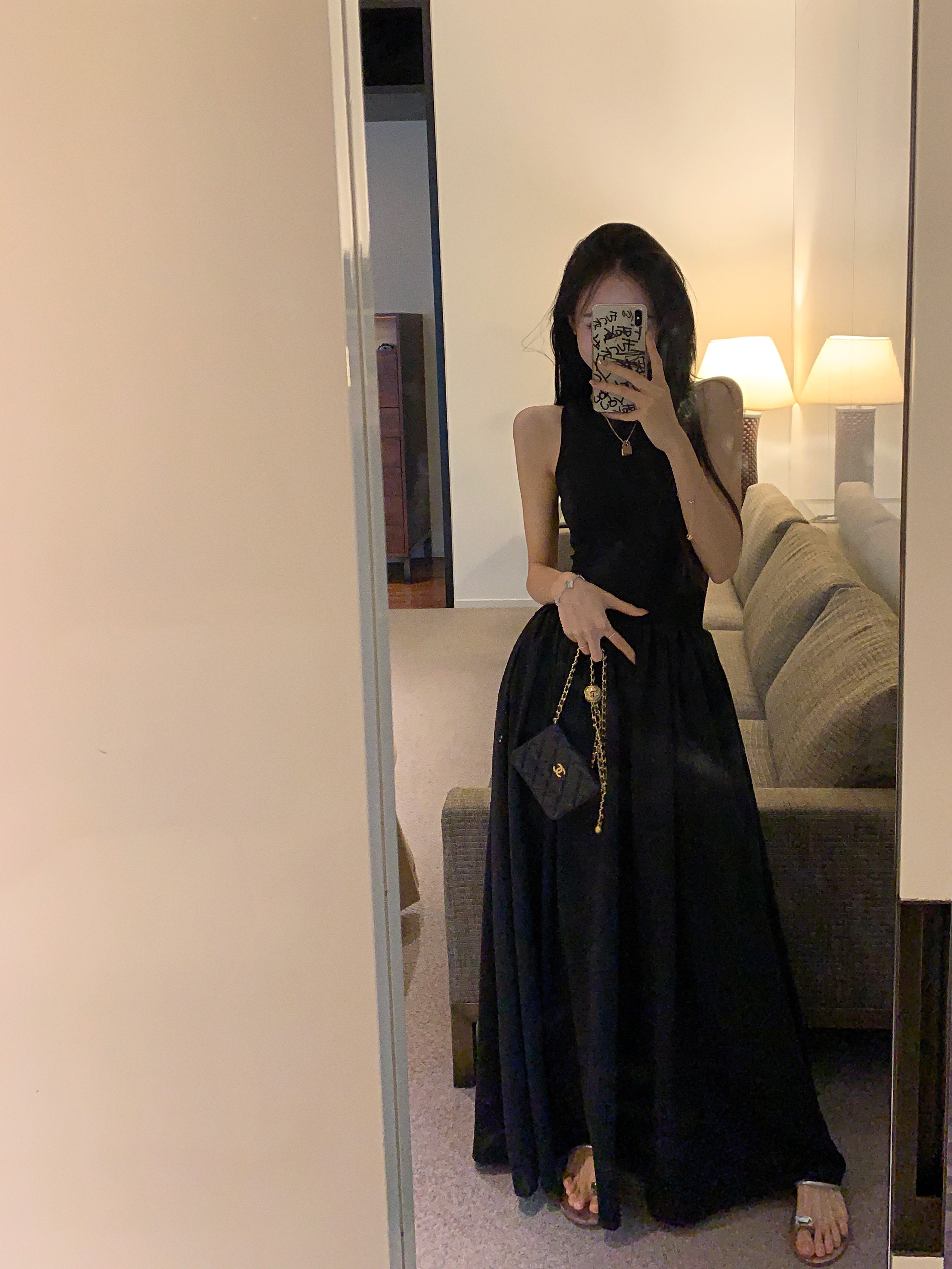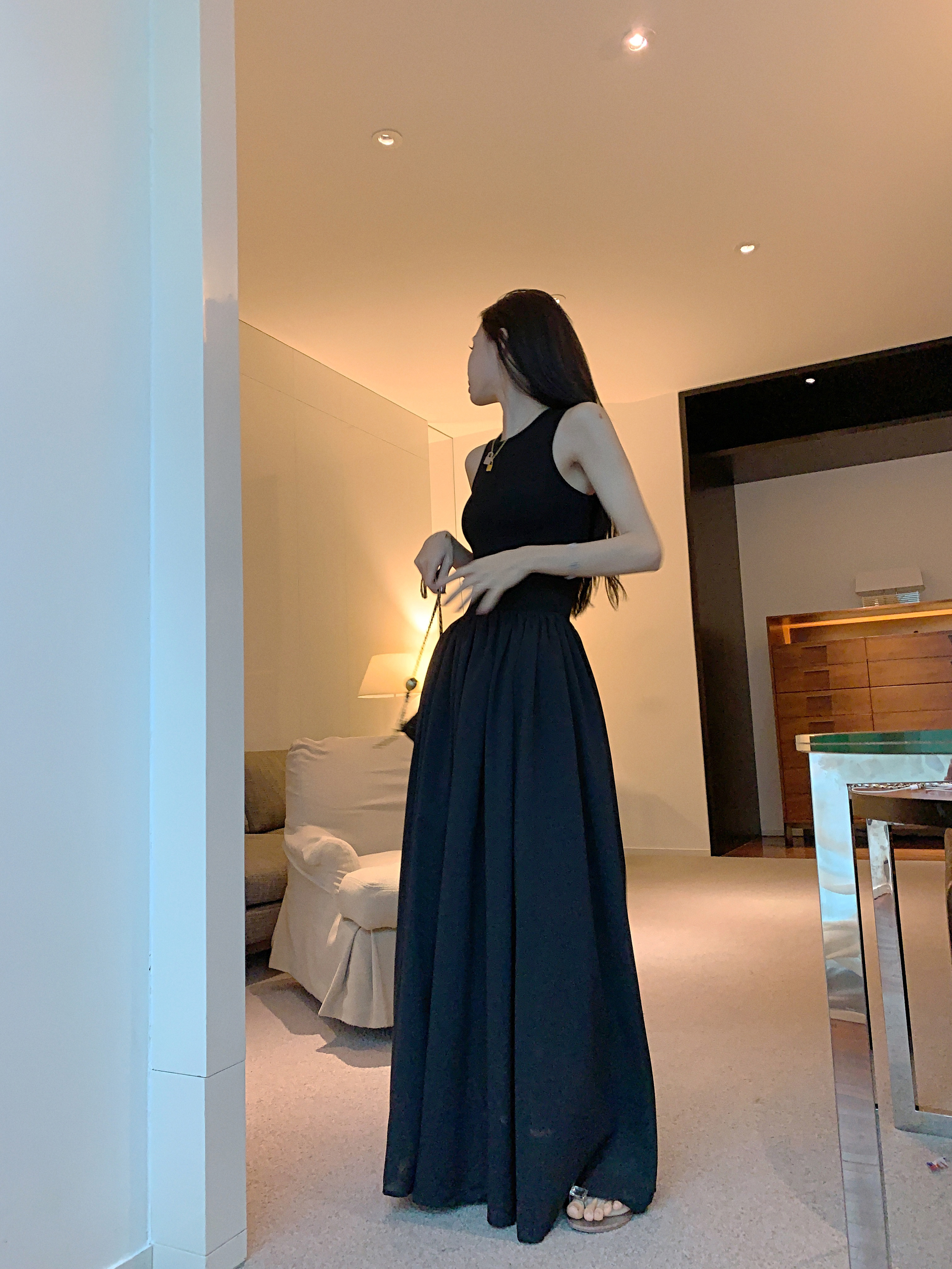PPHOME~復古別致背心長裙法式冷淡風高級感收腰顯瘦百搭連衣裙女