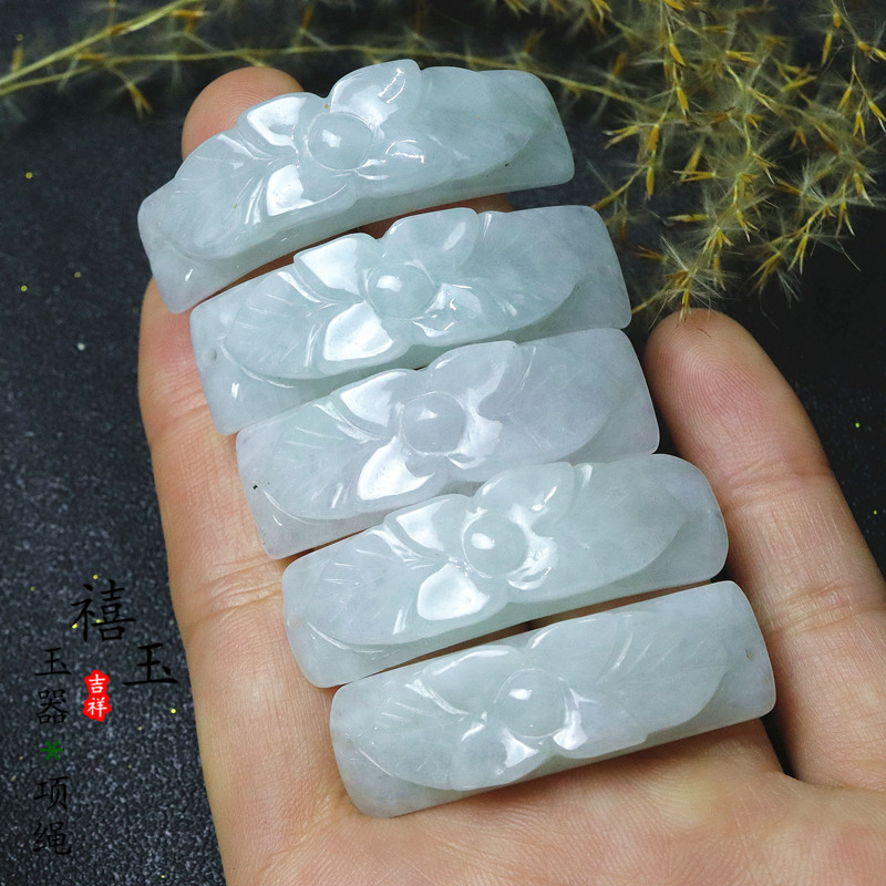 缅甸A货正品天然翡翠幸运花手牌手工编织弯条前后孔可编手链手绳