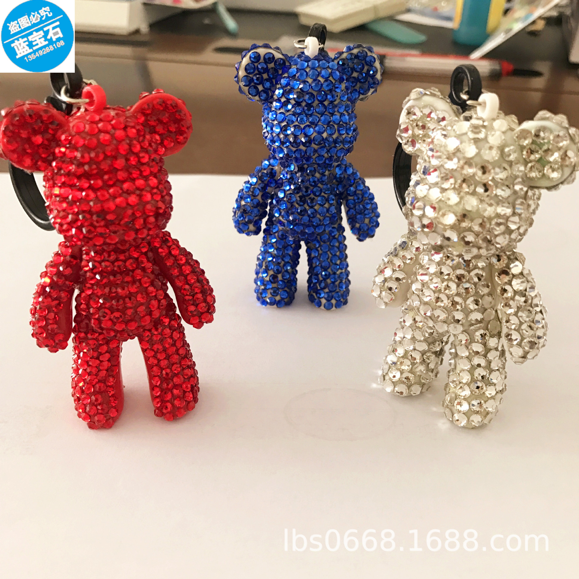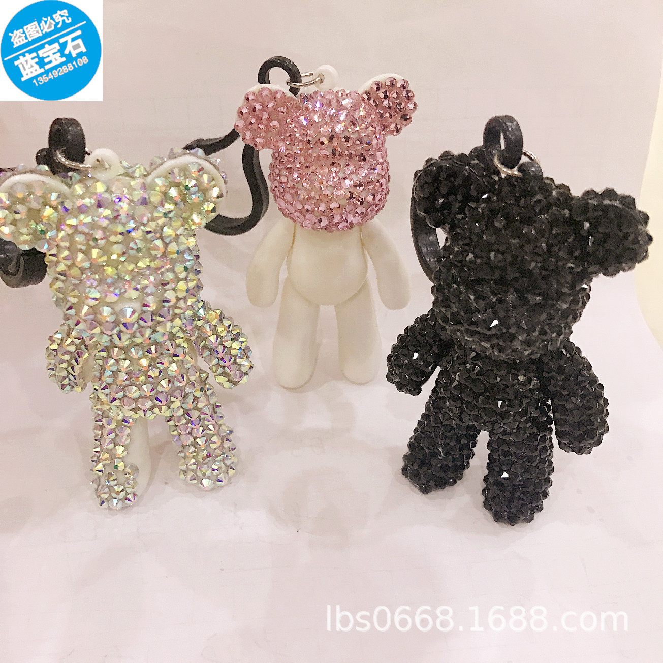 小熊钥匙扣 粘钻网红熊 可爱创意DIY小熊材料包 汽车钥匙包包挂饰