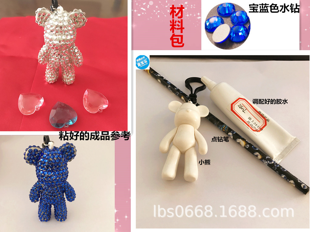 需要DIY自己动手的,请拍小熊+水晶钻+胶水 (材料包) 单套的钻和胶水都有多,不用担心不够用。
