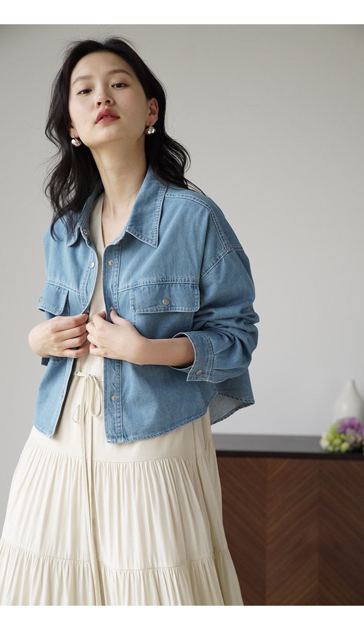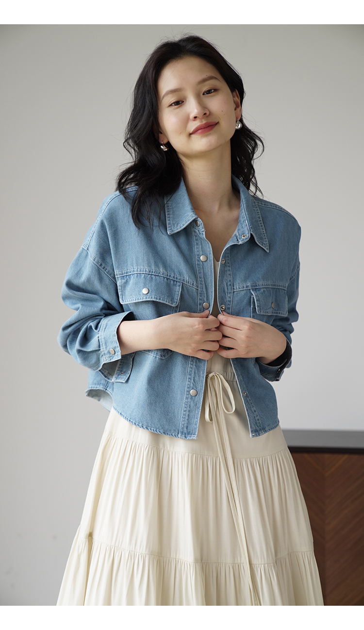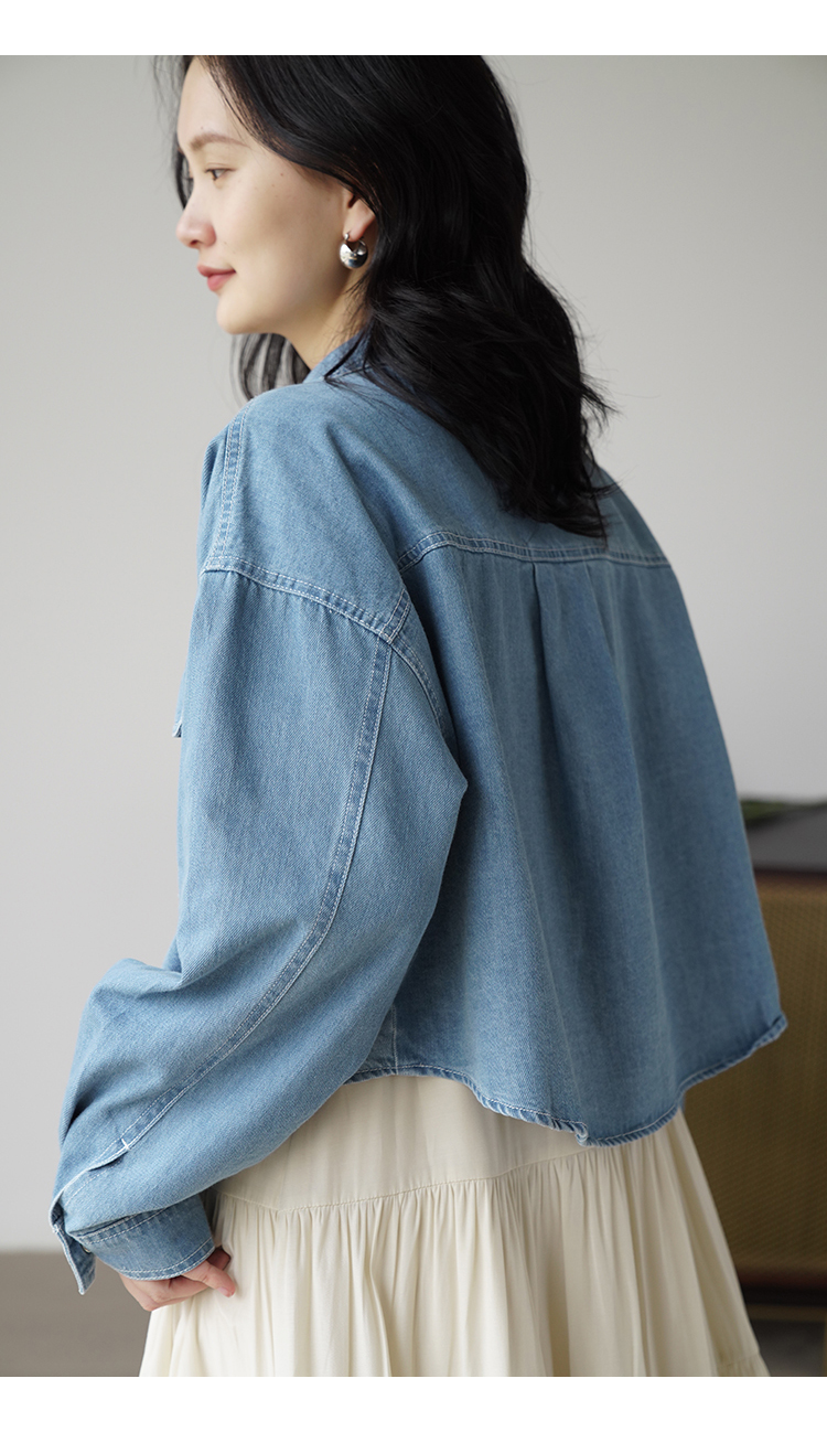 嘉茱莉夏季短款牛仔外套女2023新款牛仔襯衫短外套小個子薄款上衣