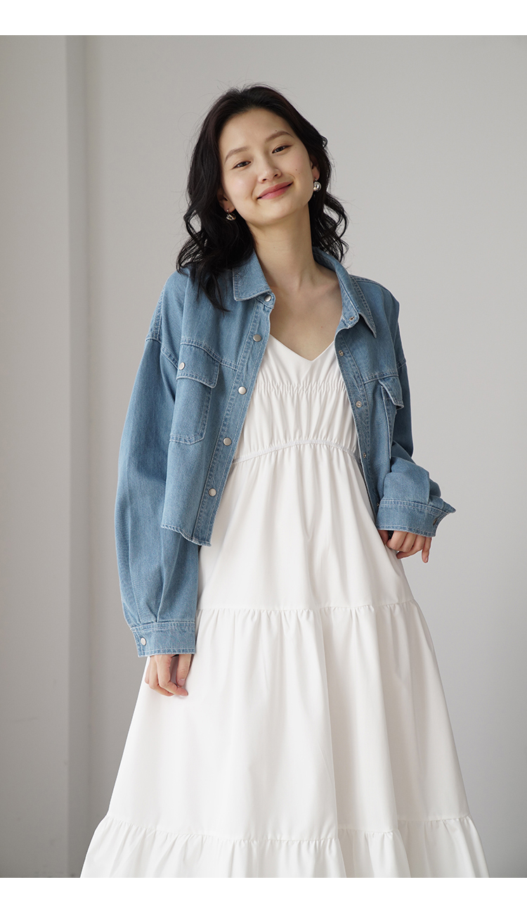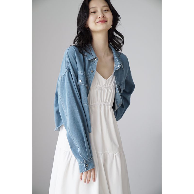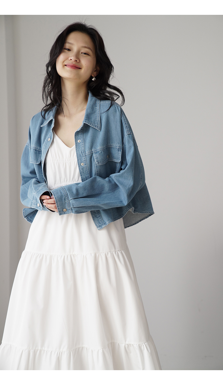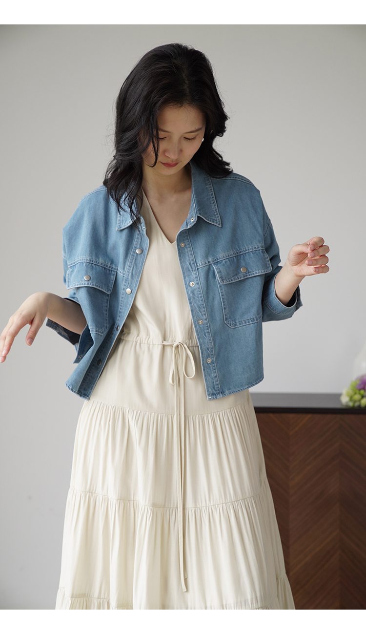 嘉茱莉夏季短款牛仔外套女2023新款牛仔襯衫短外套小個子薄款上衣