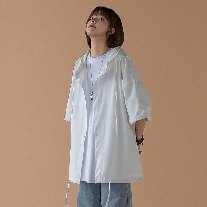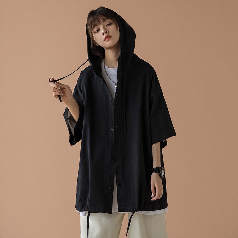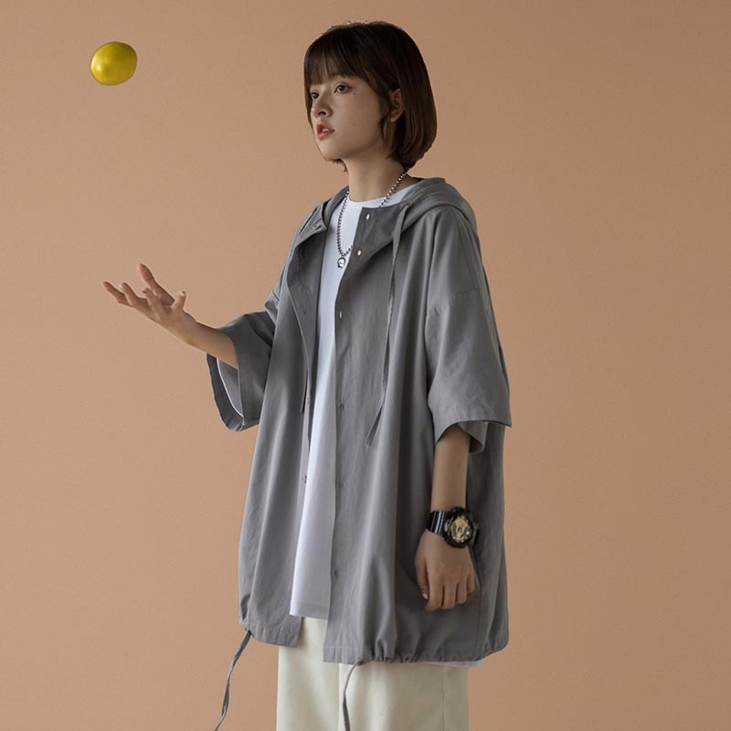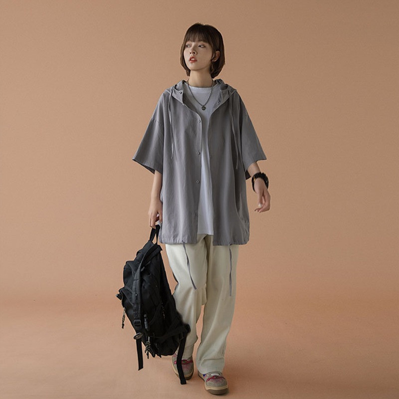 胖MM大尺碼300斤短袖襯衫女設計感小眾連帽襯衫夏季薄款防曬衣外套2