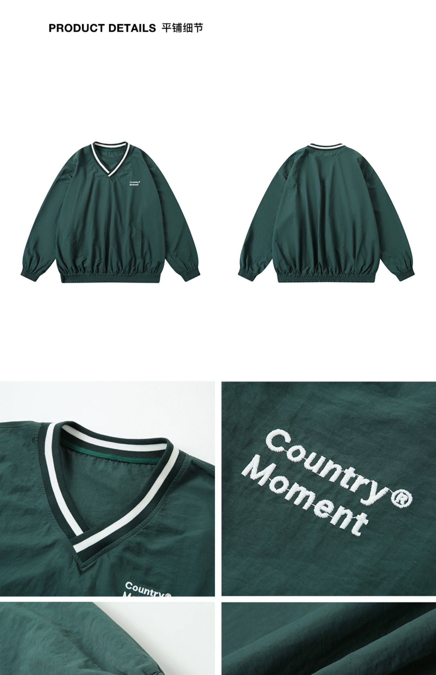 CountryMoment春秋日系V領套頭休閒上衣男潮復古機能防風運動上衣