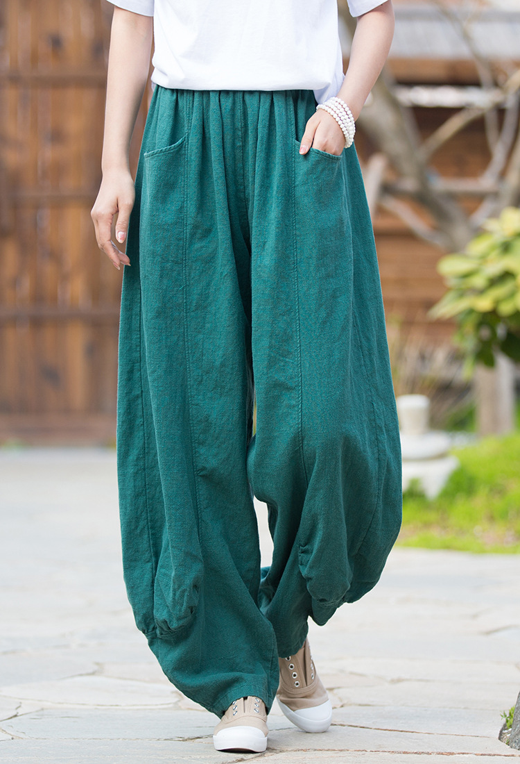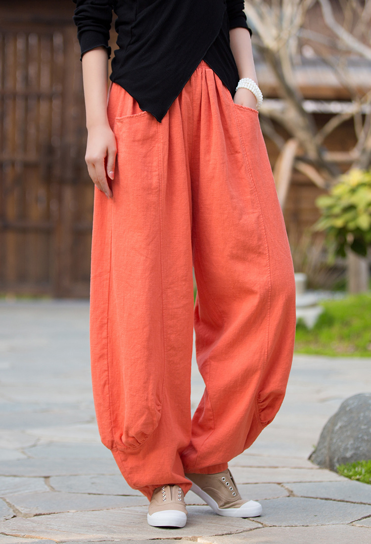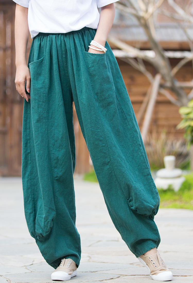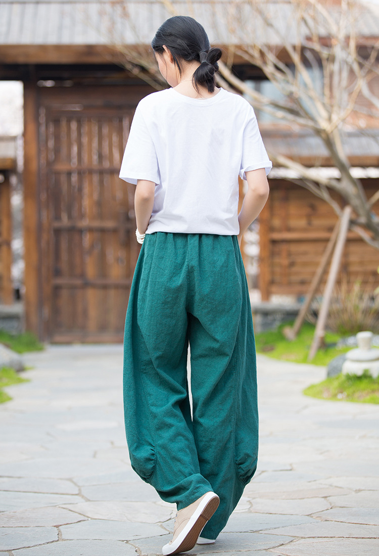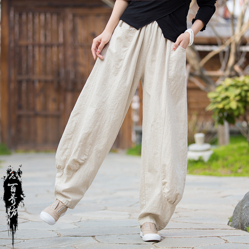 23春夏新款苎麻砂洗柔软百搭长裤女禅系居家旅行休闲裤女式阔腿裤