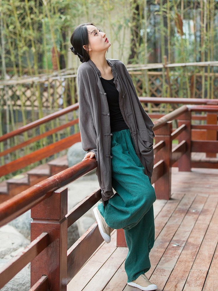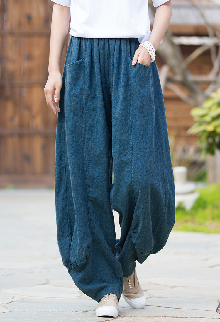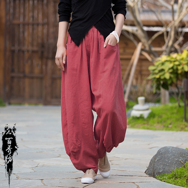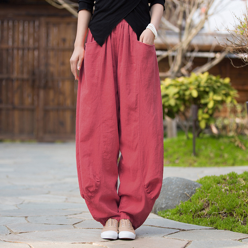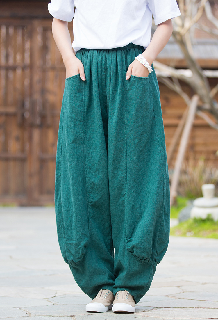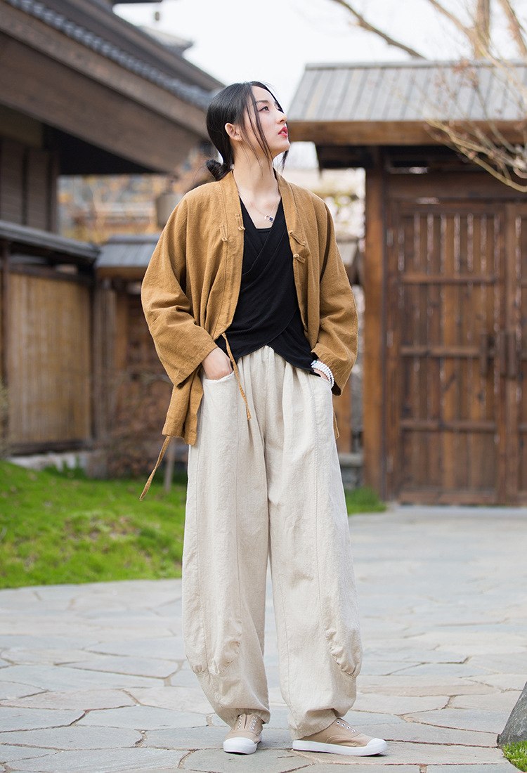 23春夏新款苎麻砂洗柔软百搭长裤女禅系居家旅行休闲裤女式阔腿裤