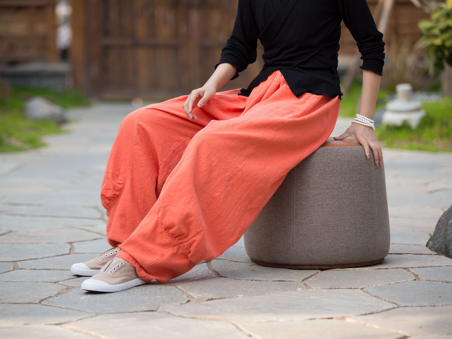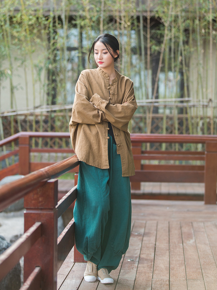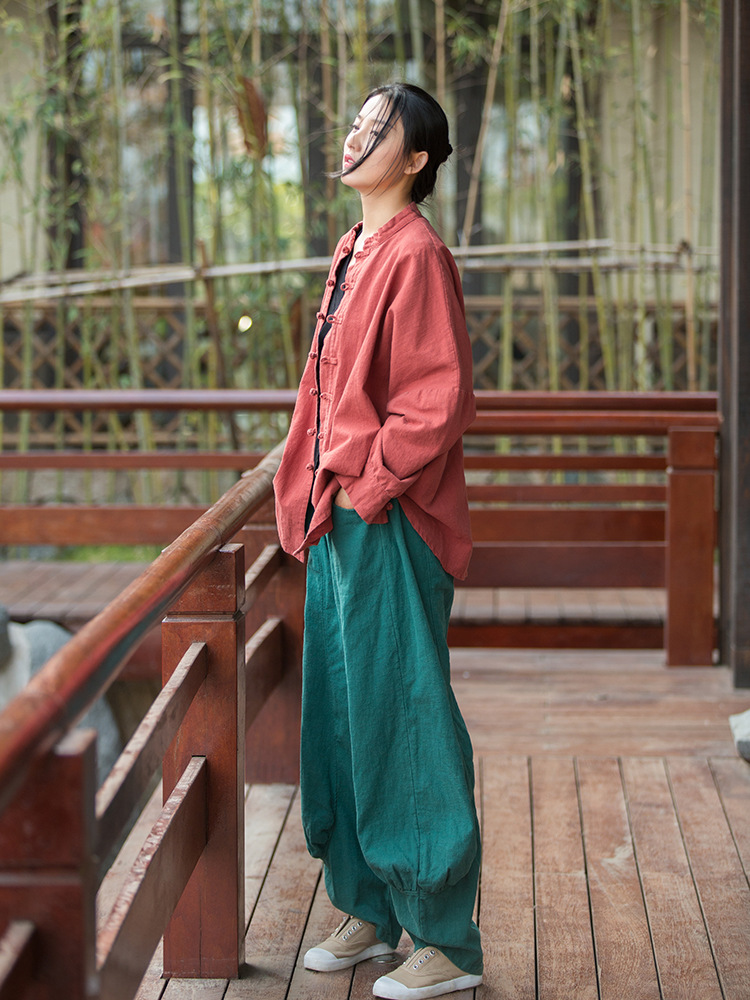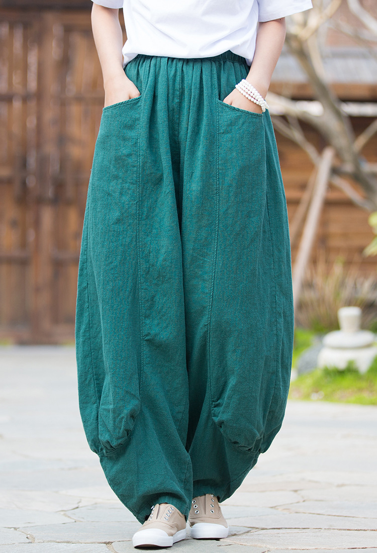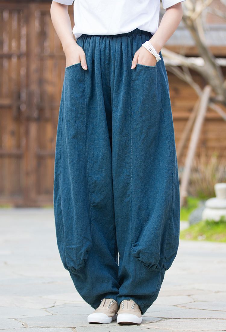 23春夏新款苎麻砂洗柔软百搭长裤女禅系居家旅行休闲裤女式阔腿裤