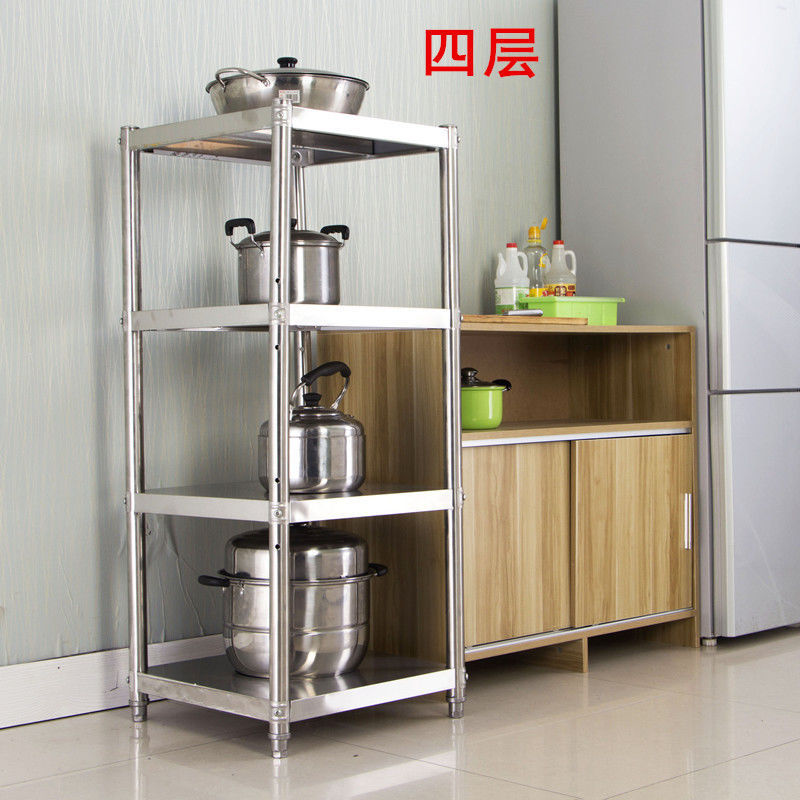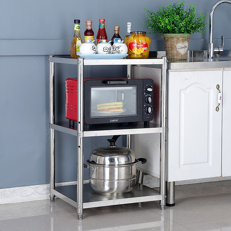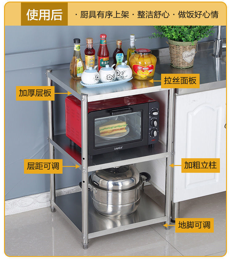 不锈钢厨房置物架落地3层多层放锅烤箱架子微波炉4收纳架家用货架