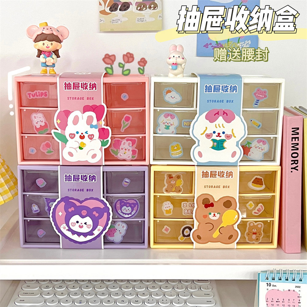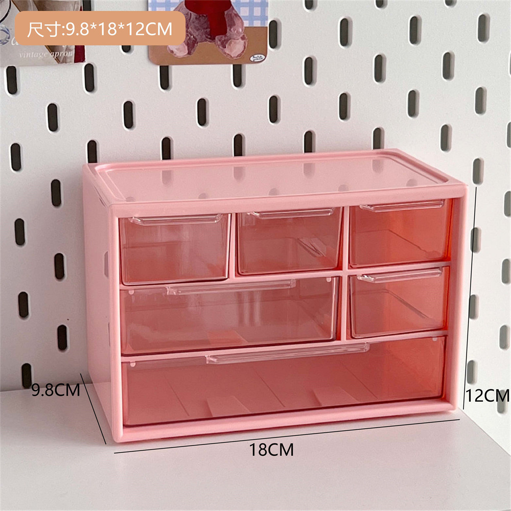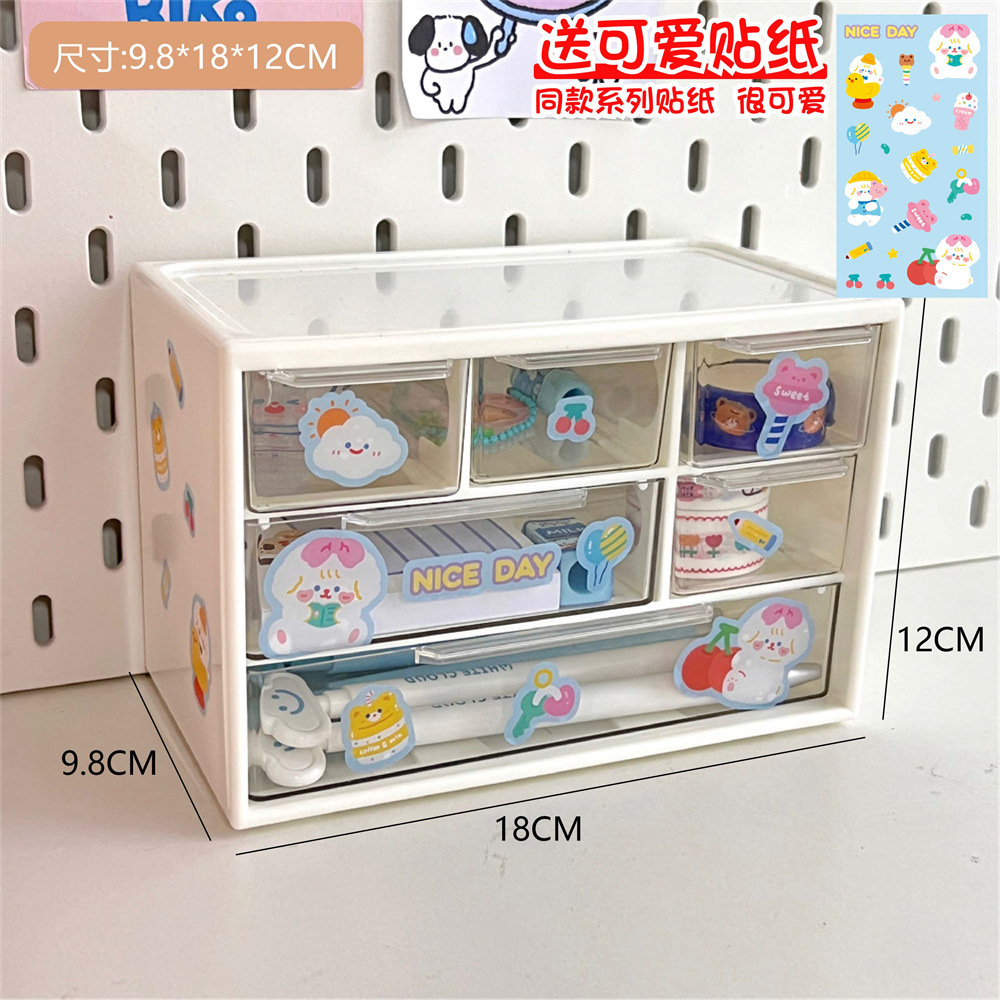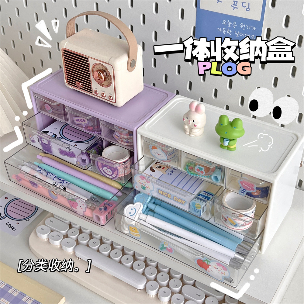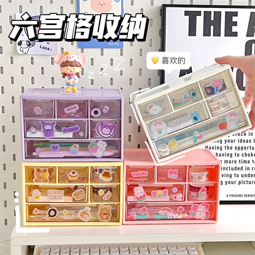 六宫格收纳盒新款手账大容量收纳盒化妆品文具跳色抽屉式收纳盒