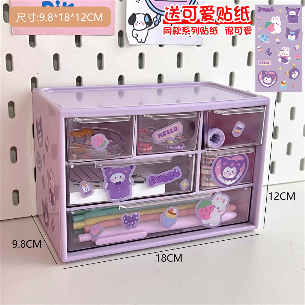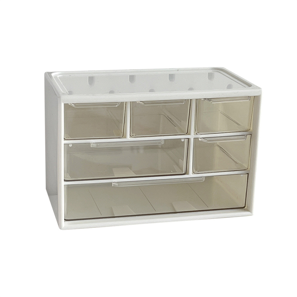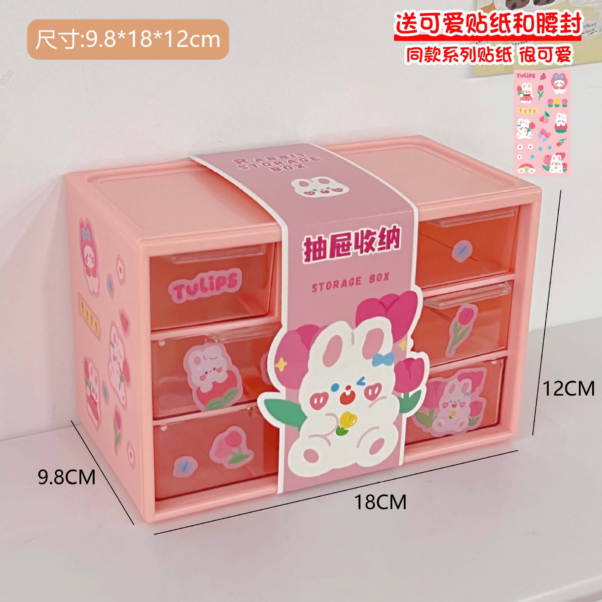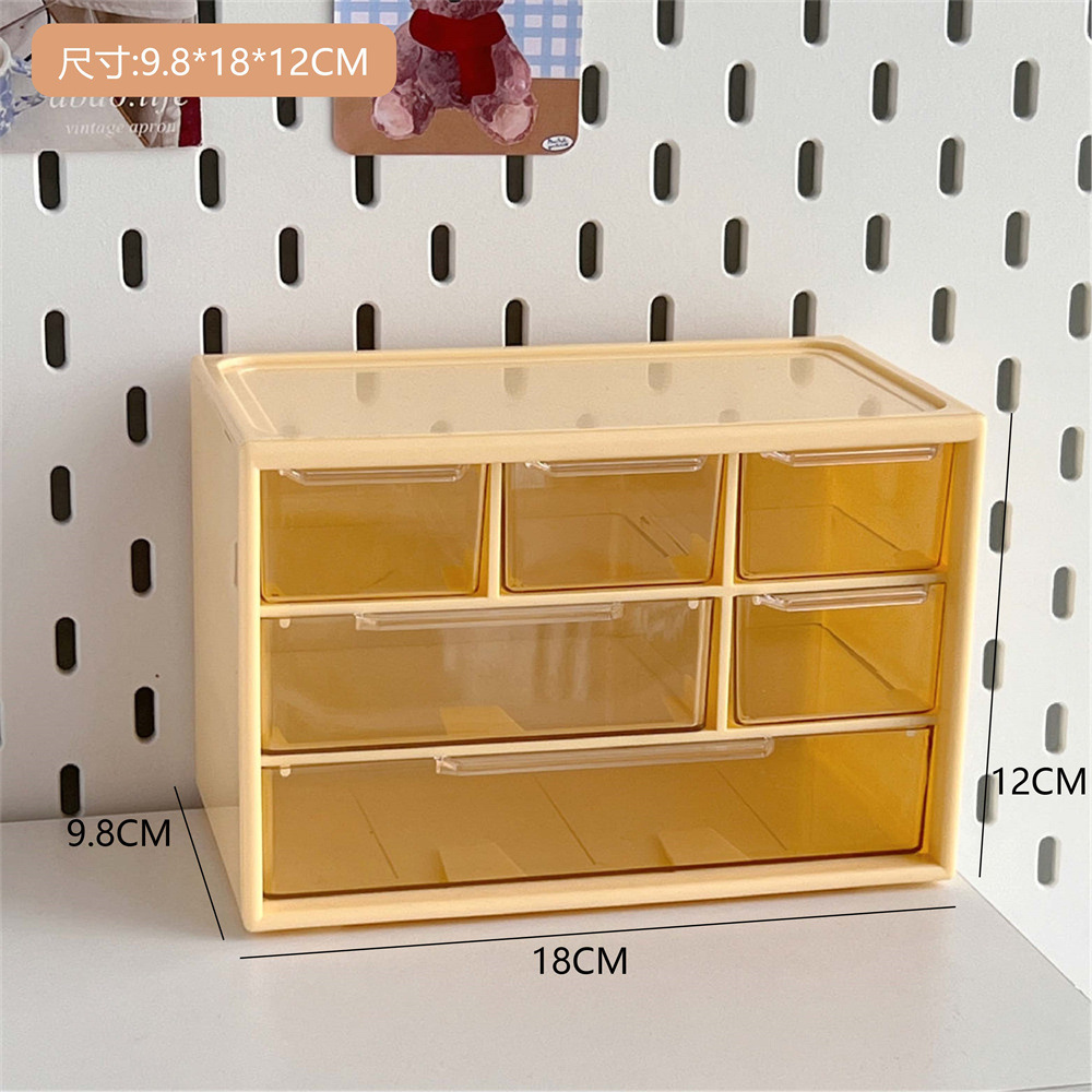 六宫格收纳盒新款手账大容量收纳盒化妆品文具跳色抽屉式收纳盒