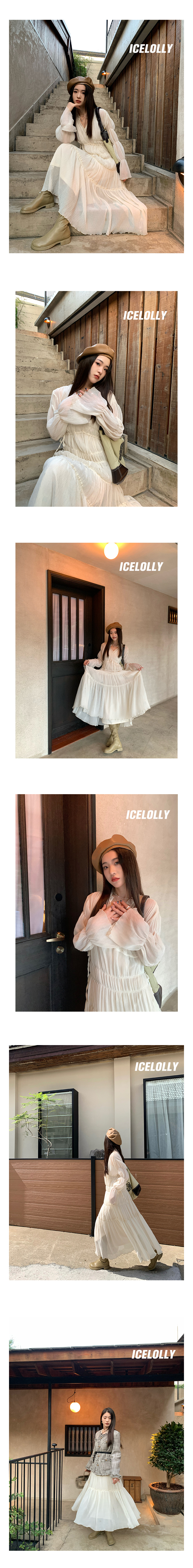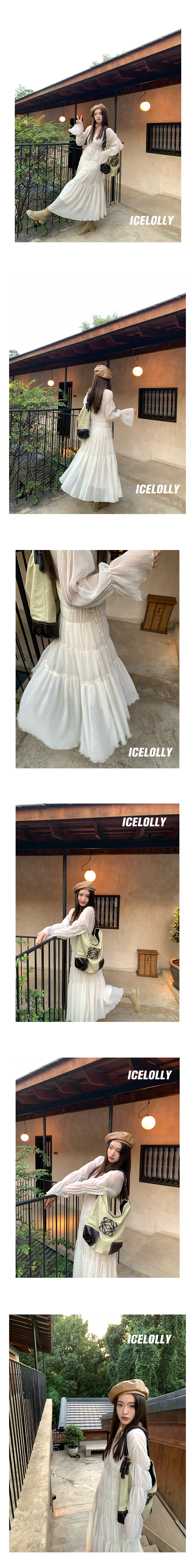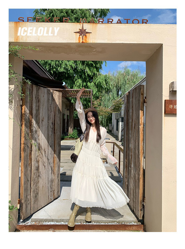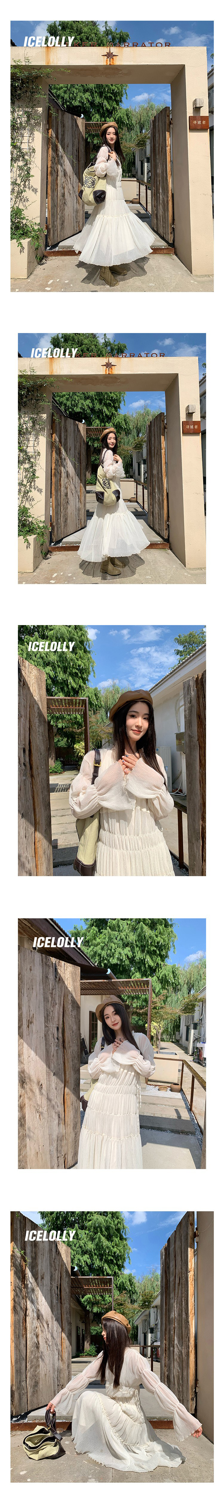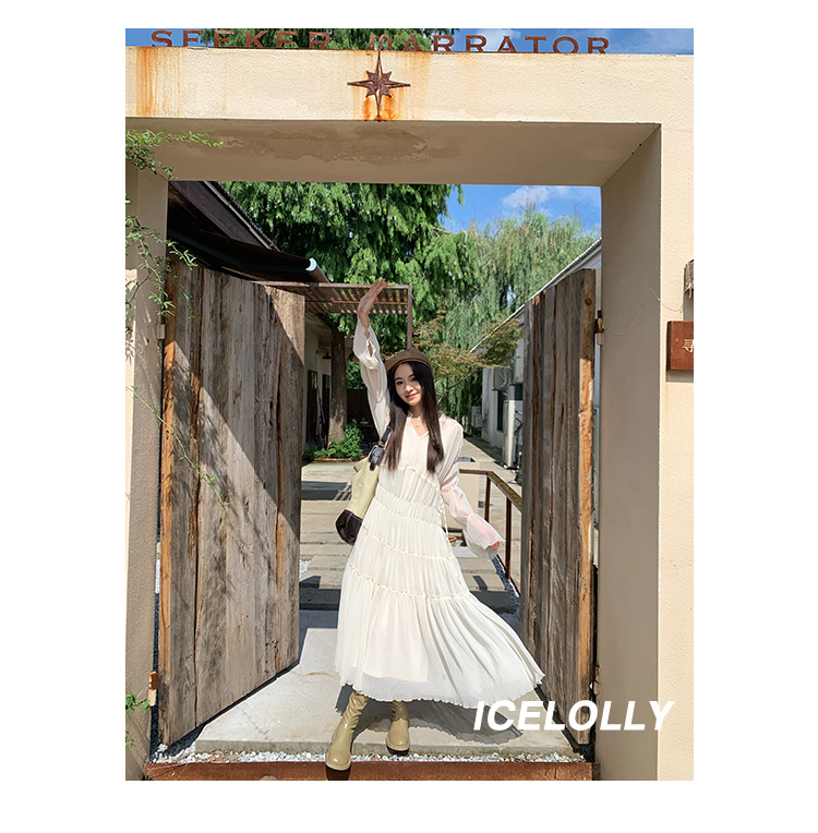 ICELOLLY垂墜感長袖白色連衣裙女今年流行漂亮23新款秋冬法式長裙
