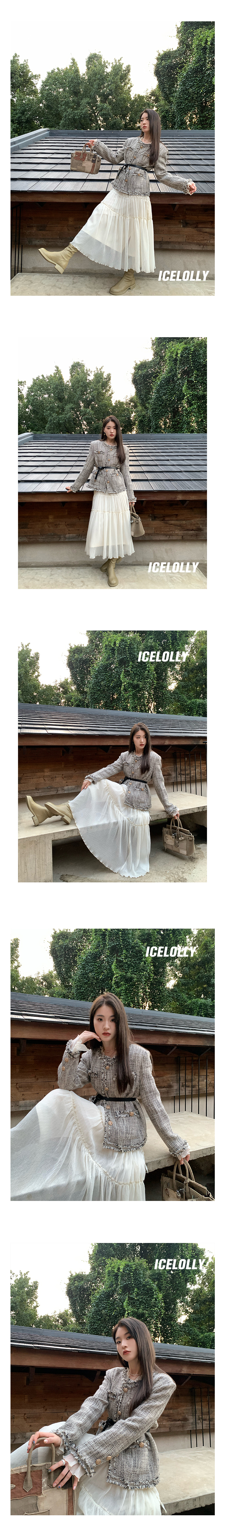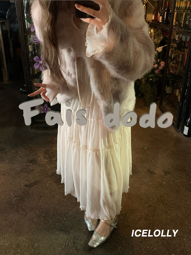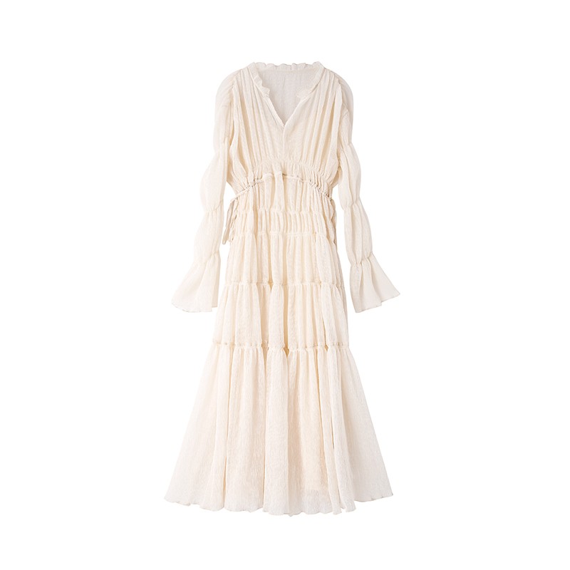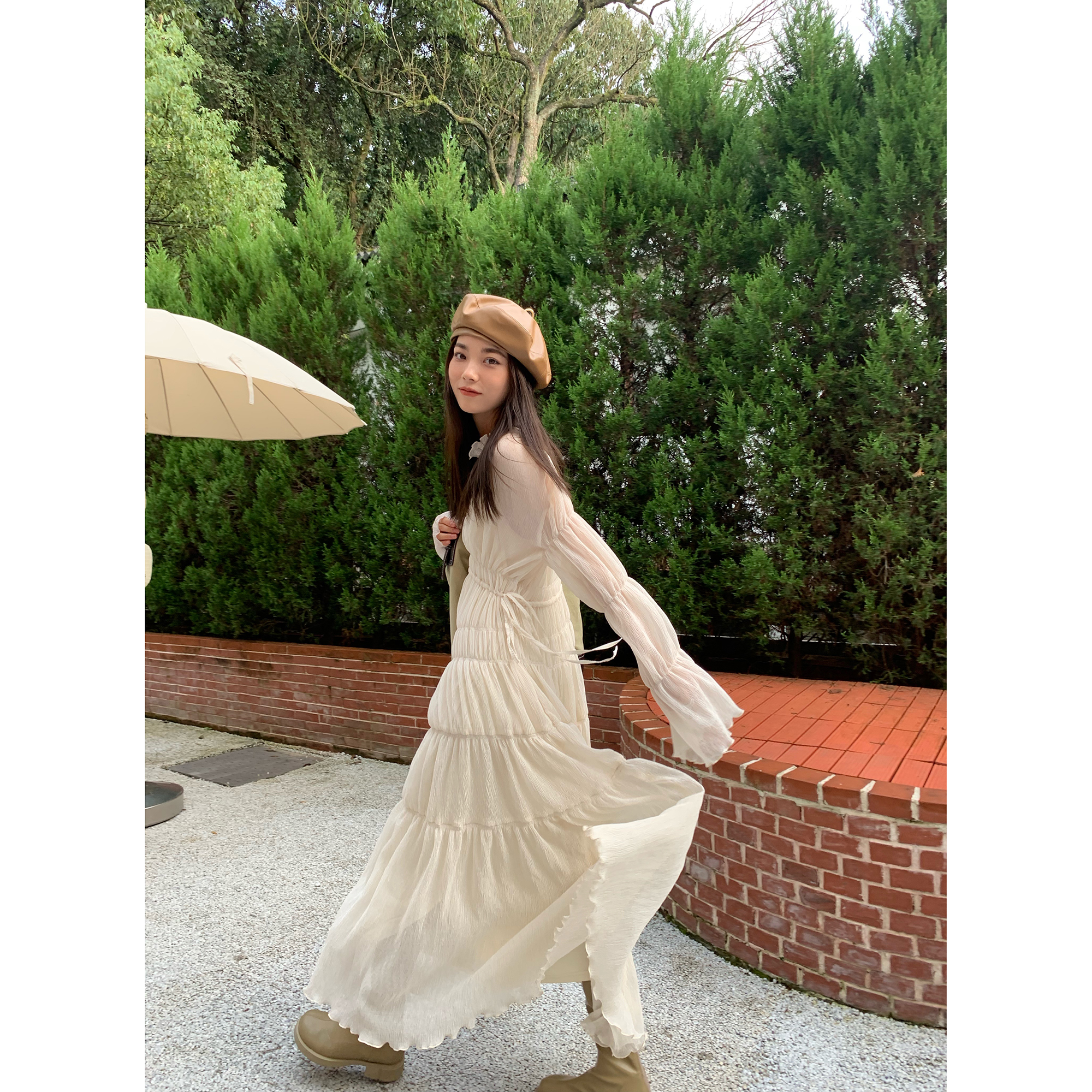 ICELOLLY垂墜感長袖白色連衣裙女今年流行漂亮23新款秋冬法式長裙