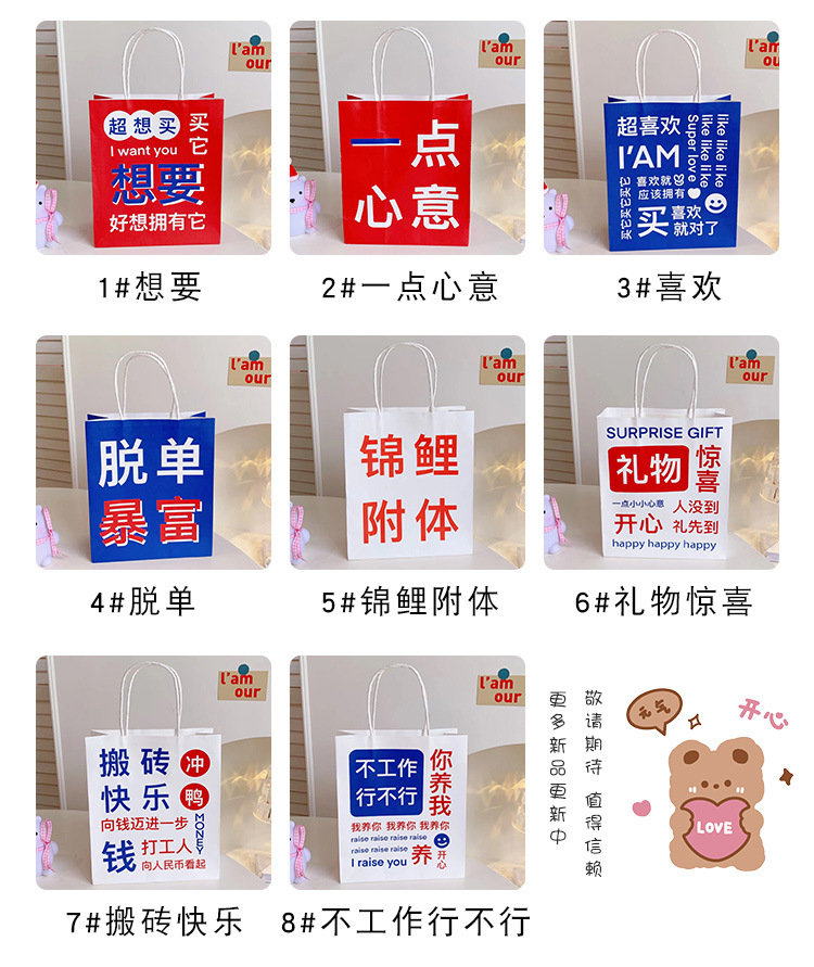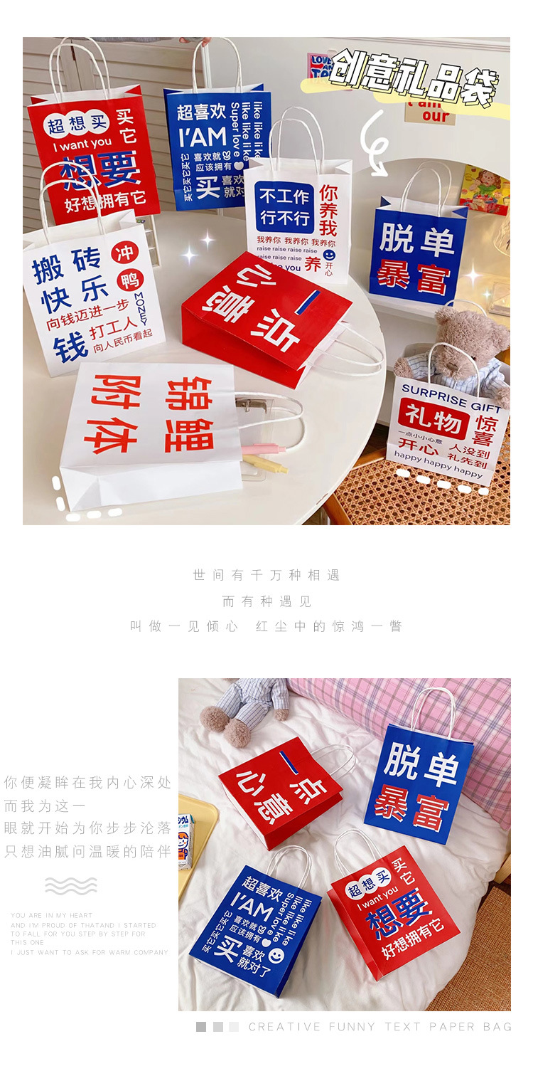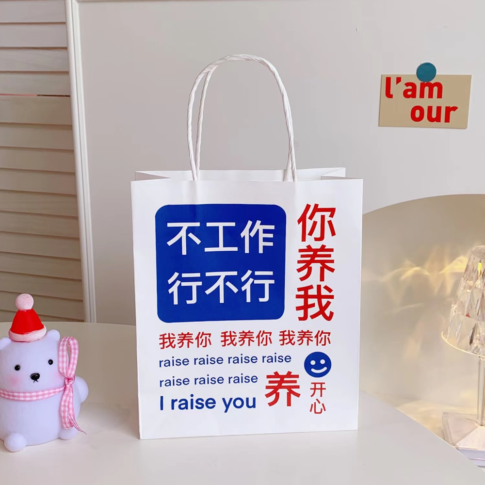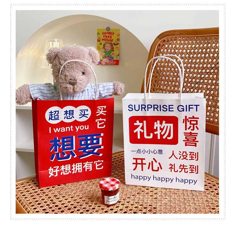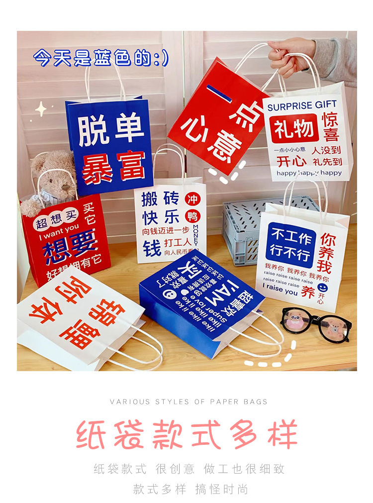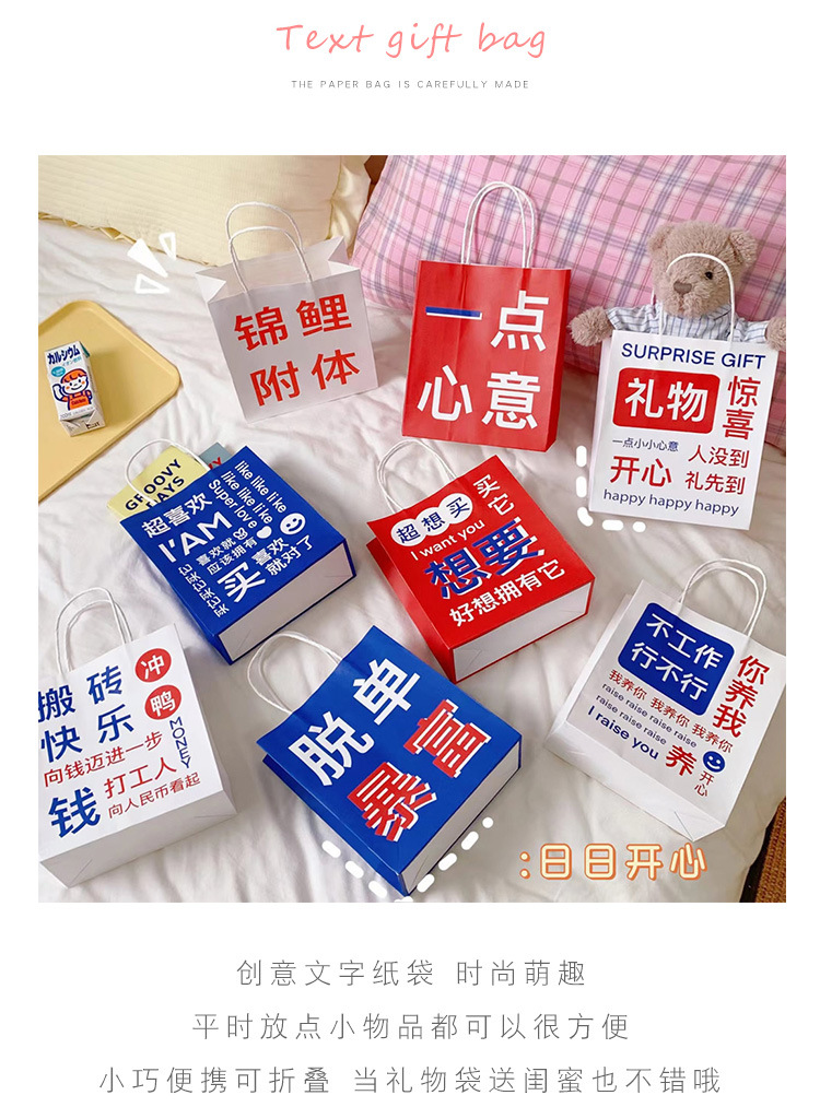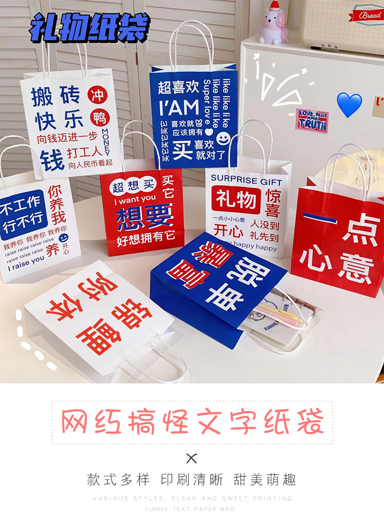 网红搞怪文字礼品袋少女创意大容量礼物包装袋手提袋可爱牛皮纸袋