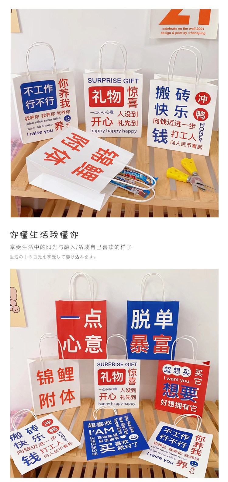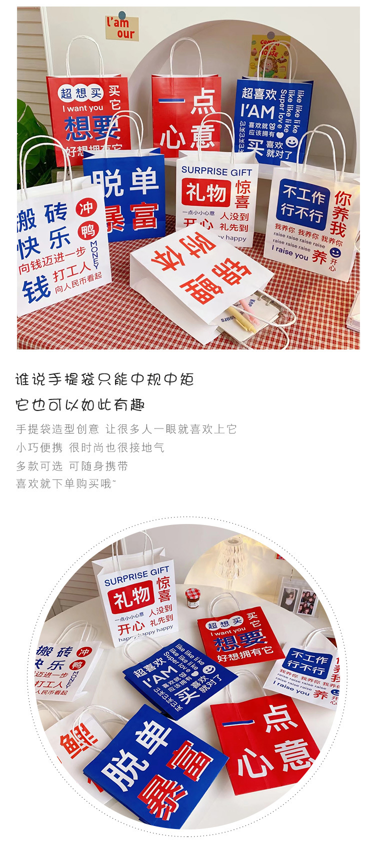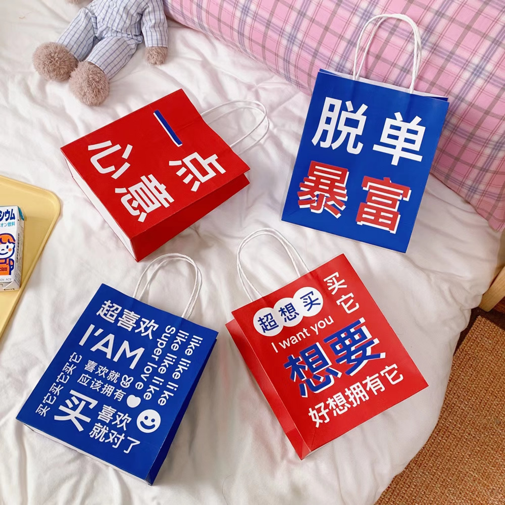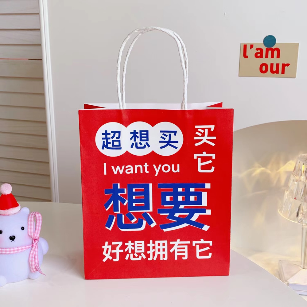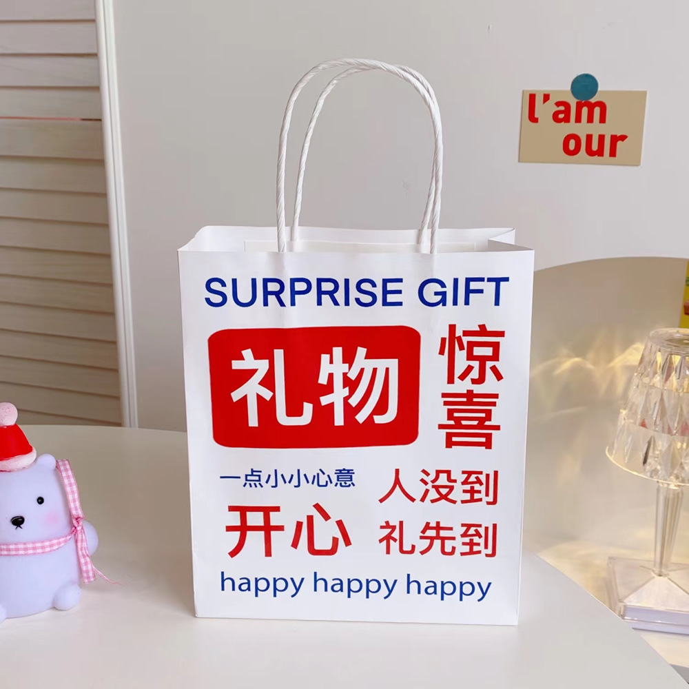 网红搞怪文字礼品袋少女创意大容量礼物包装袋手提袋可爱牛皮纸袋