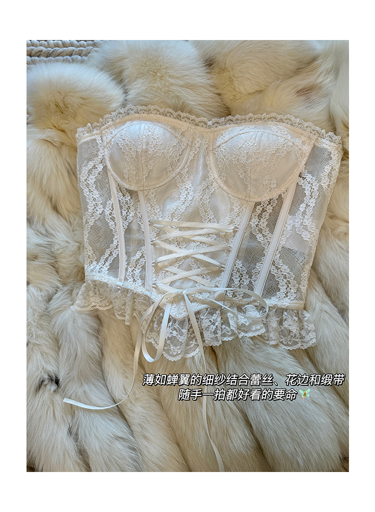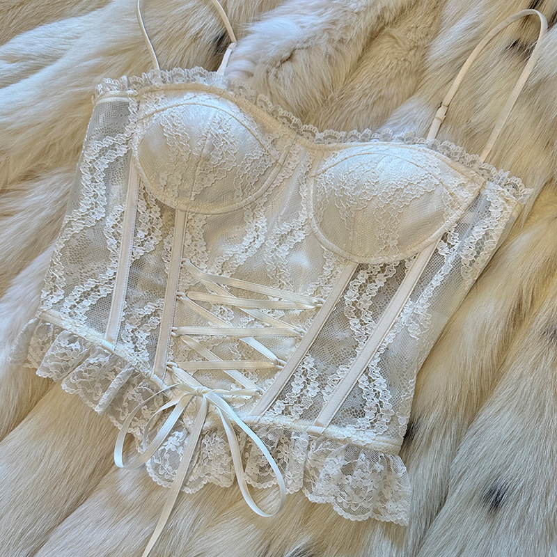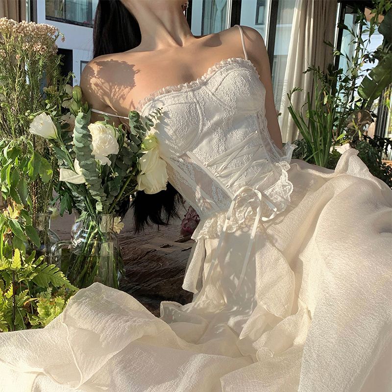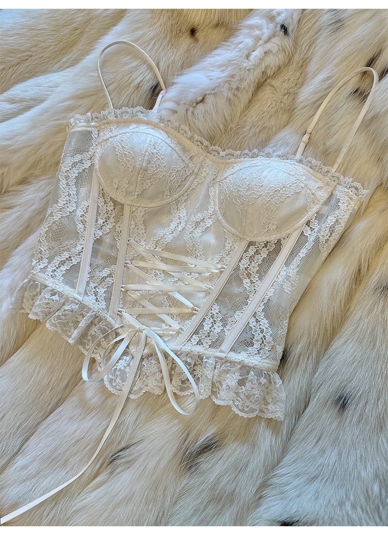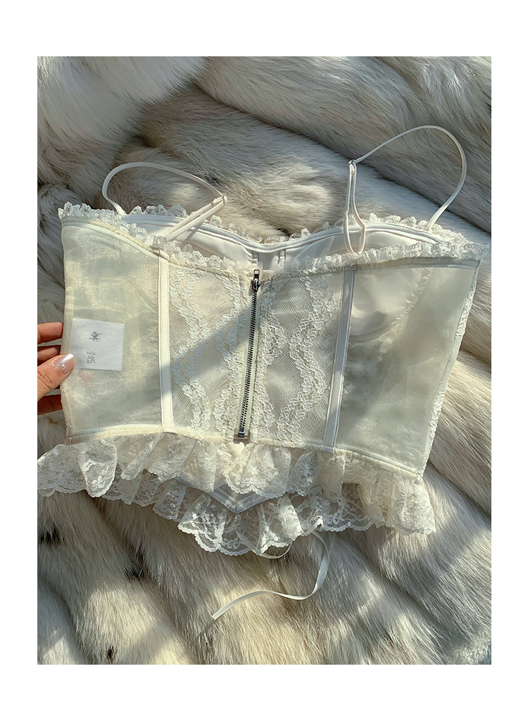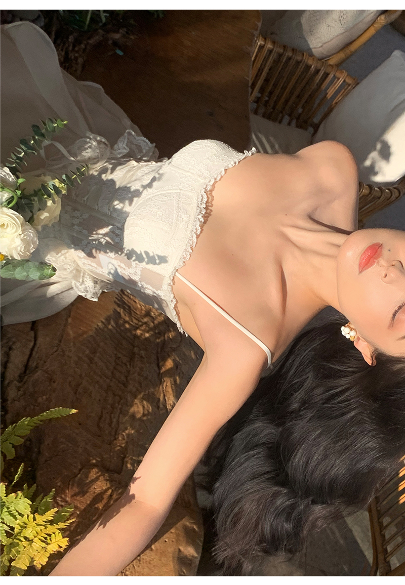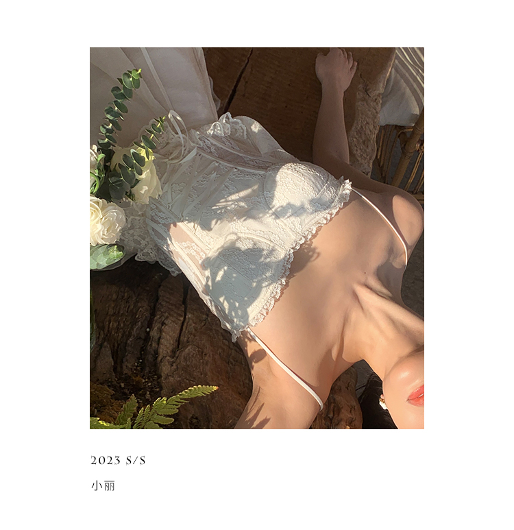 小麗XIAOLI安妮公主蕾絲吊帶內搭無袖背心法式芭蕾風魚骨抹胸上衣