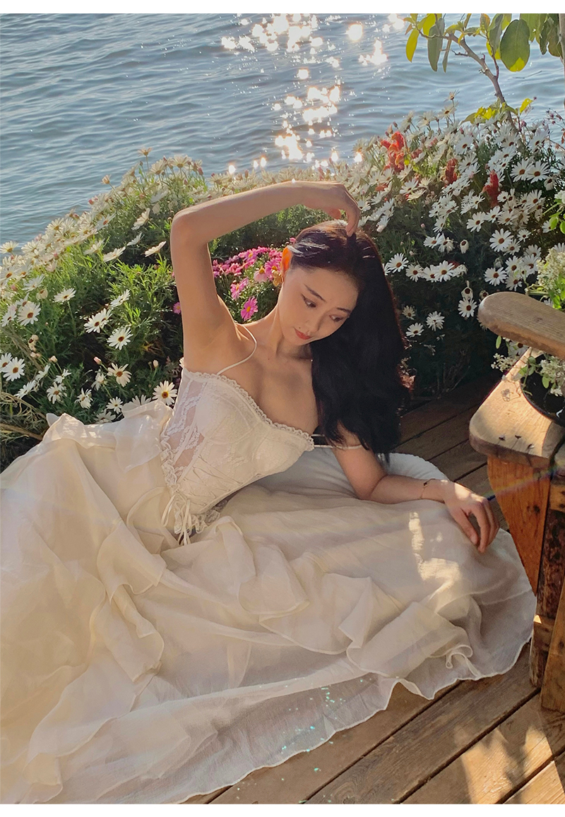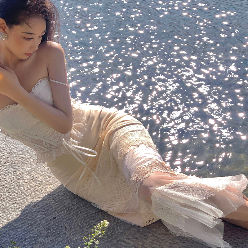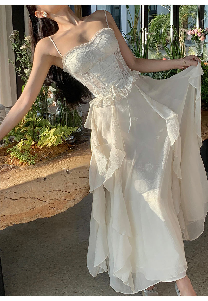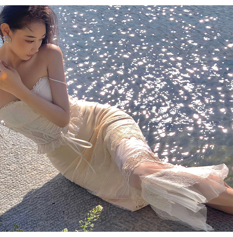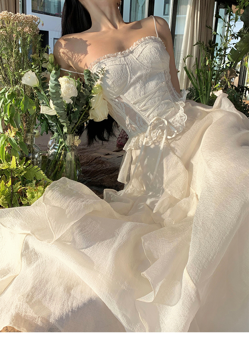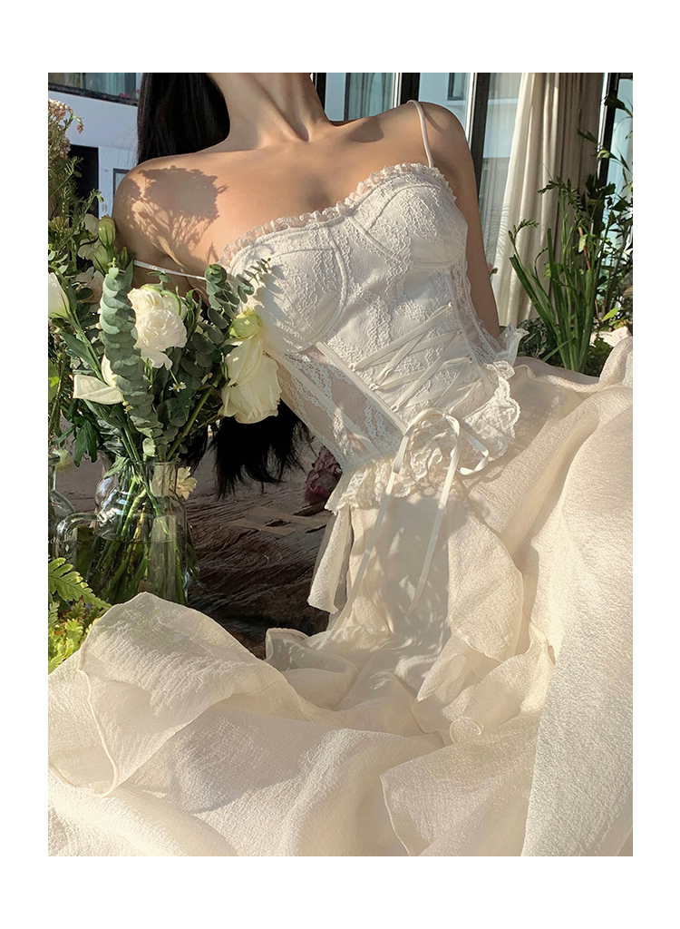小麗XIAOLI安妮公主蕾絲吊帶內搭無袖背心法式芭蕾風魚骨抹胸上衣