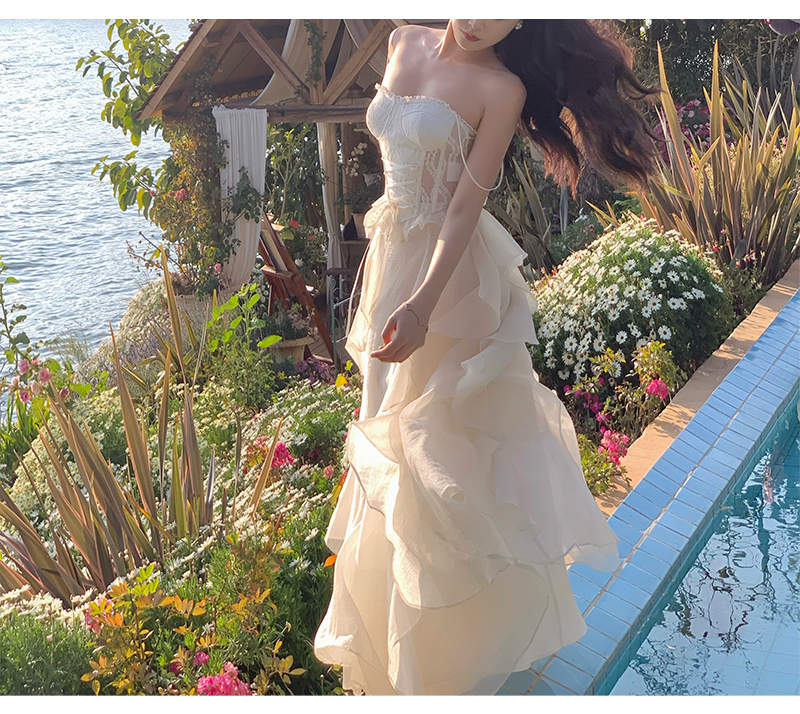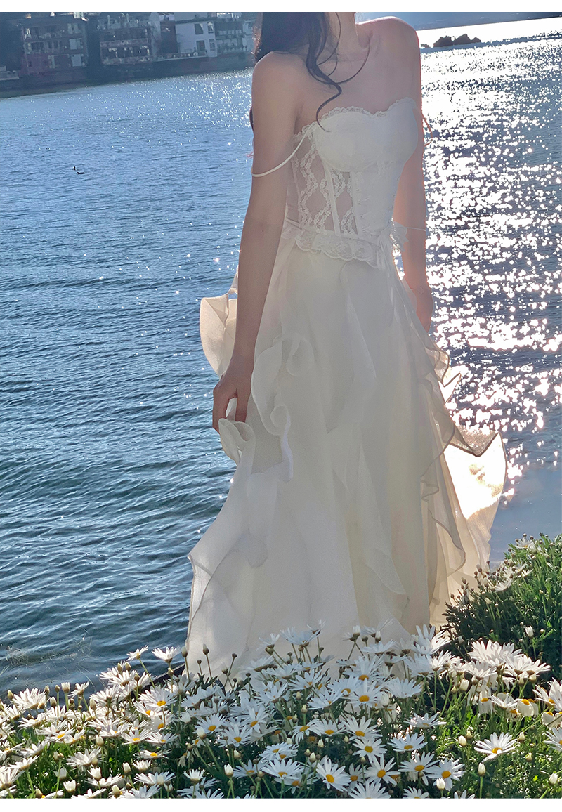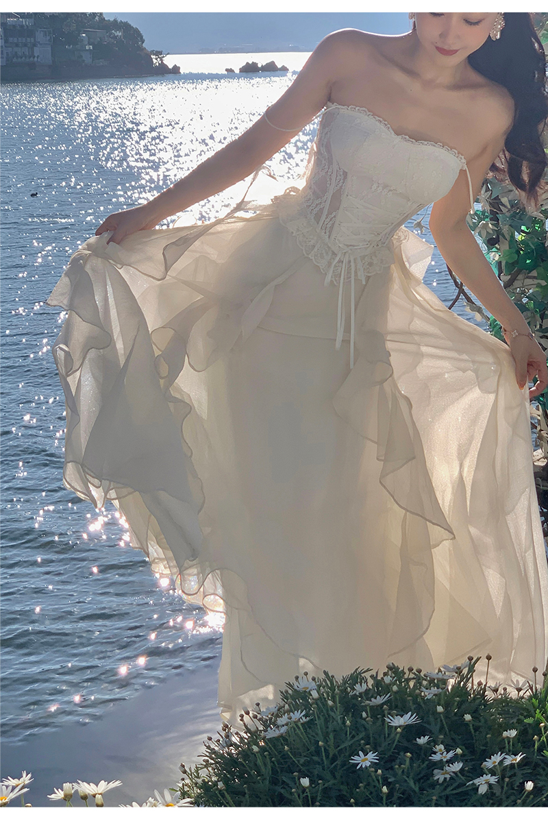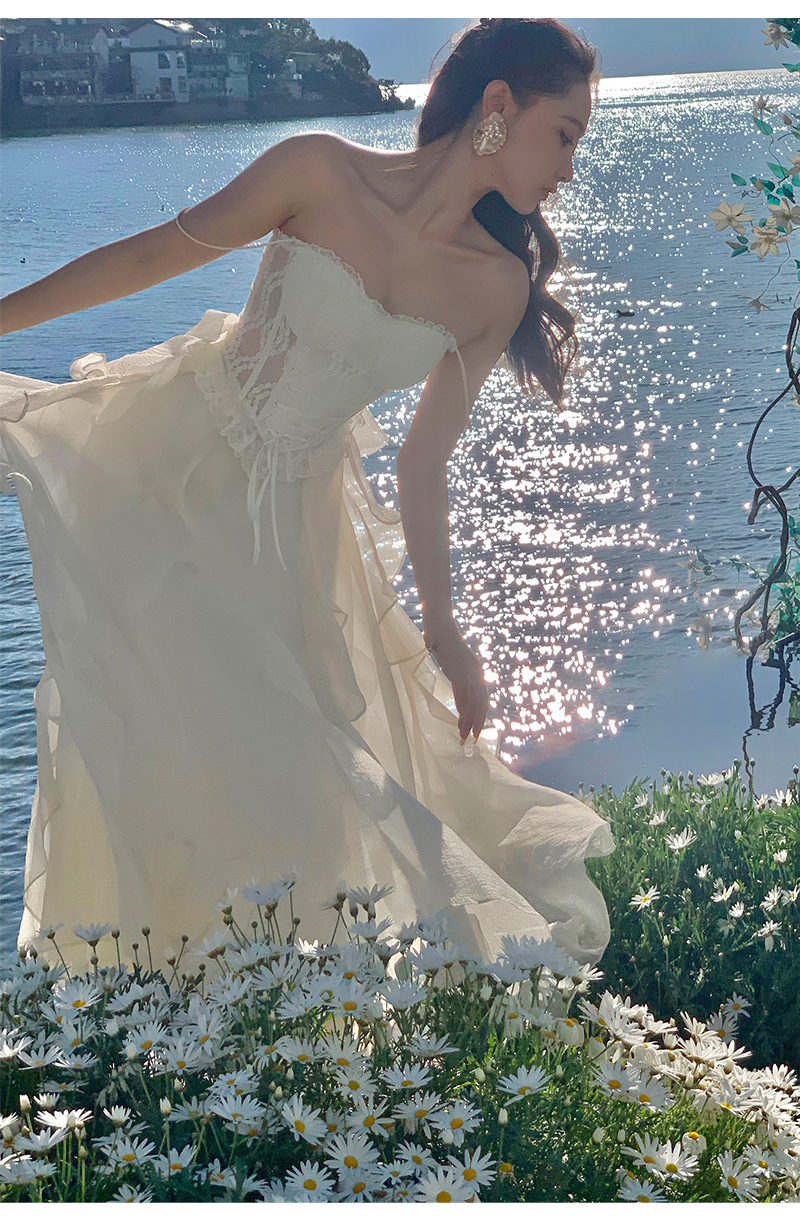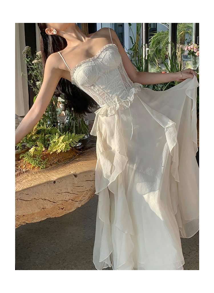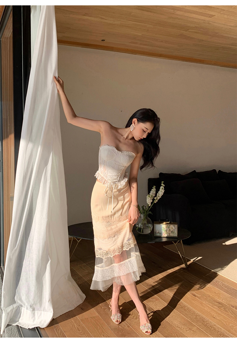 小麗XIAOLI安妮公主蕾絲吊帶內搭無袖背心法式芭蕾風魚骨抹胸上衣