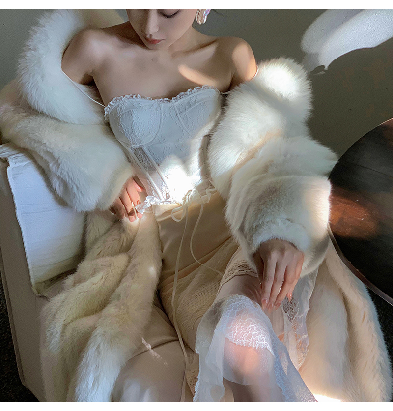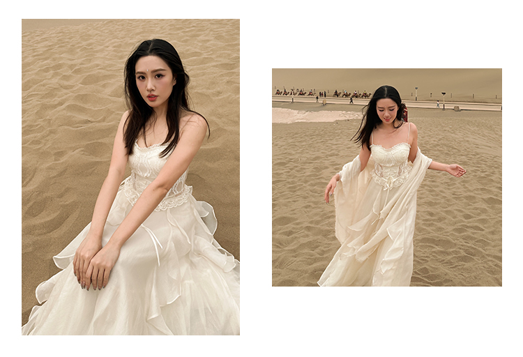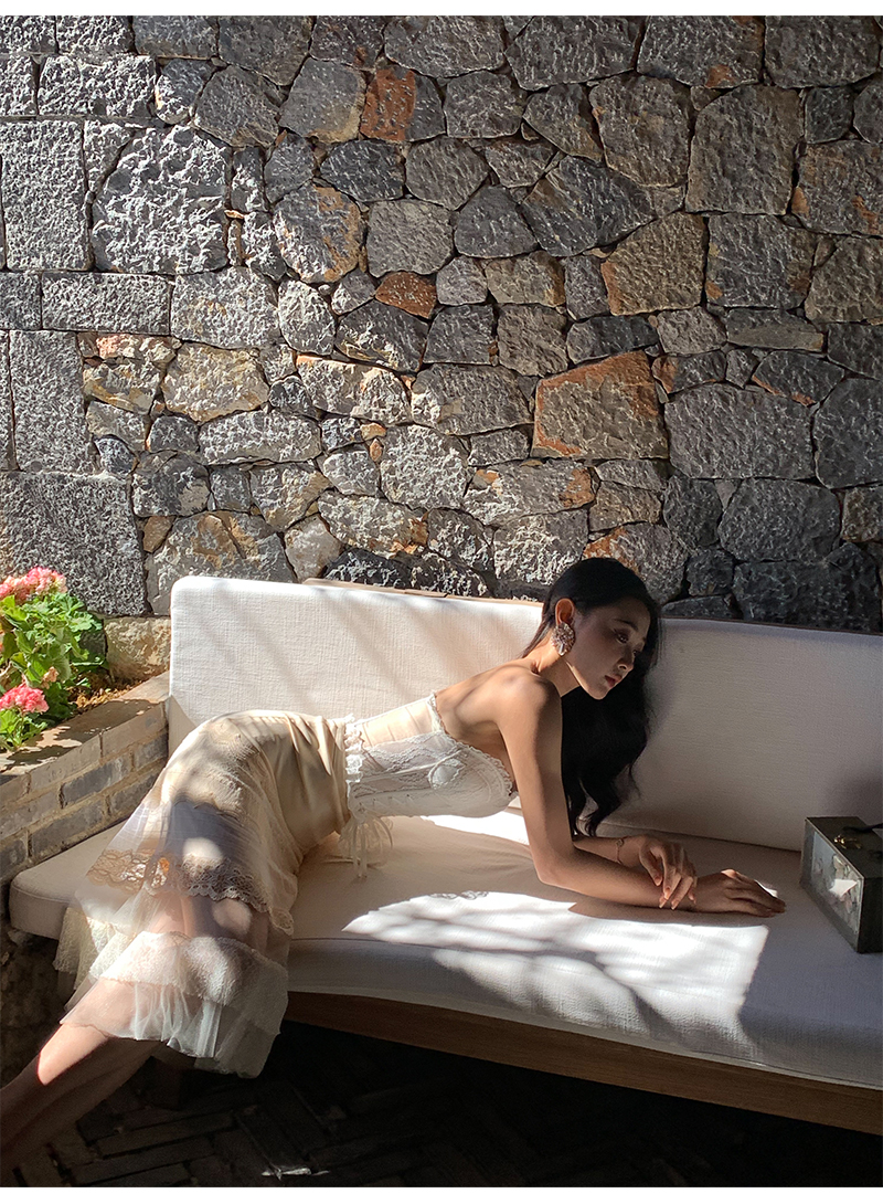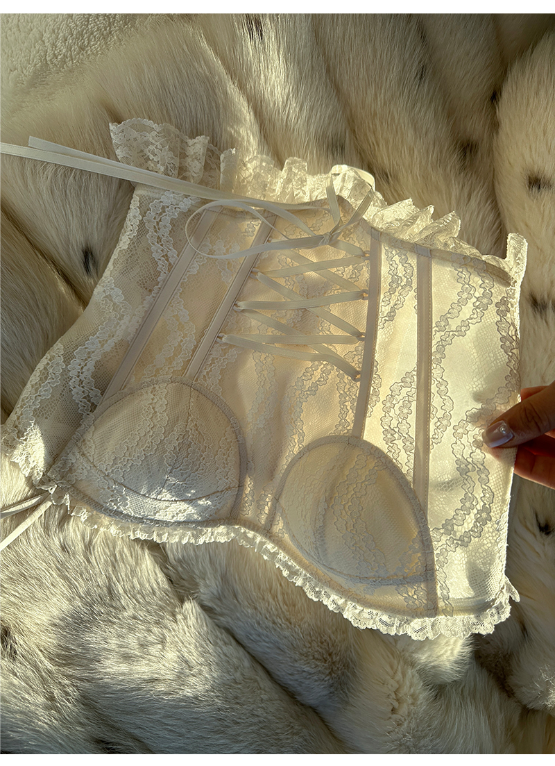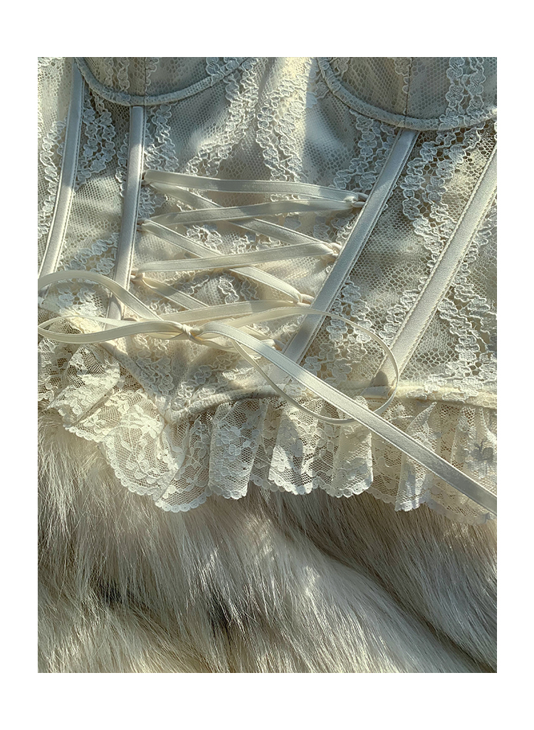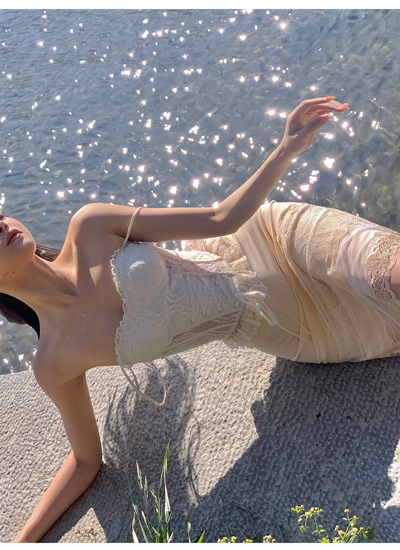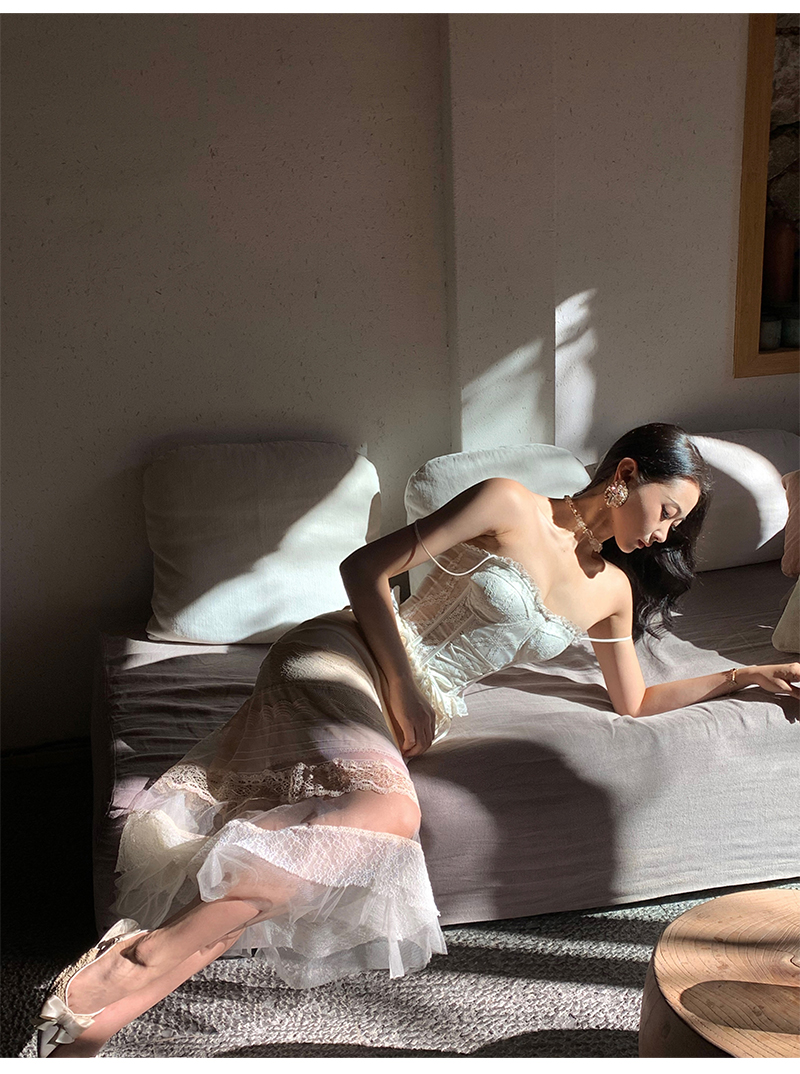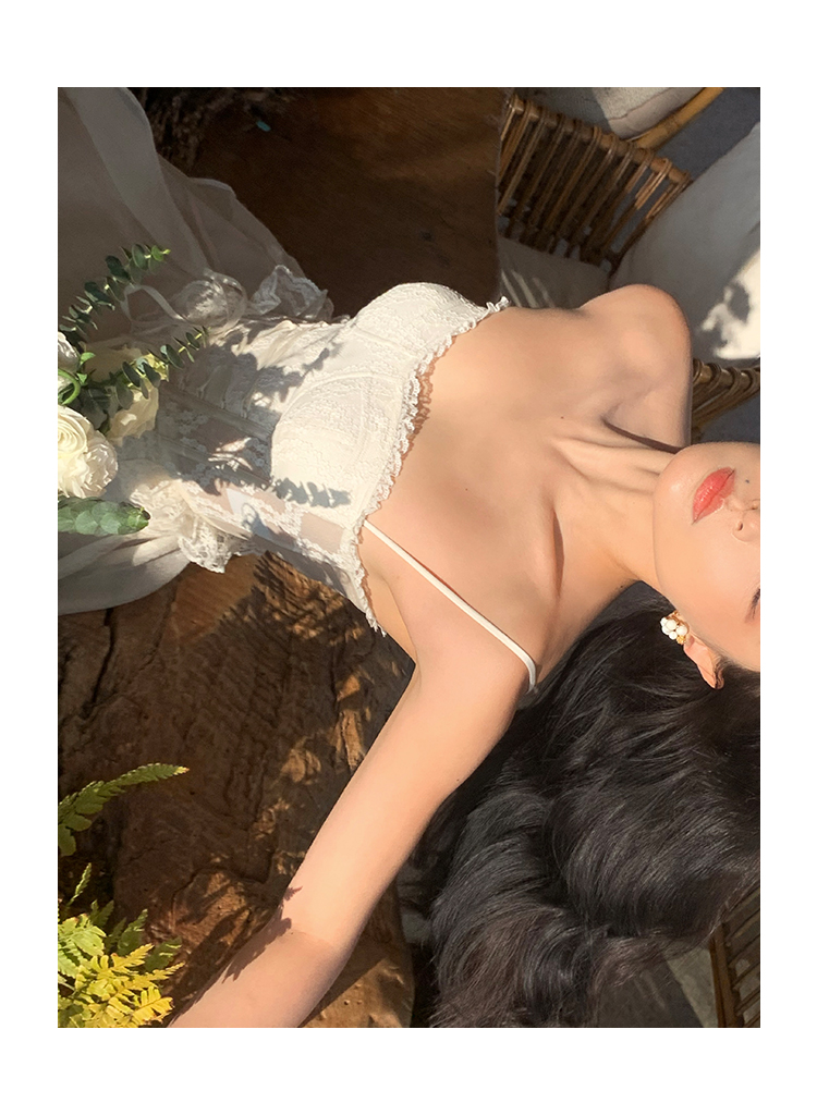 “她穿着洁白蕾丝吊带上衣,如此精美细腻,透明朦胧