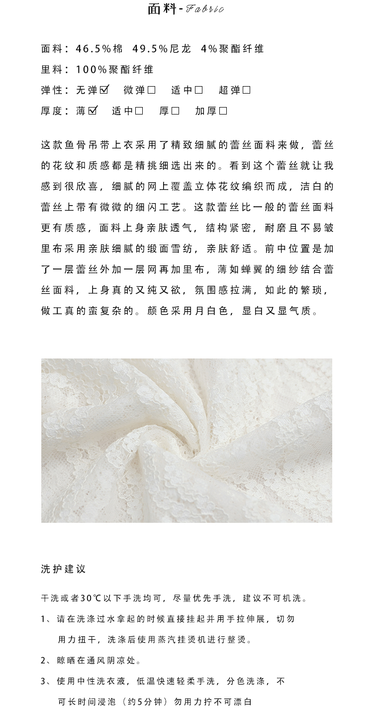 花边都是选的柔软蕾丝来做,整体看起来增加少女感