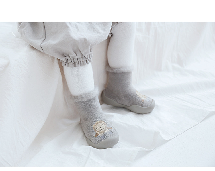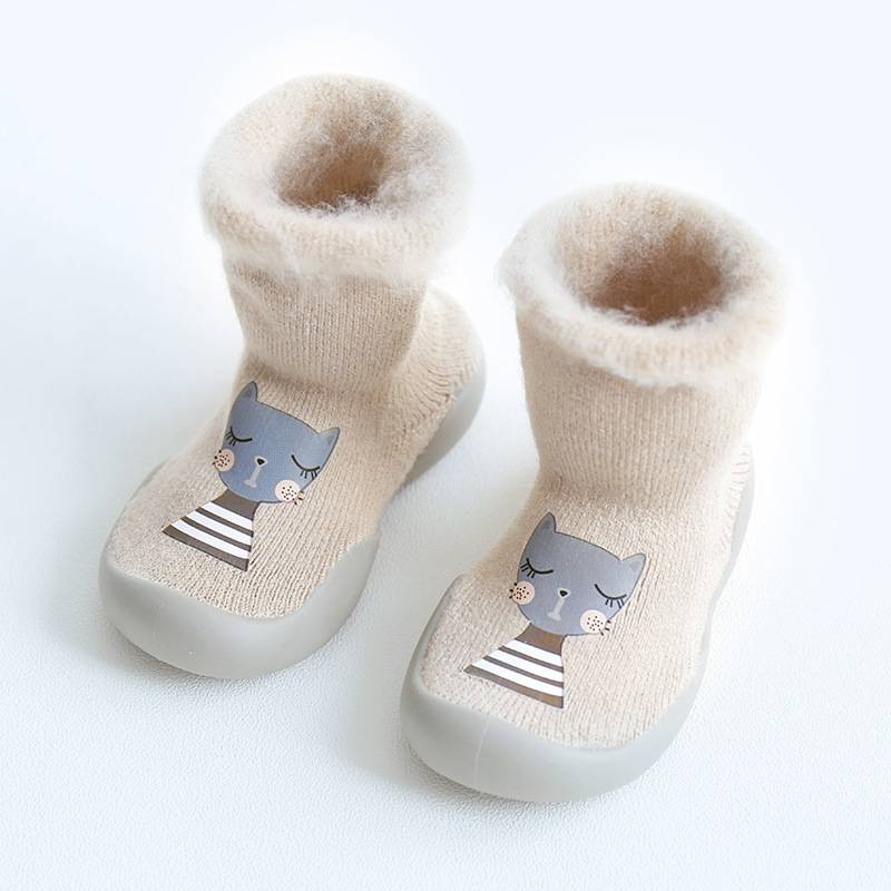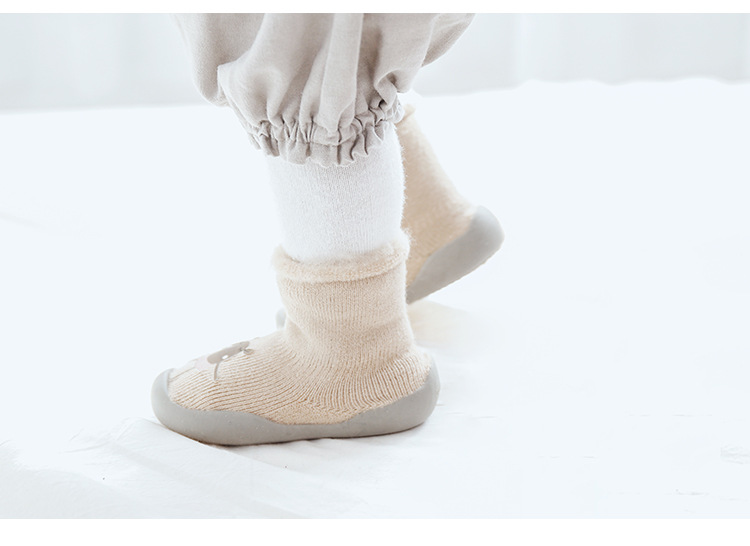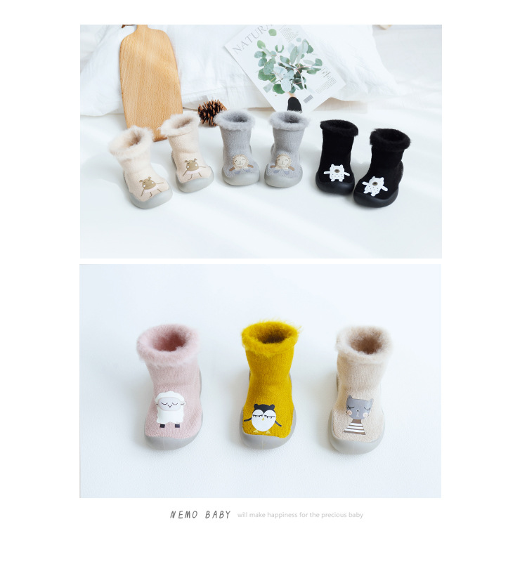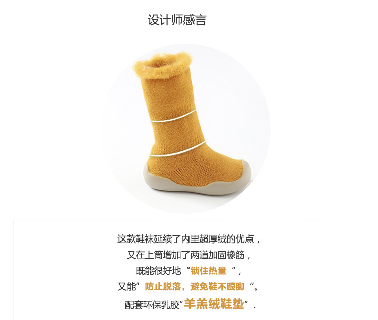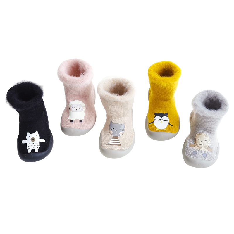 18新款秋冬加厚加绒儿童地板袜刷毛宝宝学步鞋袜胶底卡通中筒袜子