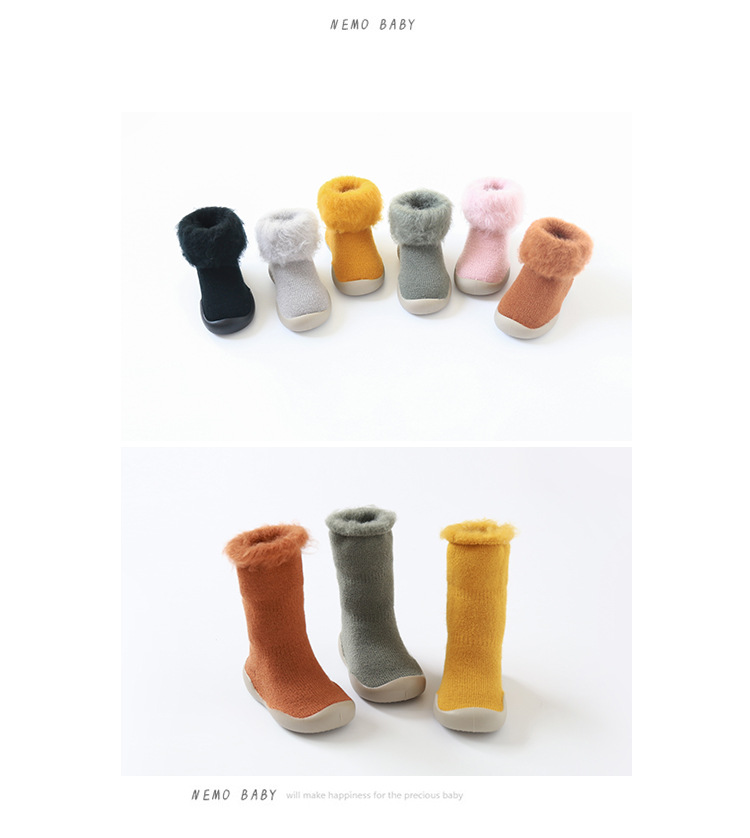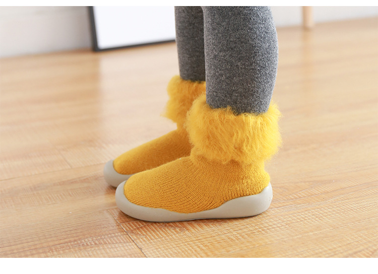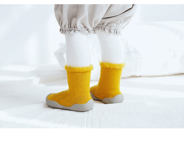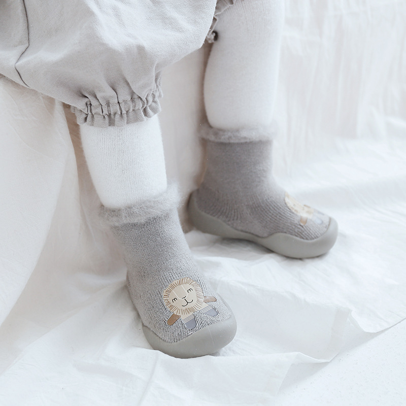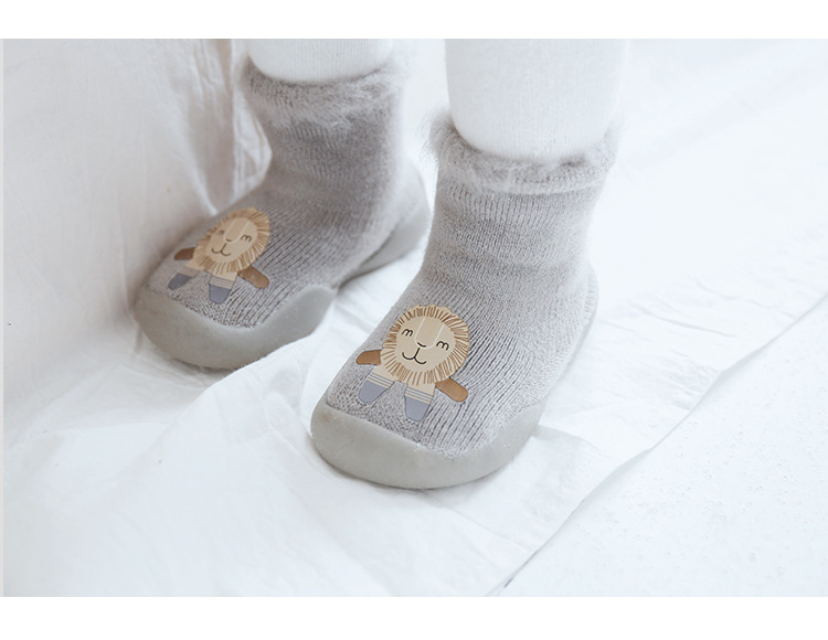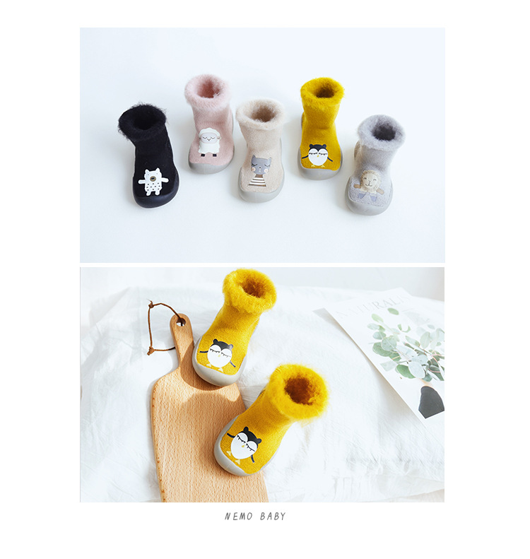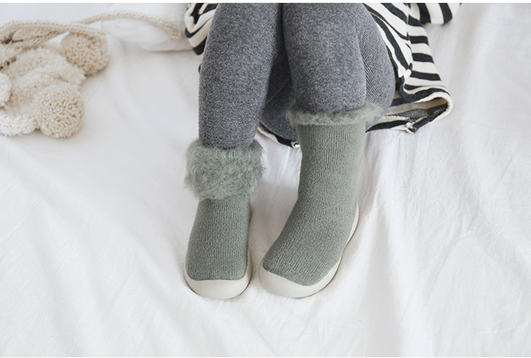 18新款秋冬加厚加绒儿童地板袜刷毛宝宝学步鞋袜胶底卡通中筒袜子