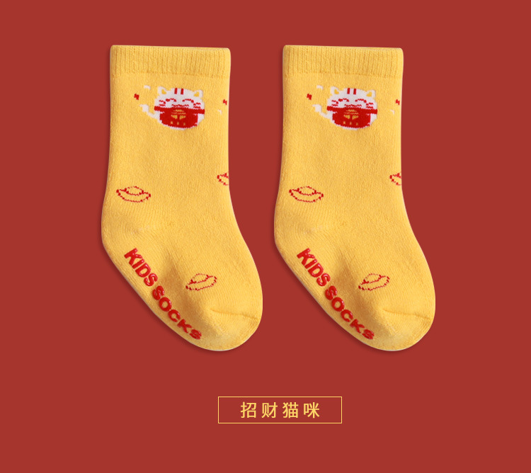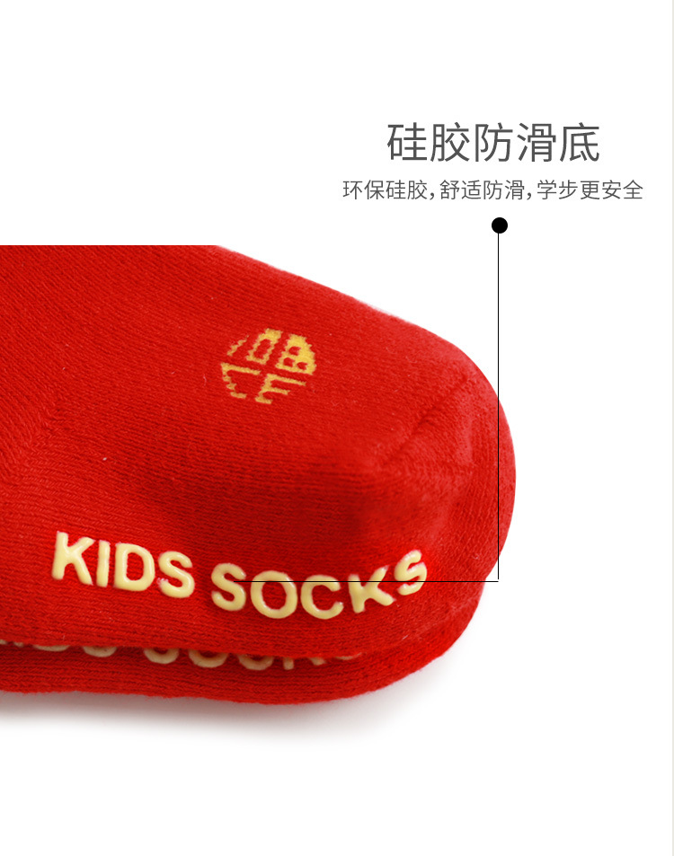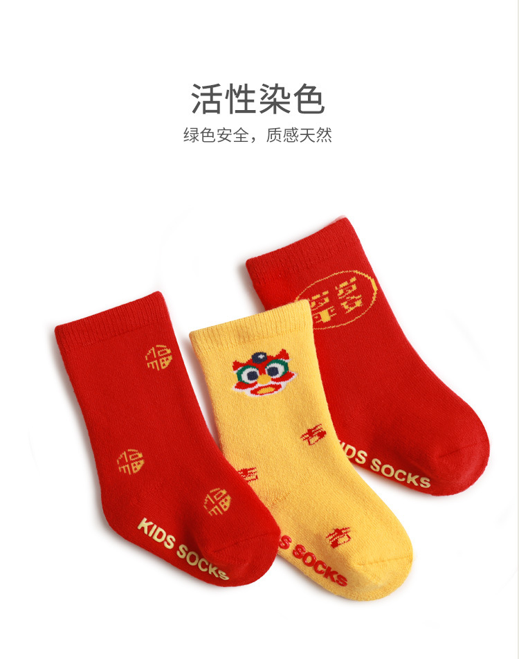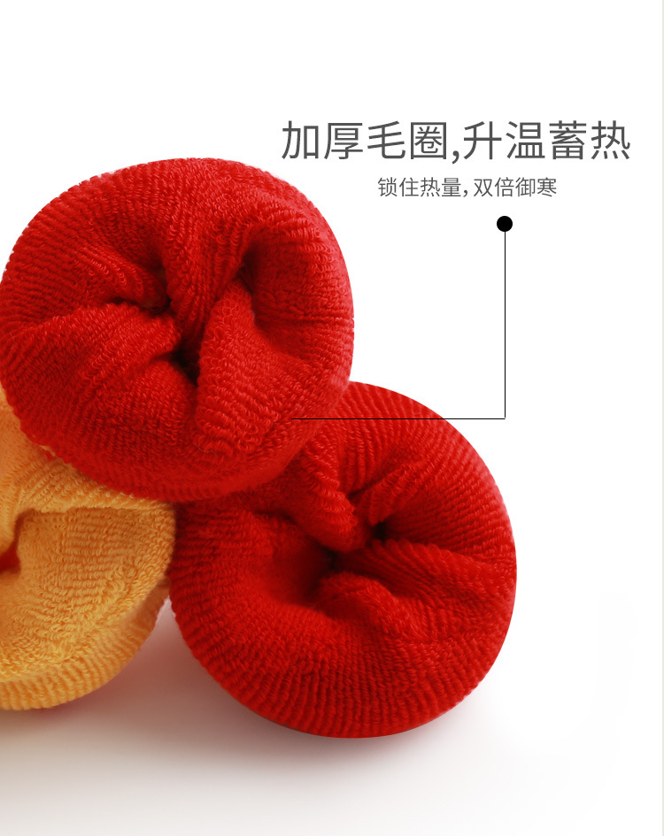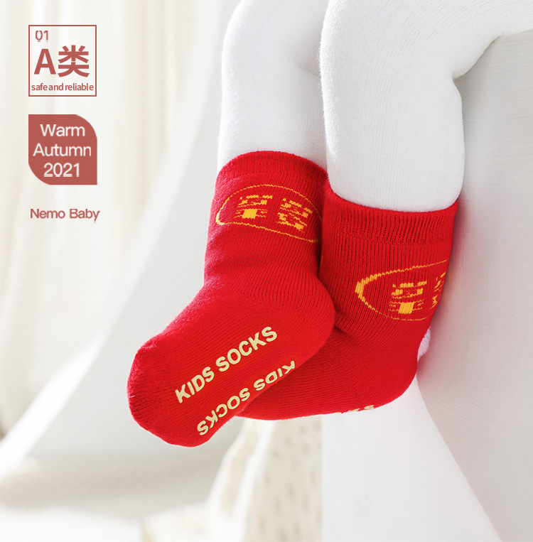 新款宝宝袜子秋冬精梳棉新生婴儿毛圈袜子红色新年加厚保暖中筒袜
