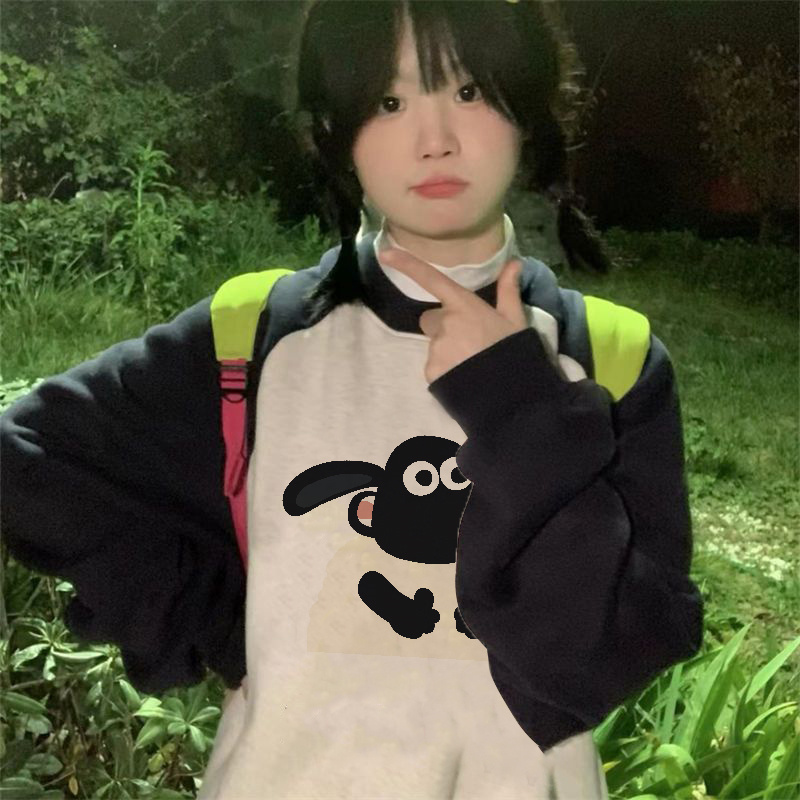 小眾不撞款插肩袖衛衣女春秋長袖薄2023新款歐貨漂亮美式復古上衣