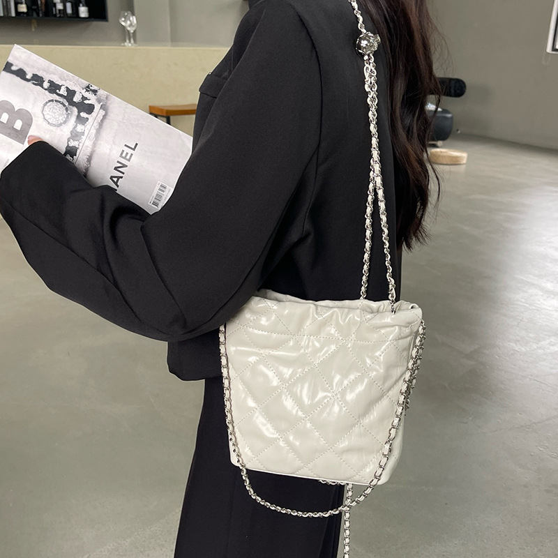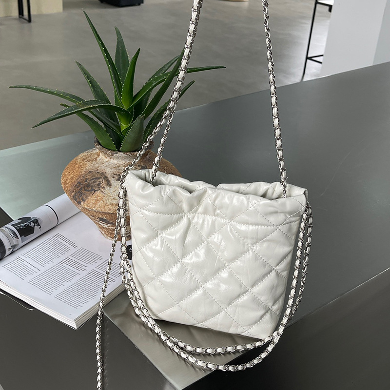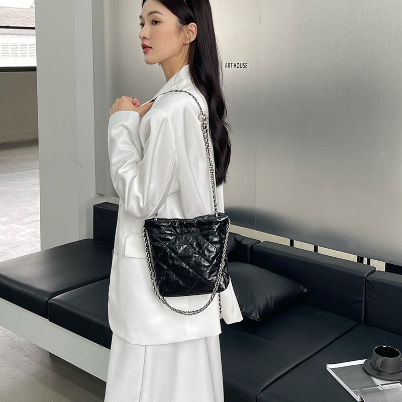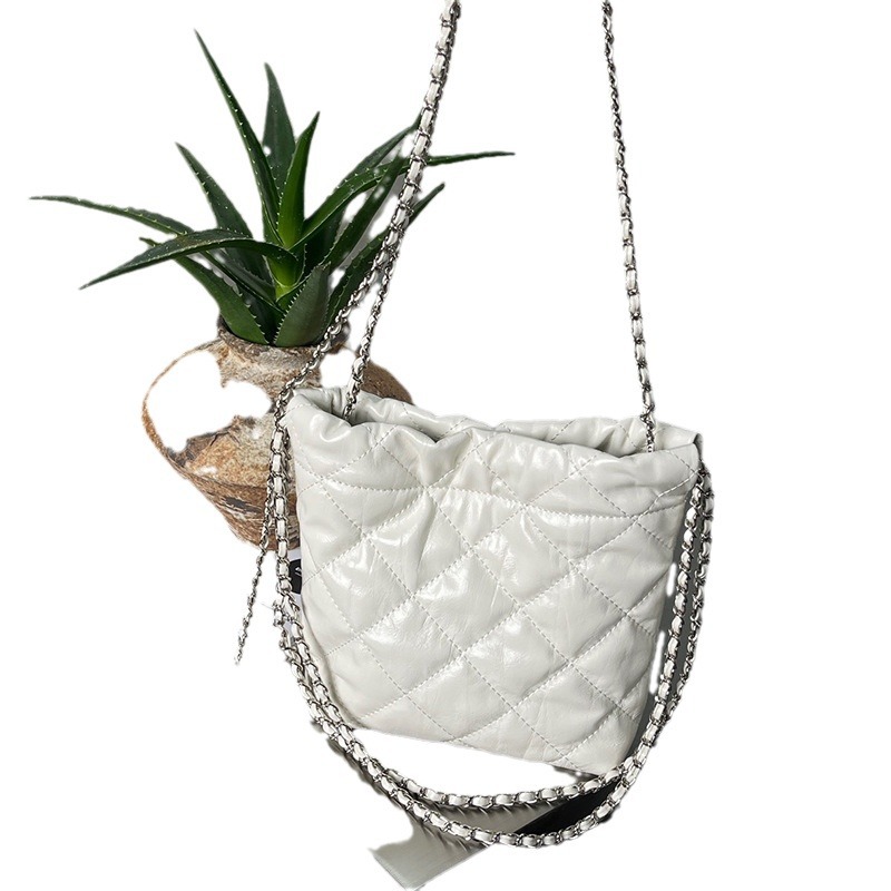 牛皮包包链条小香风时尚菱格包单肩斜挎女包真皮高级感通勤水桶包