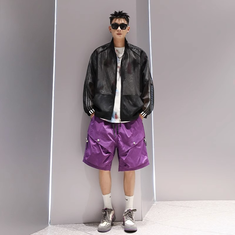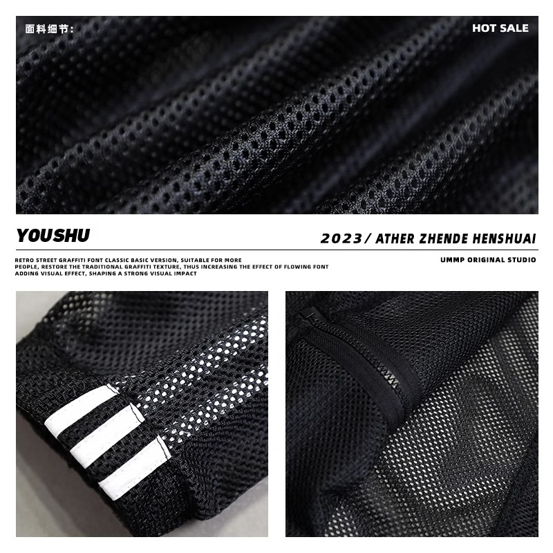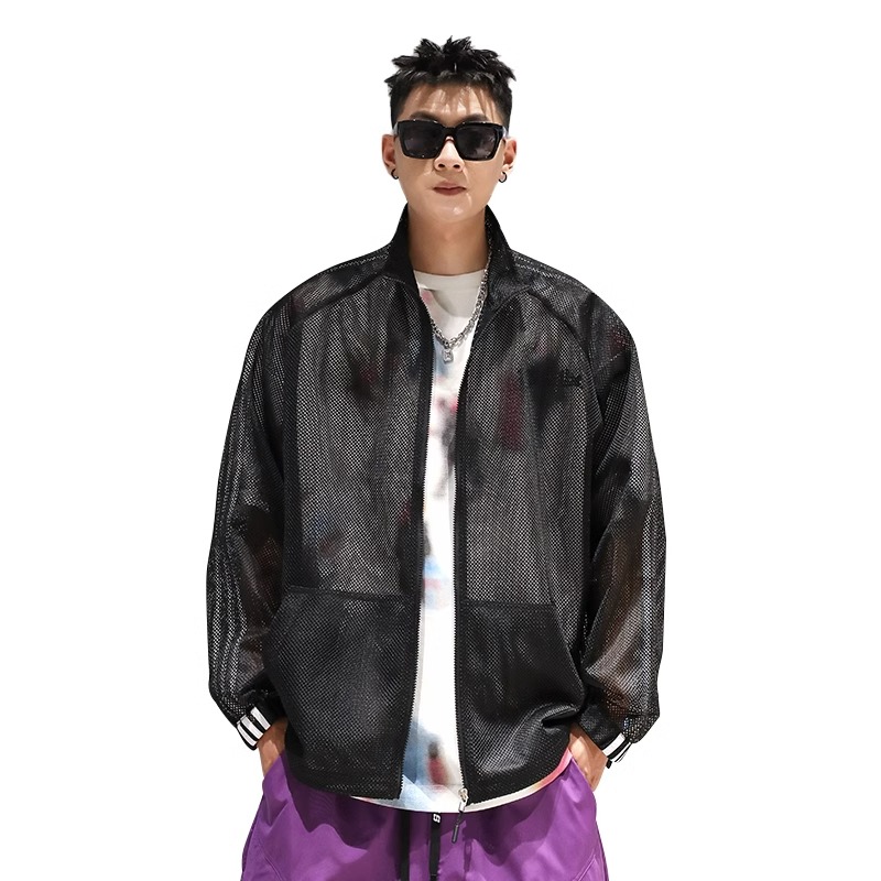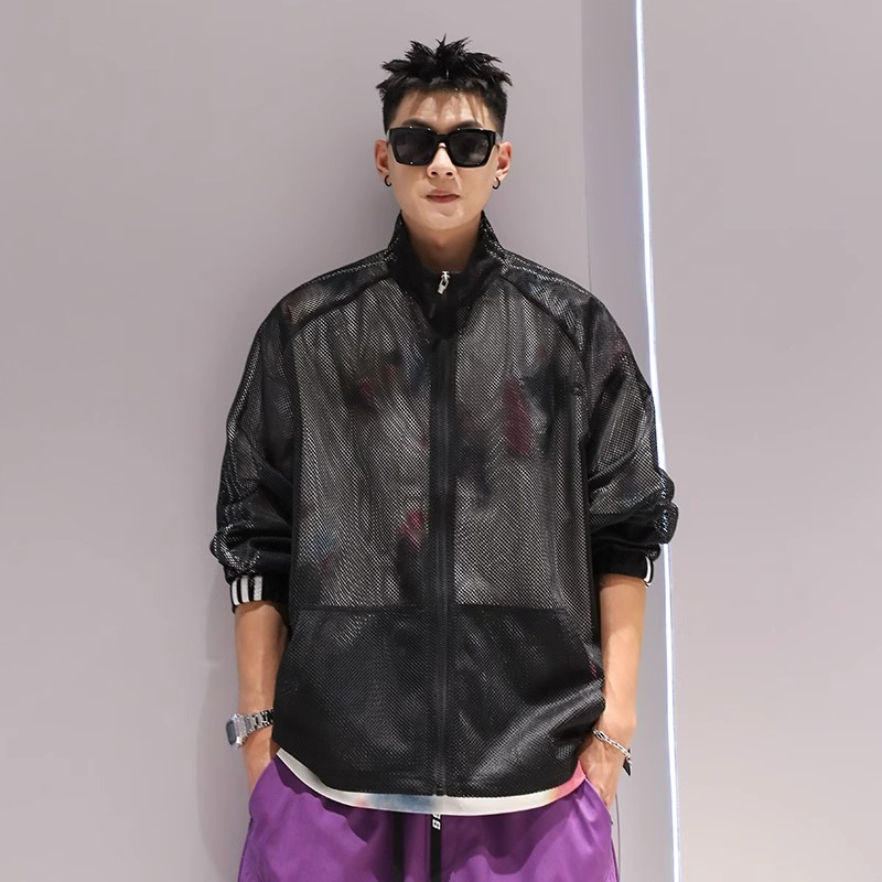 美式高街休閒長袖網格鏤空設計感防曬服拉鍊透氣上衣男大尺碼300斤2