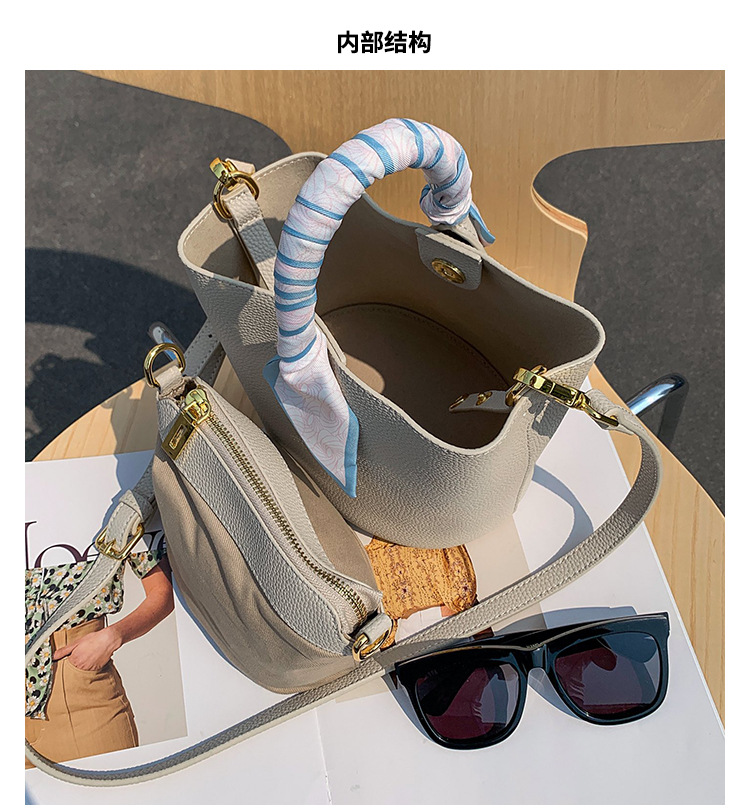 真皮高级质感水桶包包女2022新款百搭时尚大容量斜挎菜篮子手提包