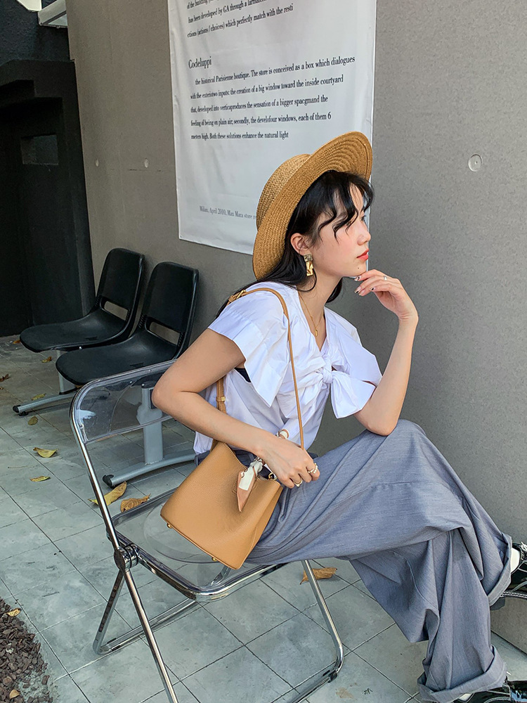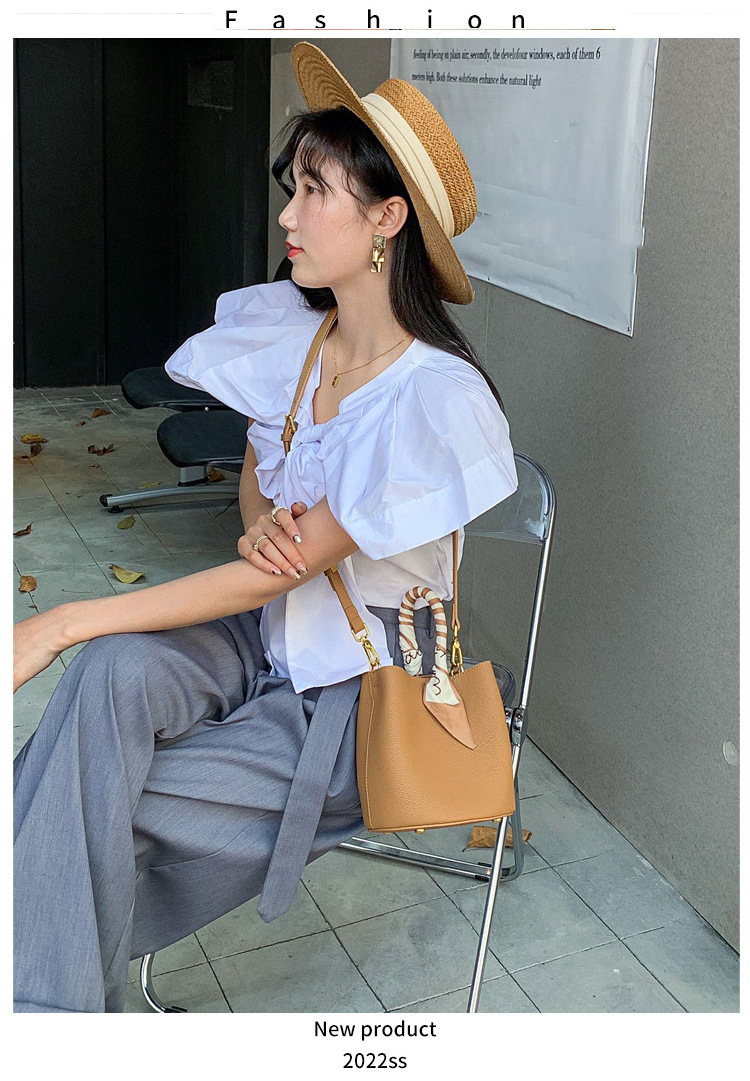 2022新款真皮女包水桶包通勤手提包小众设计感托特包单肩斜挎包女超值价:¥140