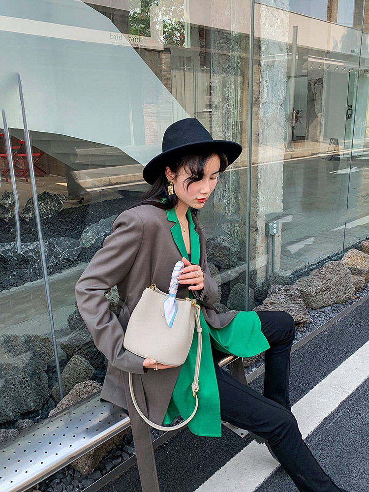 水桶包女2022新款单肩斜挎大容量高级感小众软牛皮秋冬通勤托特包超值价:¥135