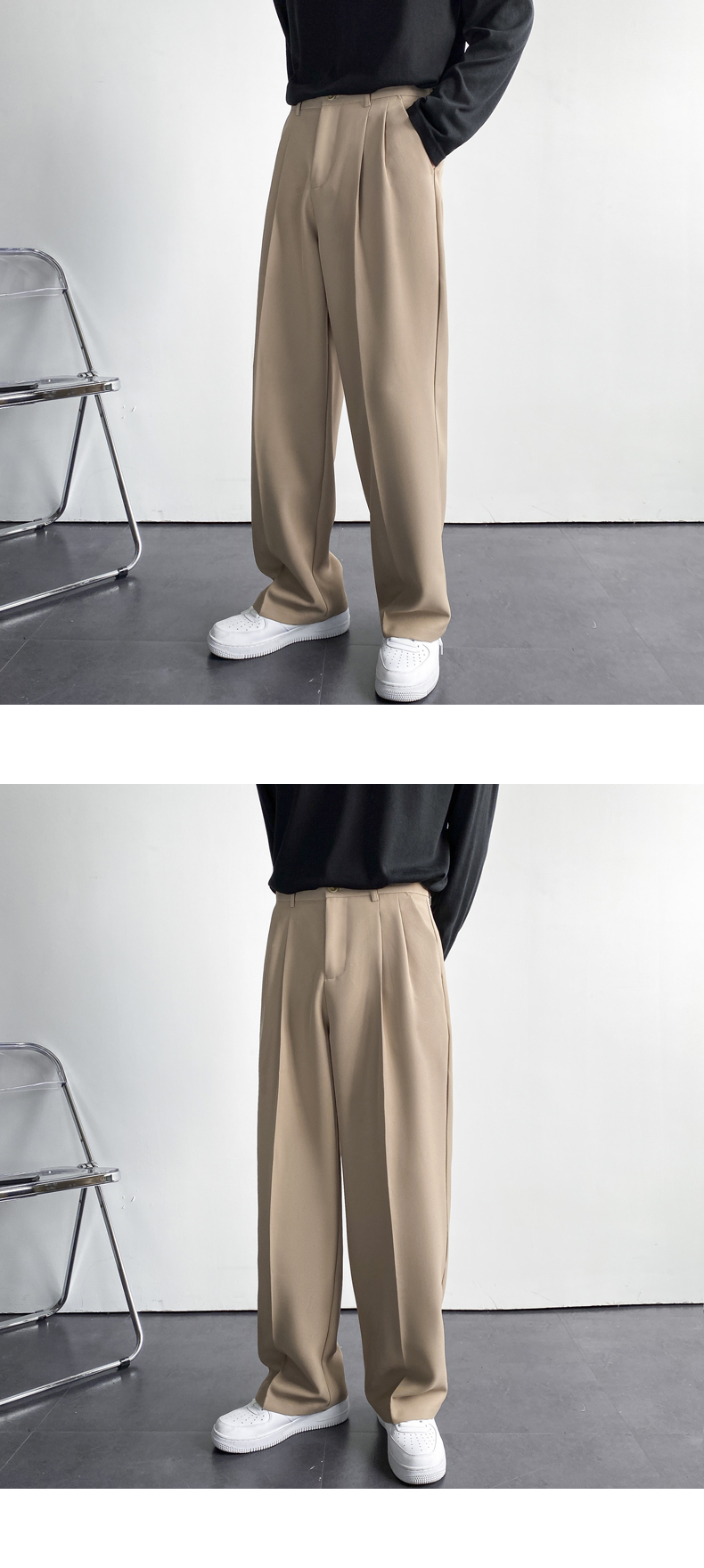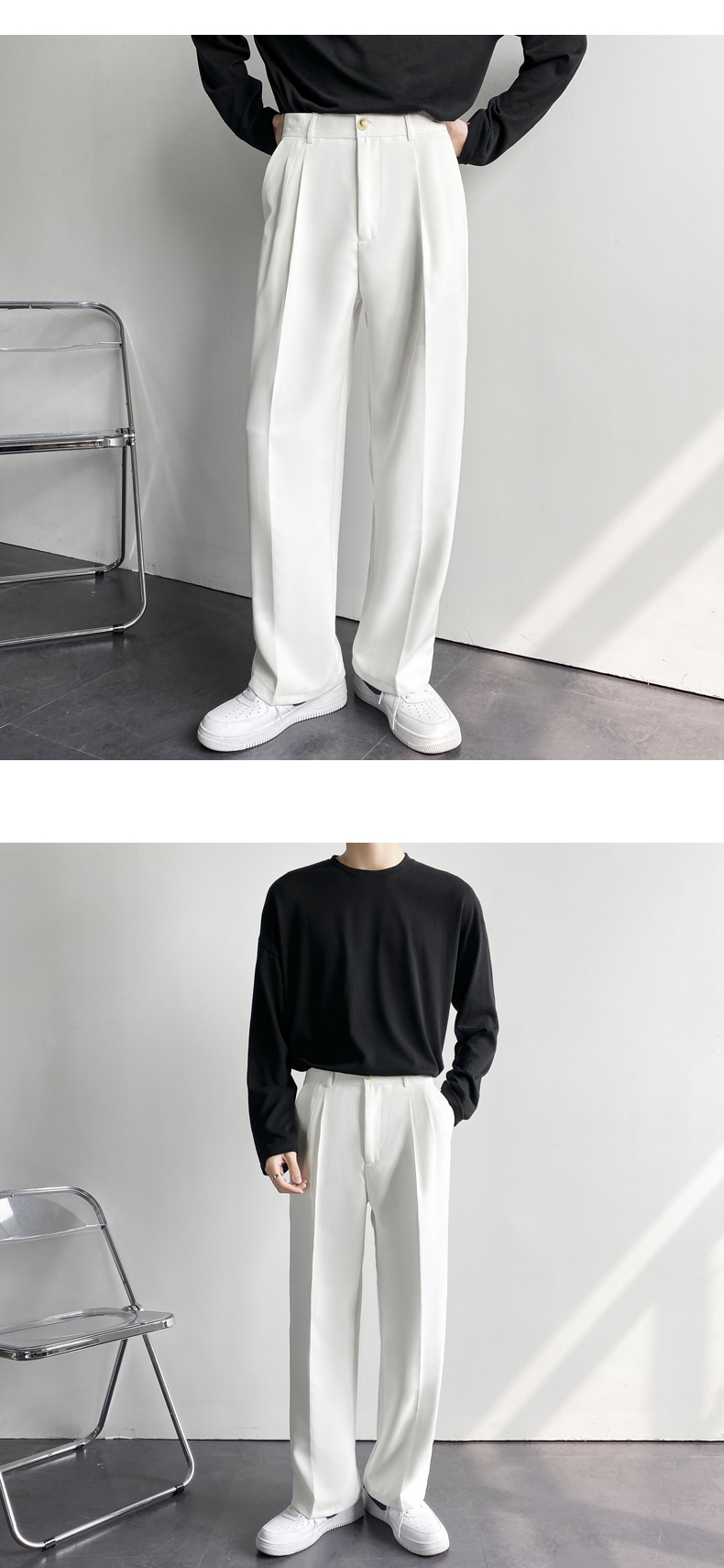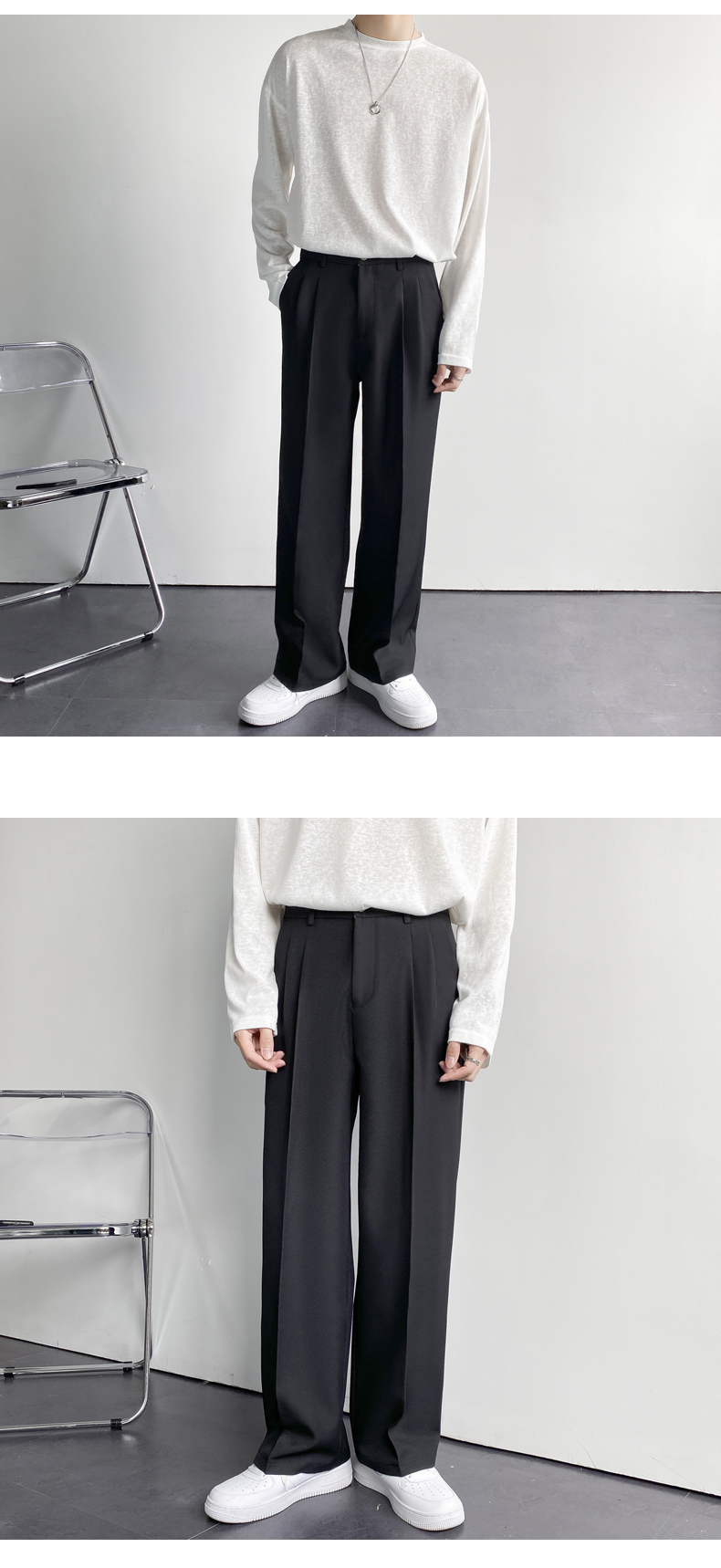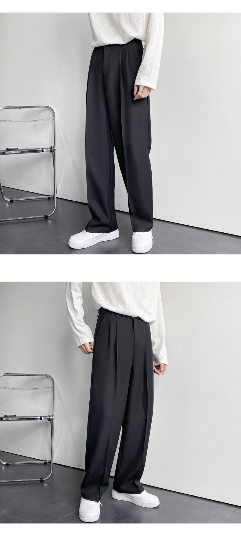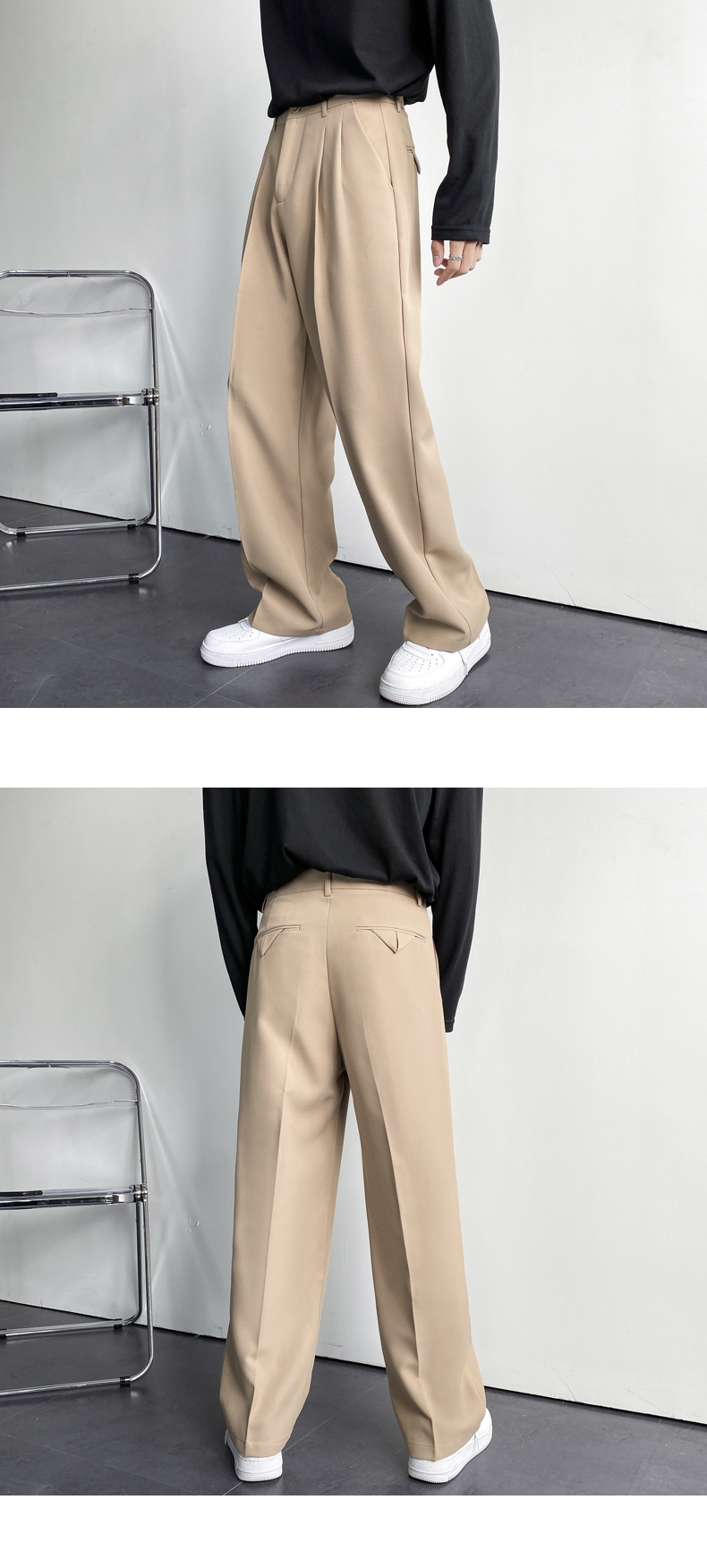 男西褲雙褶寬鬆垂直感冰絲休閒西裝褲加肥加大碼高腰直筒褲夏薄款