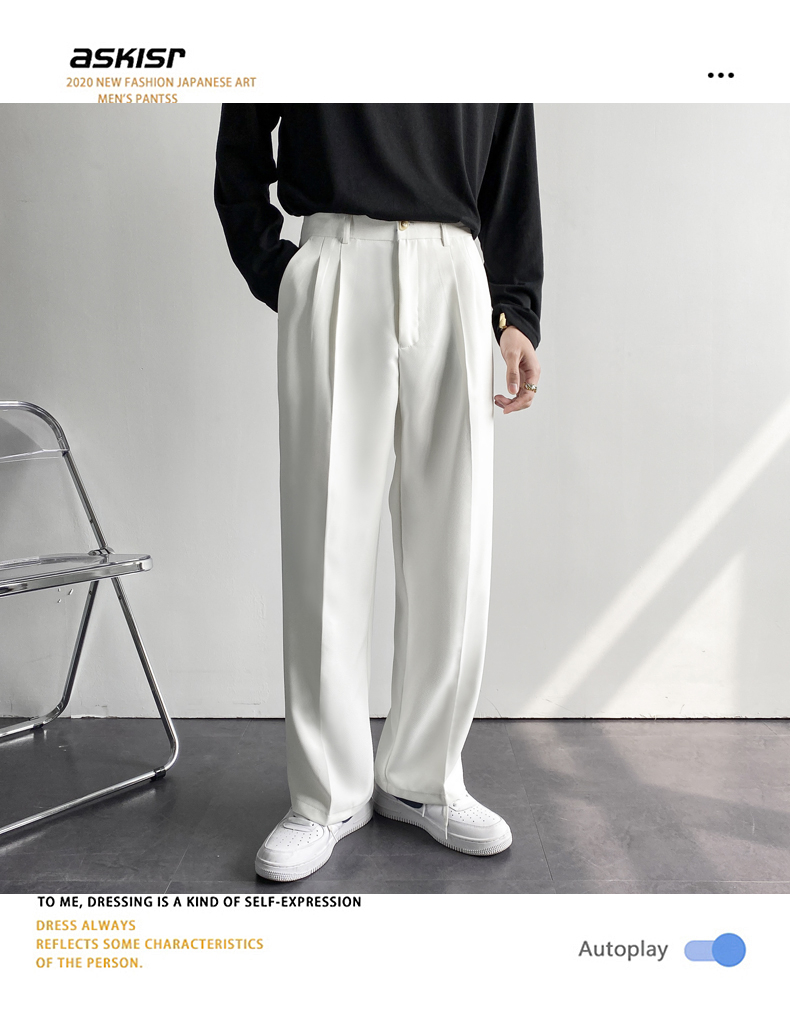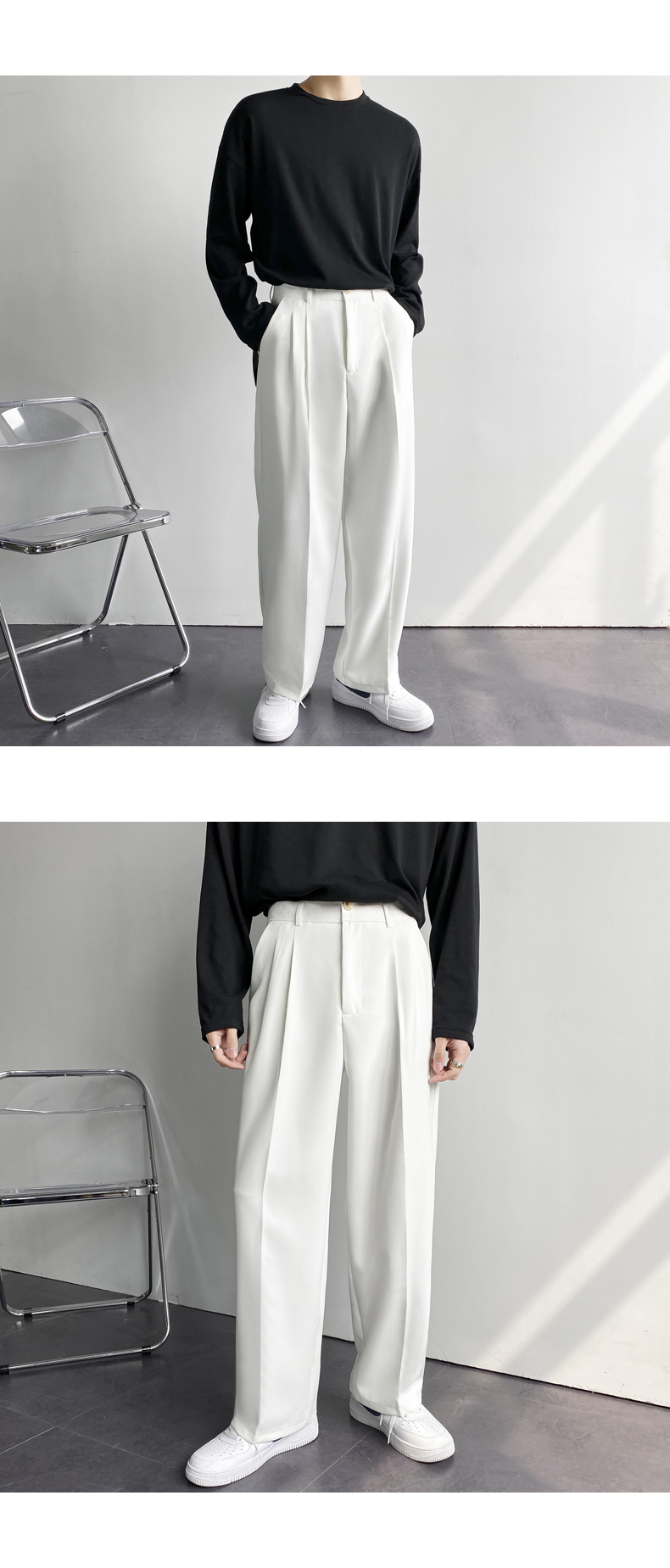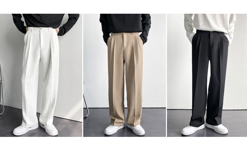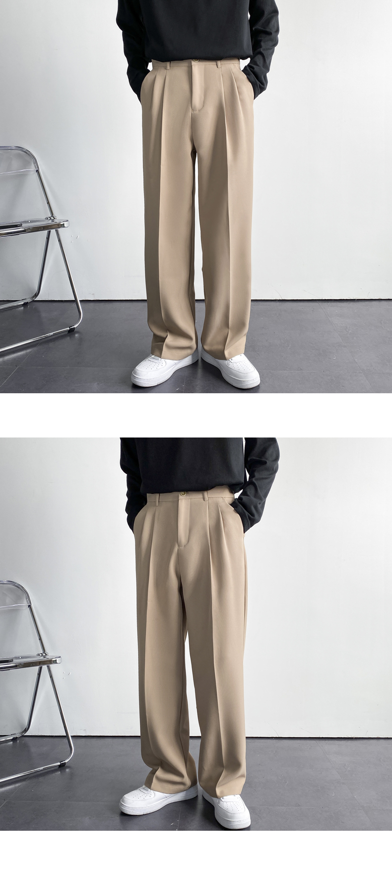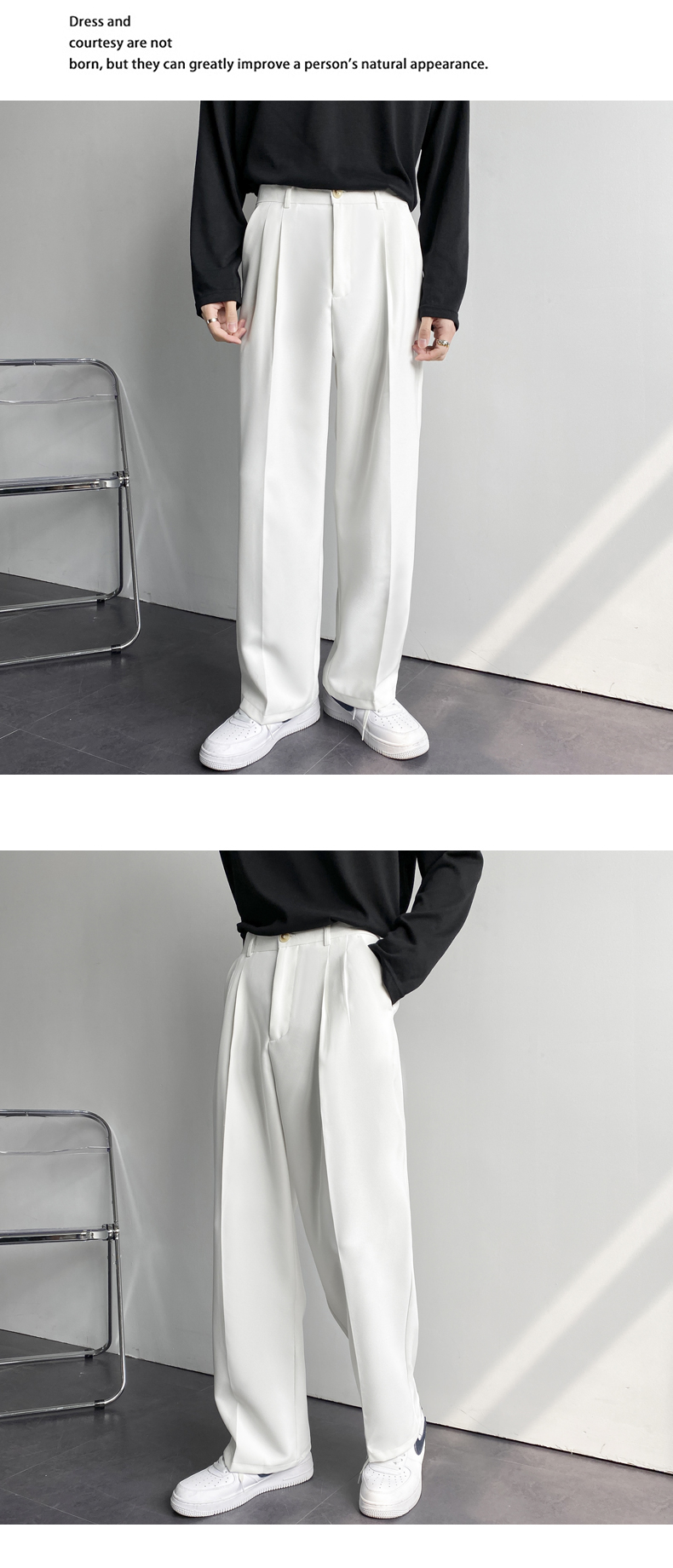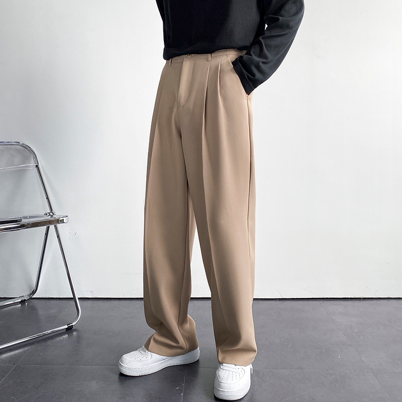 男西褲雙褶寬鬆垂直感冰絲休閒西裝褲加肥加大碼高腰直筒褲夏薄款