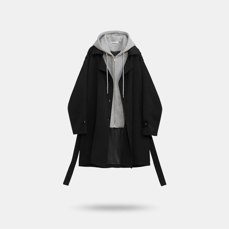 HITZE 2022中性款英倫風寬鬆韓版高級垂墜感風衣假二件中長版風衣