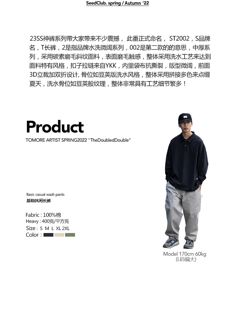 SeedClub 22AW ST2002日系基礎純色休閒長褲復古寬鬆直筒廓形褲潮