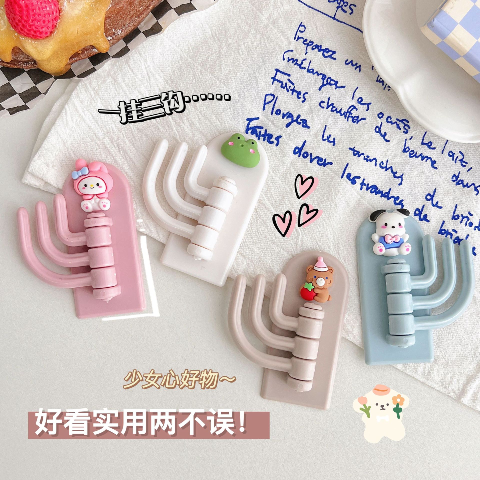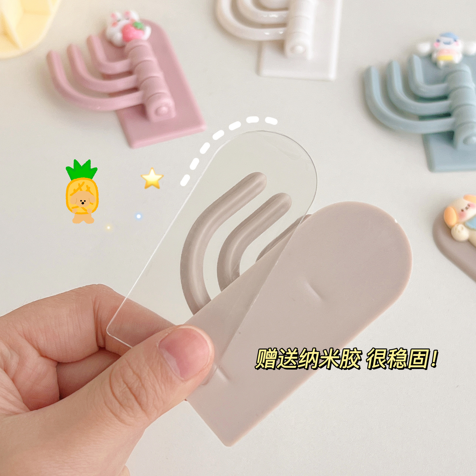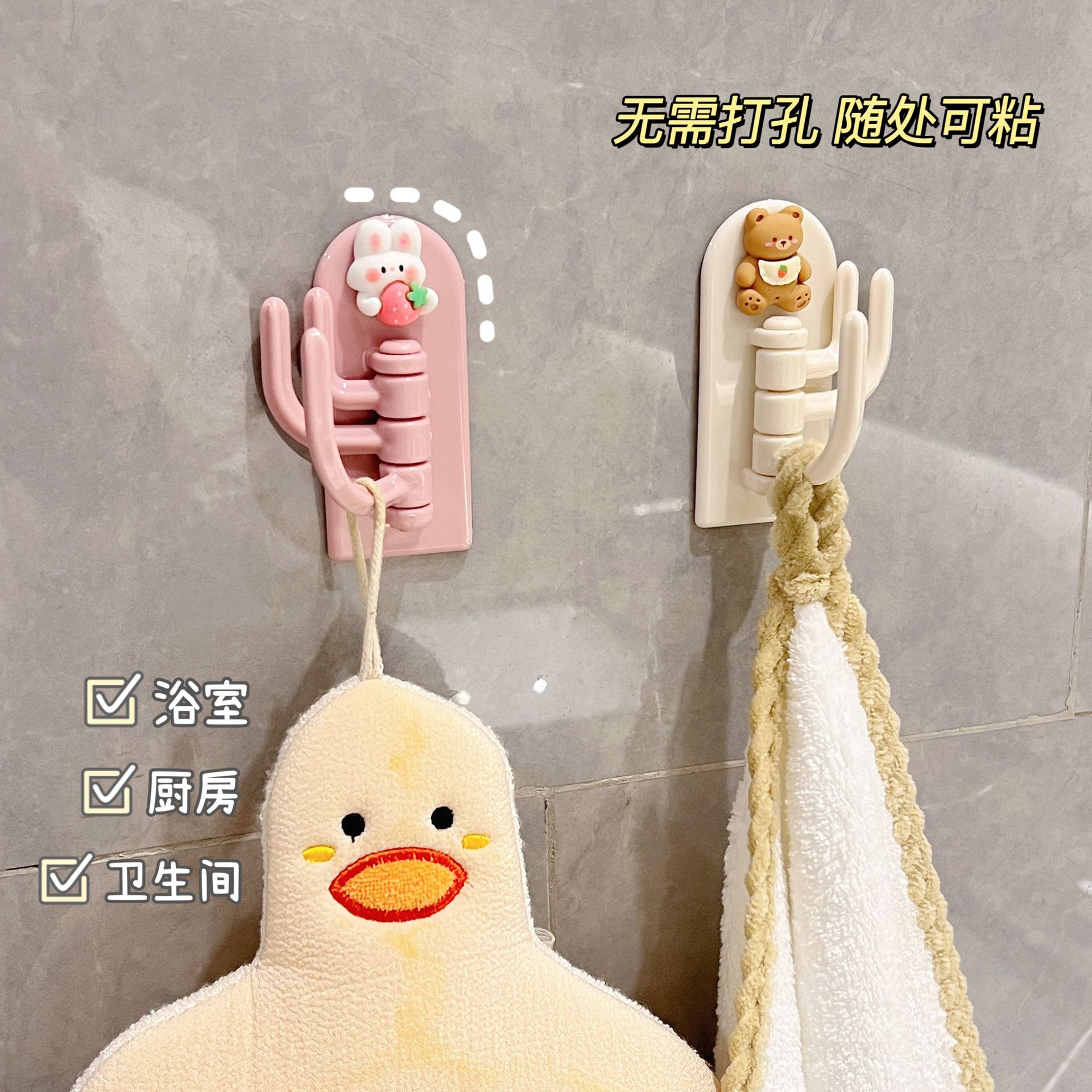 创意卡通三钩挂钩可爱学生宿舍免打孔无痕粘钩墙壁门口挂钥匙钩子