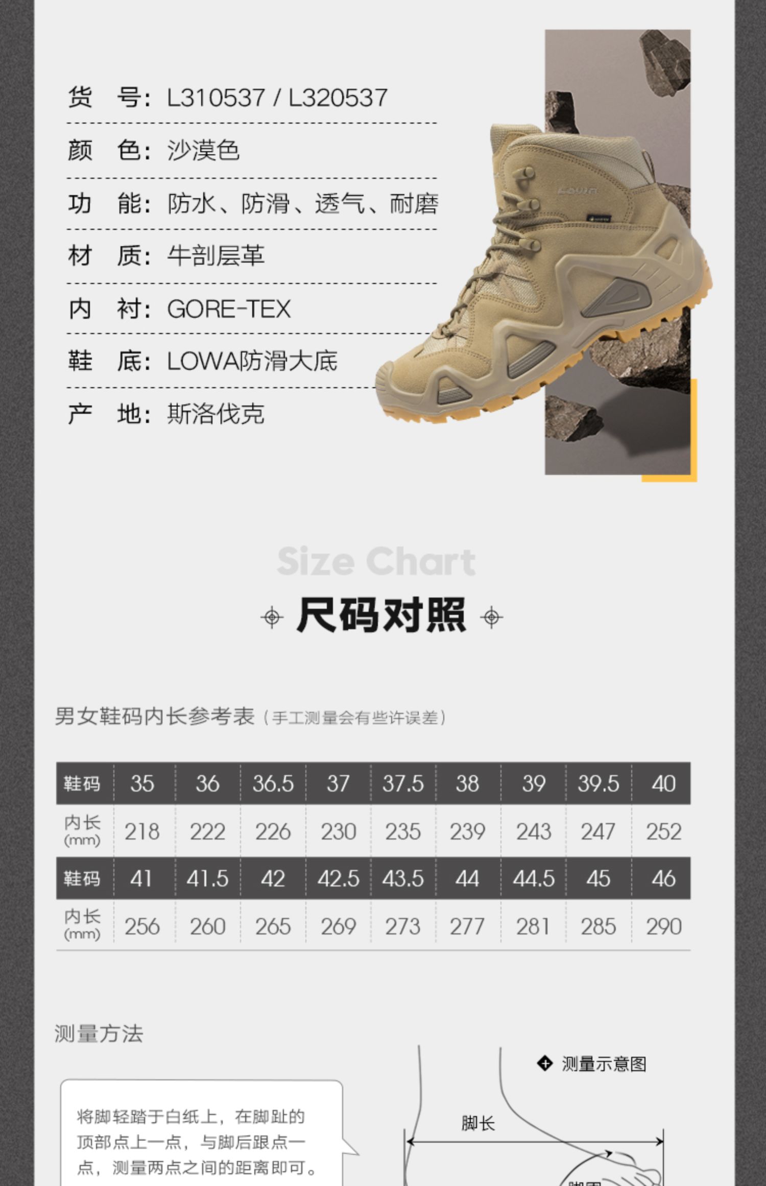 德國LOWA ZEPHYR GTX TF戶外男女款式中筒防水登山徒步鞋沙漠鞋靴