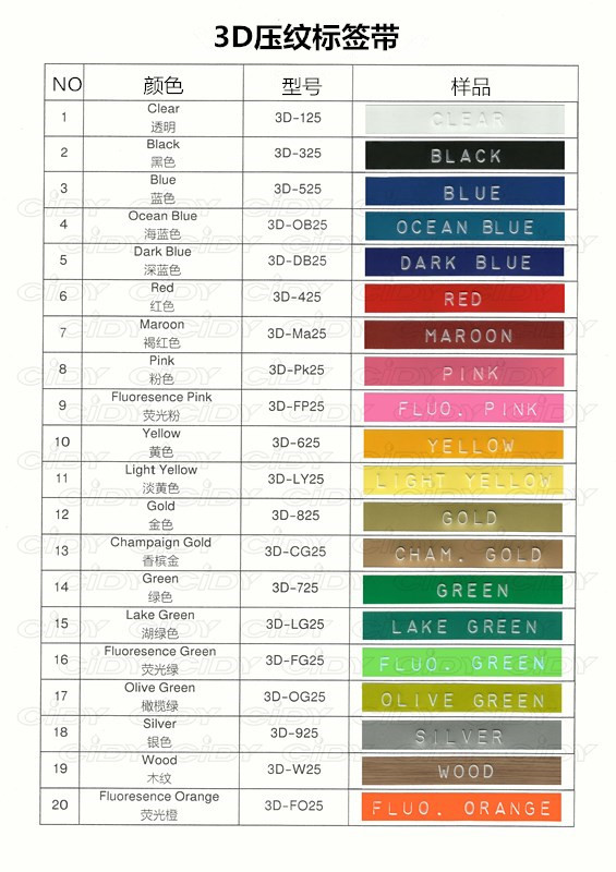Cidy希迪标签带供应商产品种类齐全颜色花样繁多。规格有6/9/12mm三种,