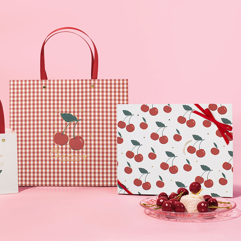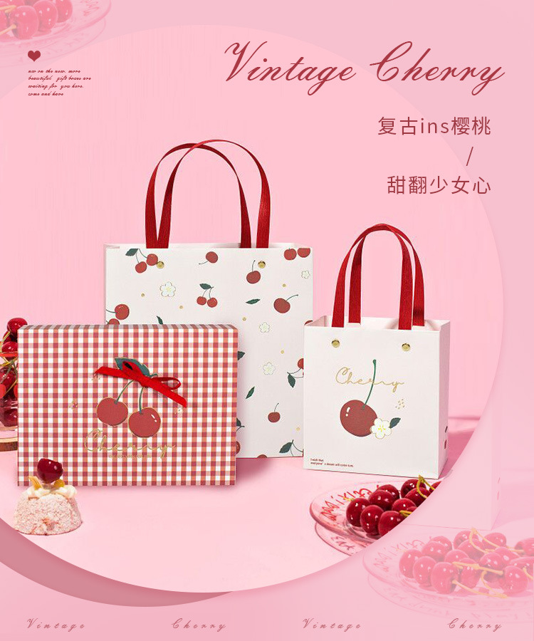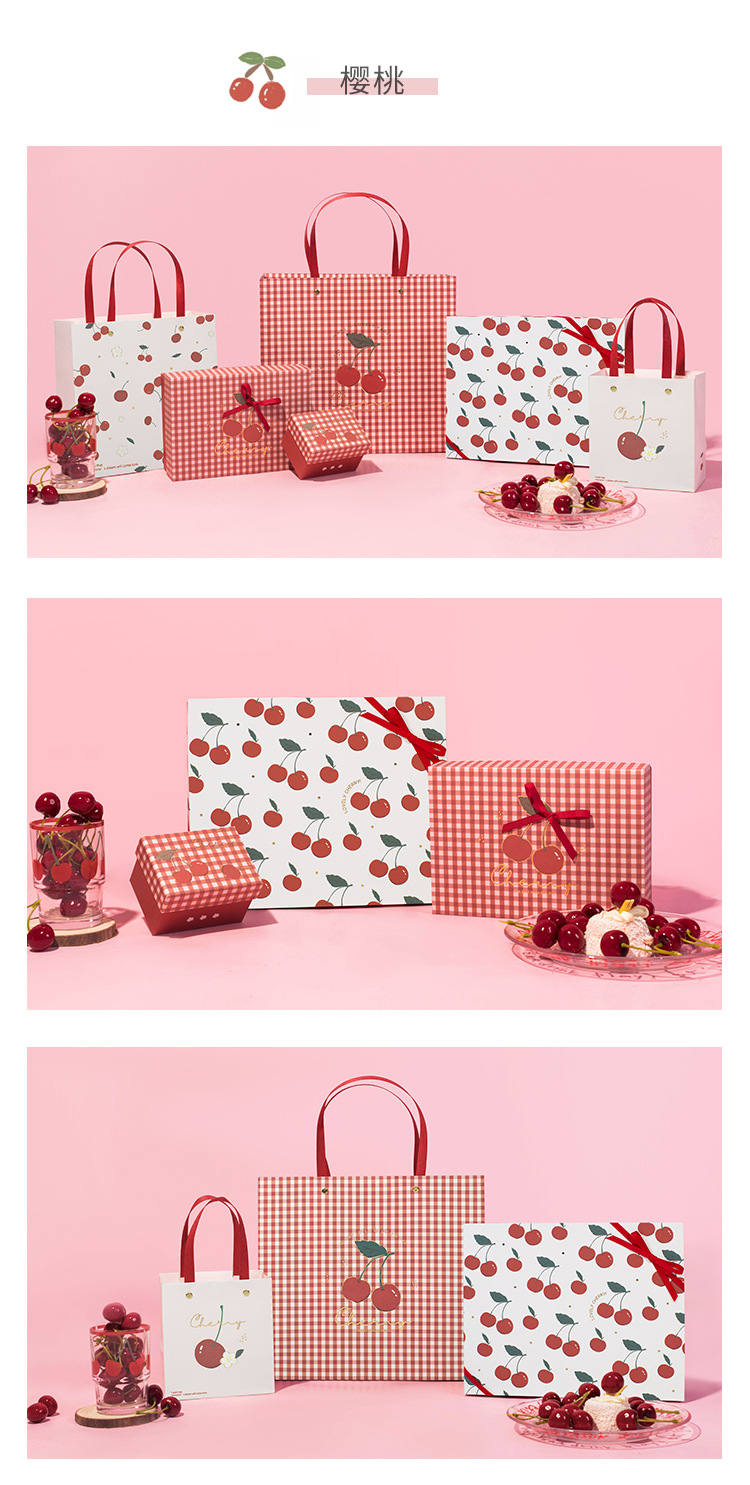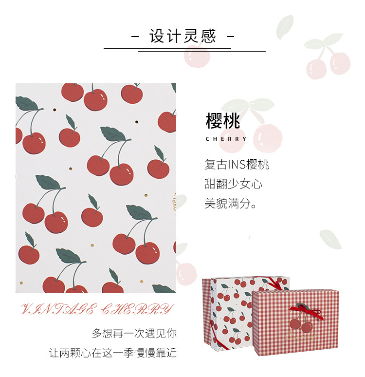 方森园新款礼品盒复古卡通精美可爱文艺条纹少女心樱桃礼物包装盒