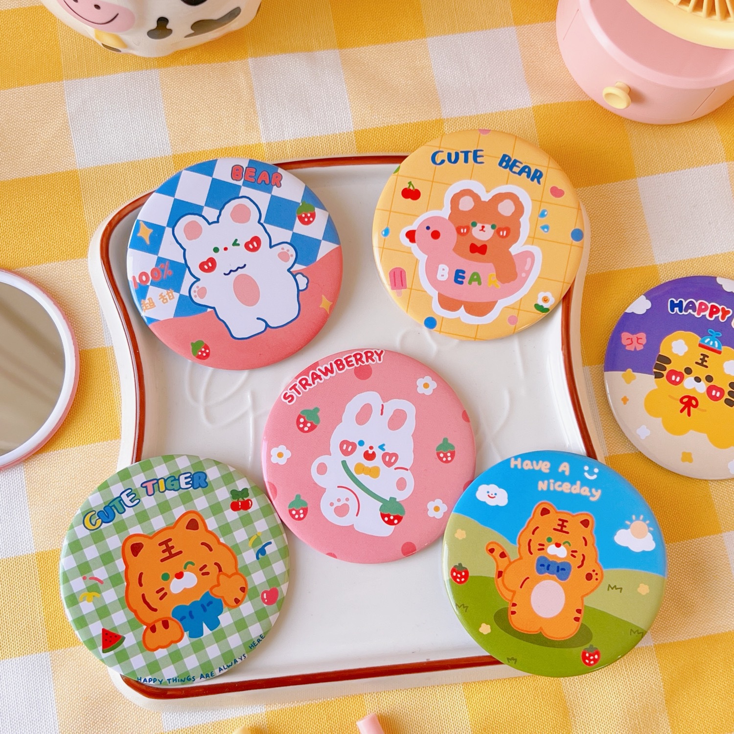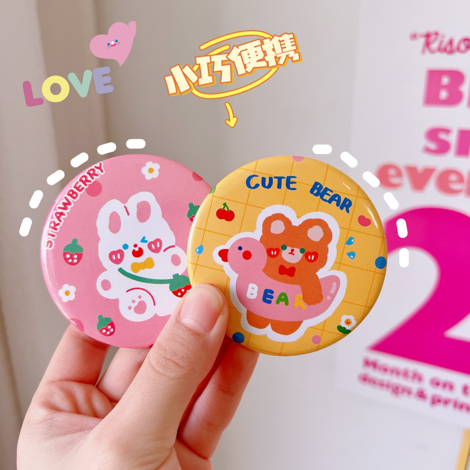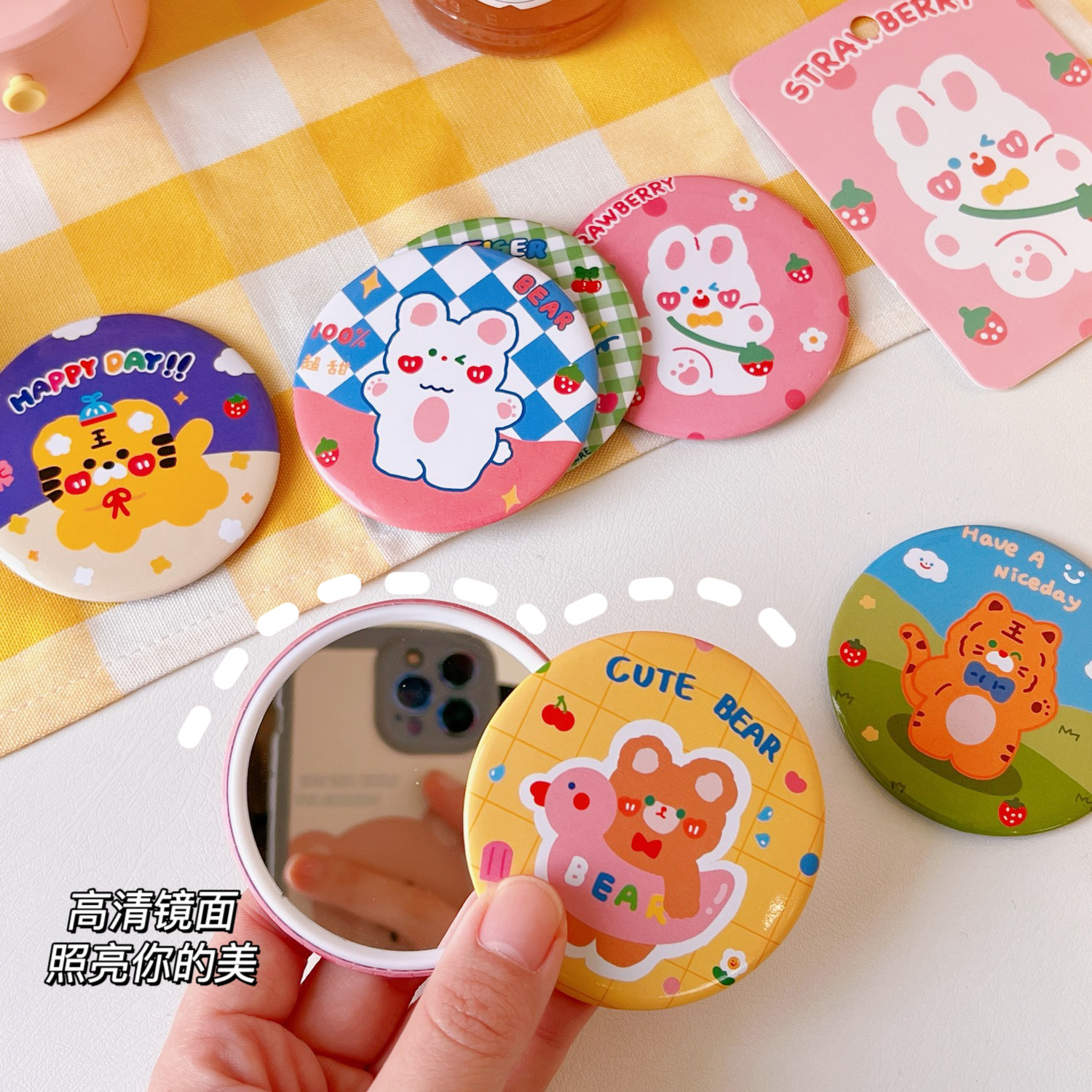简约可爱卡通小镜子学生随手化妆镜子便携小巧小圆镜迷你化妆镜子