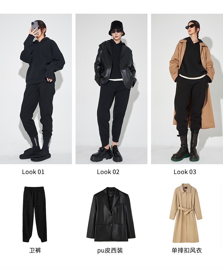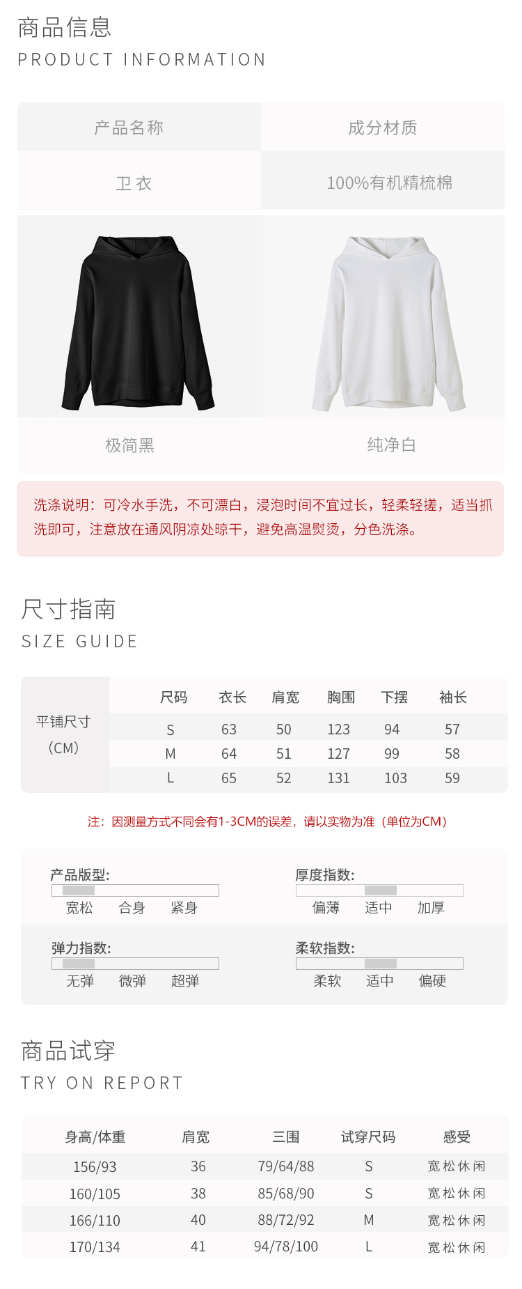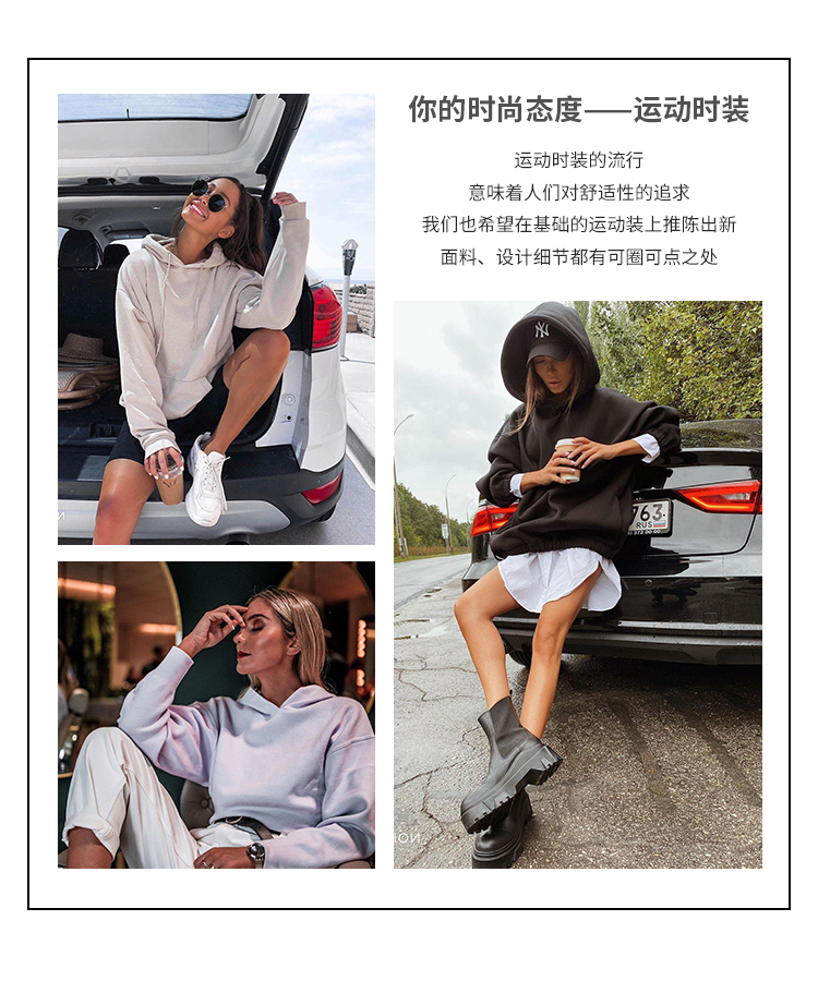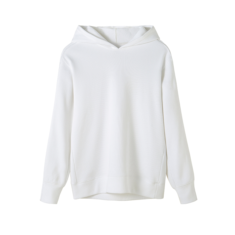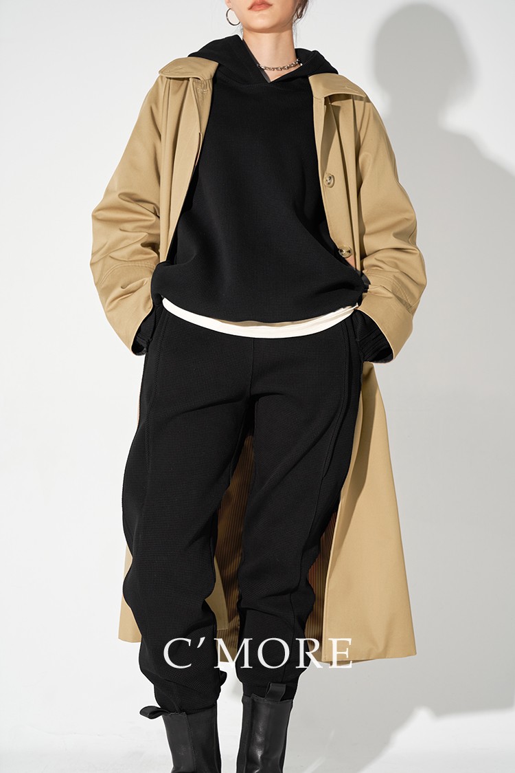 CMORE春秋款 黑/白華夫格 小眾設計感休閒寬鬆套頭連帽運動衫女