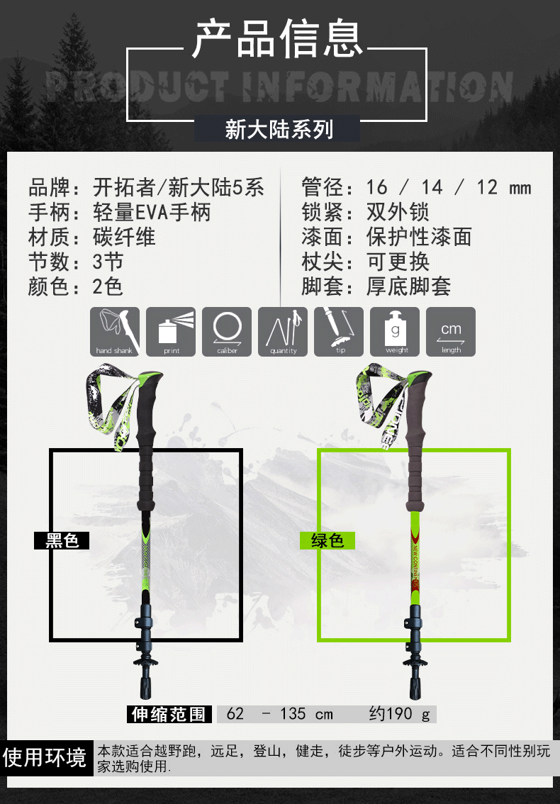 開拓者 99%碳素碳纖維登山杖 超輕外鎖徒步手杖 戶外超輕伸縮手杖