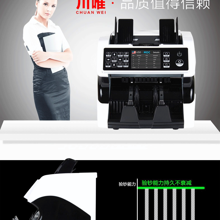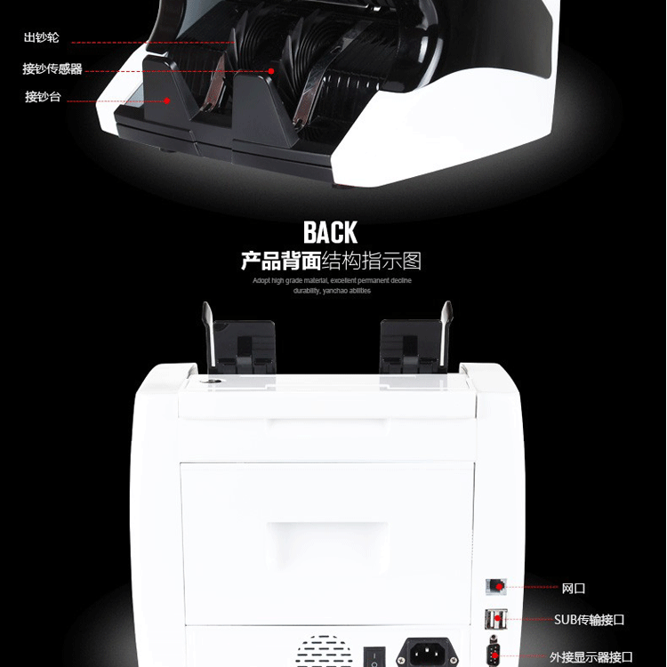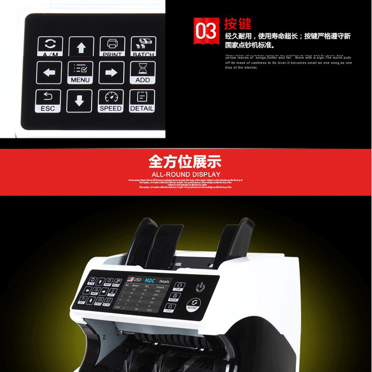 3、分版功能:可鉴别点钞过程中遇到的不同币种、不同面额或同面额不同版本的钞票。