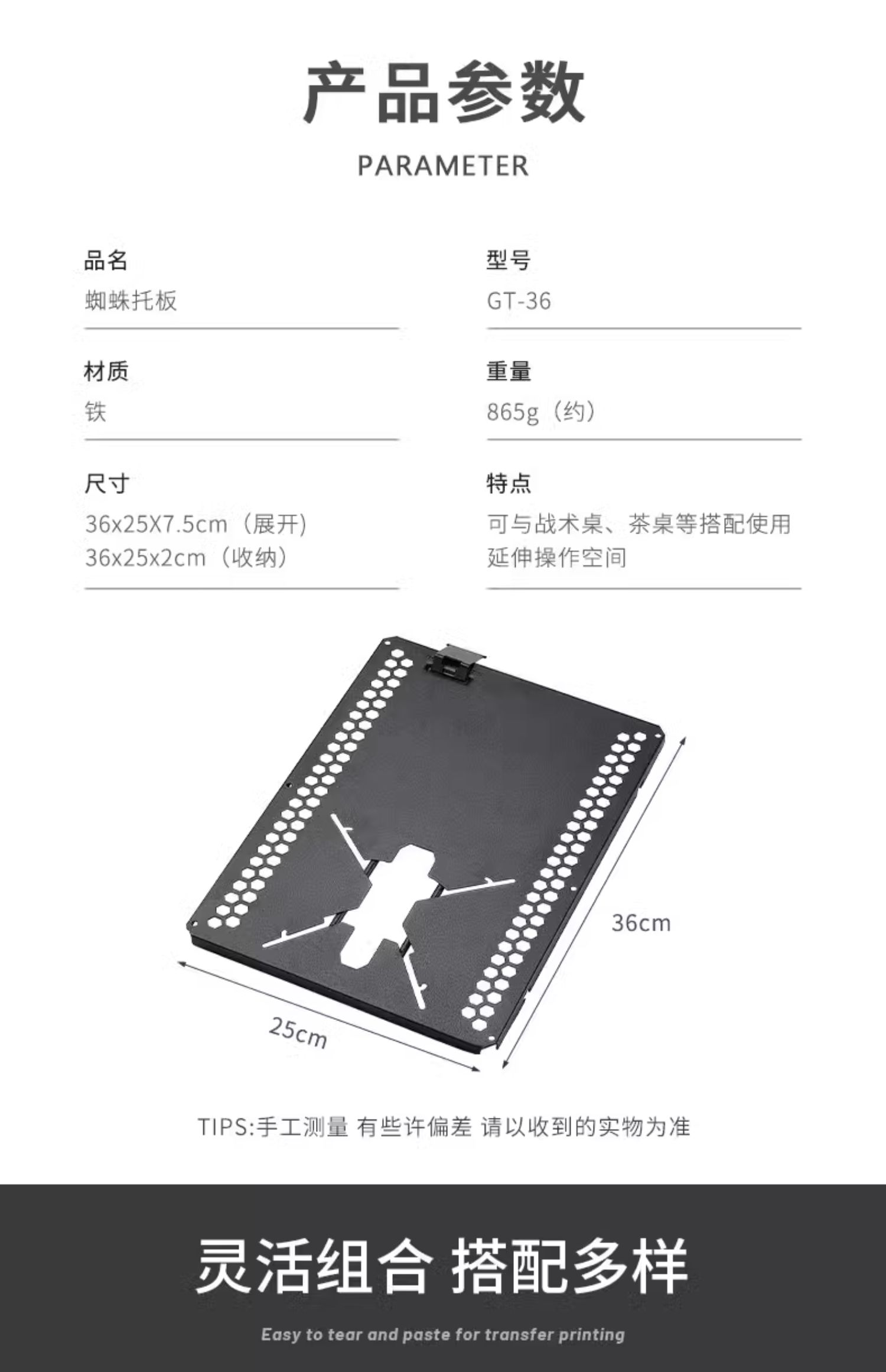 柯曼蜘蛛爐單元託板GT-36爐頭茶幾可懸掛氣罐黑色多用IGT爐具桌板